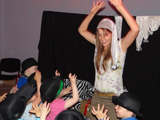 W gryfińskim Centrum Aktywności Lokalnej dzieci spotykają się z pedagożką Violiną Janiszewską, która prowadzi warsztaty teatralne. W czasie zajęć dzieci same zostały aktorami i aktorkami. Po krótkim treningu, rozgrzewce ciała i buzi oraz ćwiczeniach z emisji głosu, przedszkolaki wkroczyły na scenę.