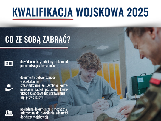 3 lutego 2025 r. w województwie zachodniopomorskim rusza kwalifikacja wojskowa. Komisje sprawdzą zdolność służby wojskowej ponad 10,5 tys. osób, którym nadadzą odpowiednią kategorię. Kwalifikacja dotyczy kobiet i mężczyzn.