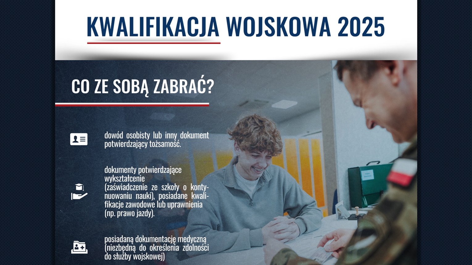 - Pamiętajmy o zabraniu ze sobą dowodu osobistego lub innego dokumentu potwierdzającego tożsamość, np. paszportu. Do kwalifikacji wojskowej możemy zgłaszać się także na ochotnika, niezależnie od płci oraz kwalifikacji i wykształcenia. Warunkiem jest ukończenie 18 lat – dodaje ppłk Czaczkowski.