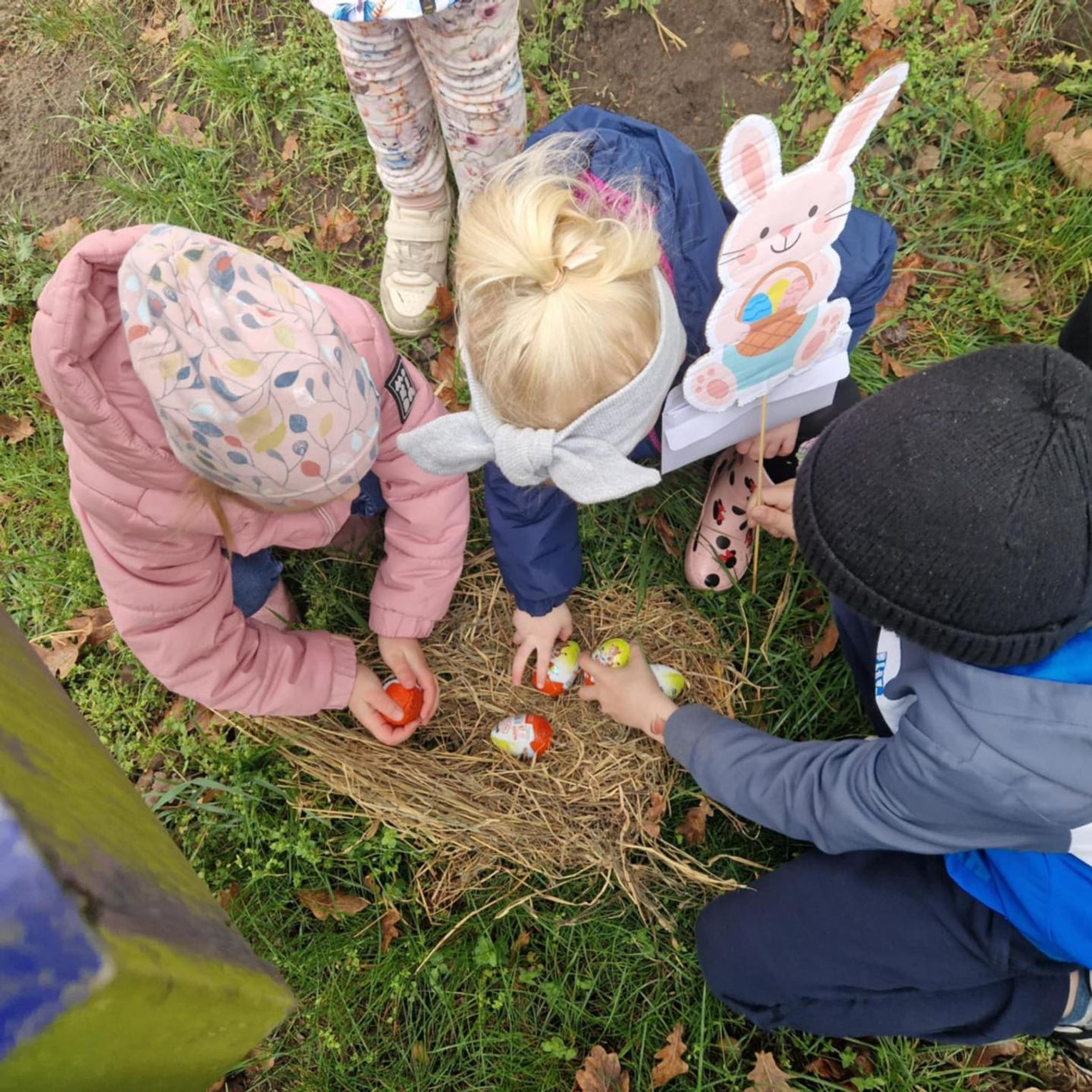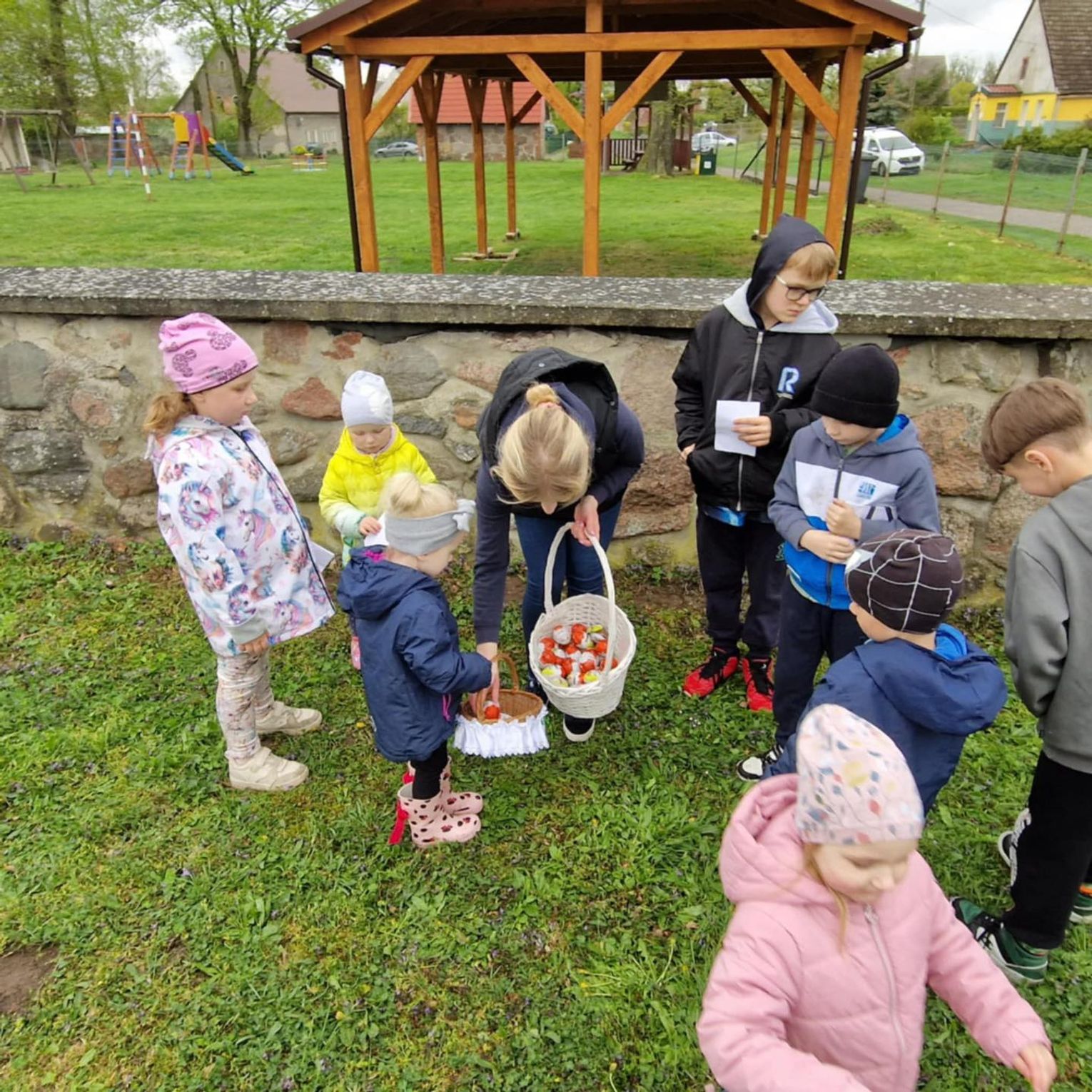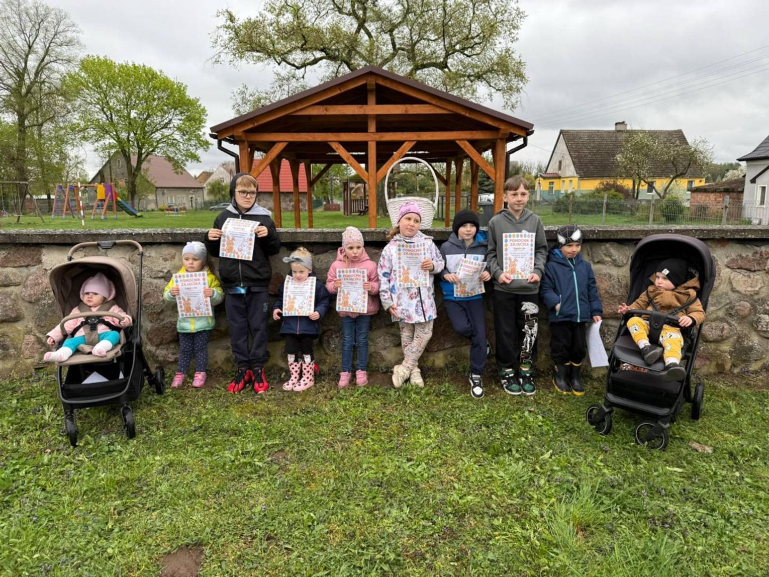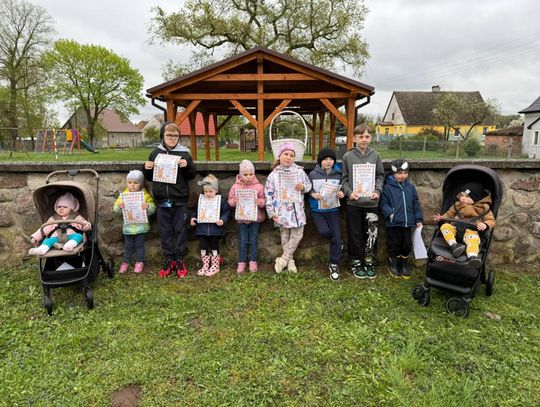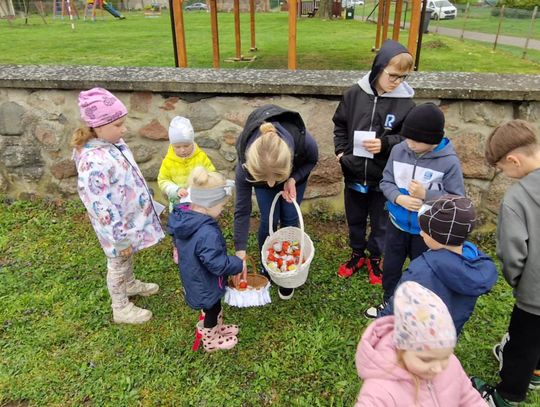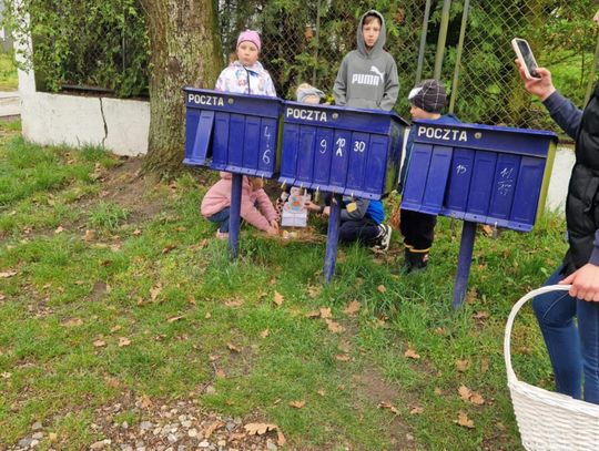 Wielkanocny zajączek odwiedził dzieci w Pacholętach w gm. Widuchowa. Poprosił o pomoc w rozwiązaniu zagadek i znalezieniu jajek.