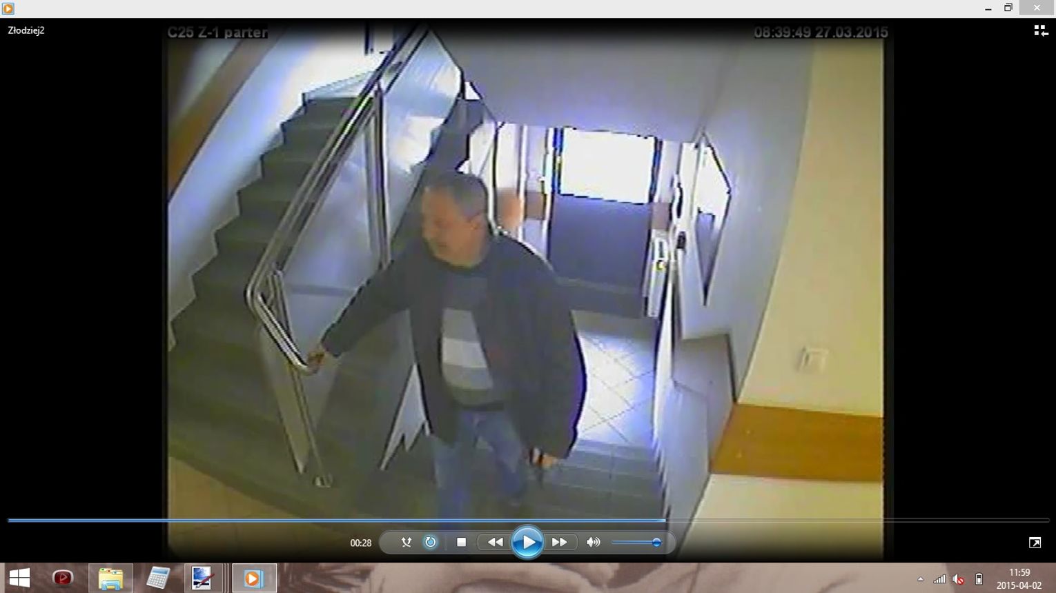 Sprawca to mężczyzna w wieku ok. 50 lat, wzrostu 170 cm, wagi 90 kg, włosy szpakowate czesane do tyłu z widoczną łysiną obustronną przednią i tylną, nos duży, szeroki, oczy bardzo mocno podkrążone, bez zarostu, ubrany w kurtkę koloru czarnego skóropodobną prostą za pas, pod kurtką sweter mający z przodu trzy paski: szary- biały-szary, pasek do spodni szeroki czarny, spodnie dżinsowe jasne, buty skórzane jasne, na prawej dłoni obrączka.