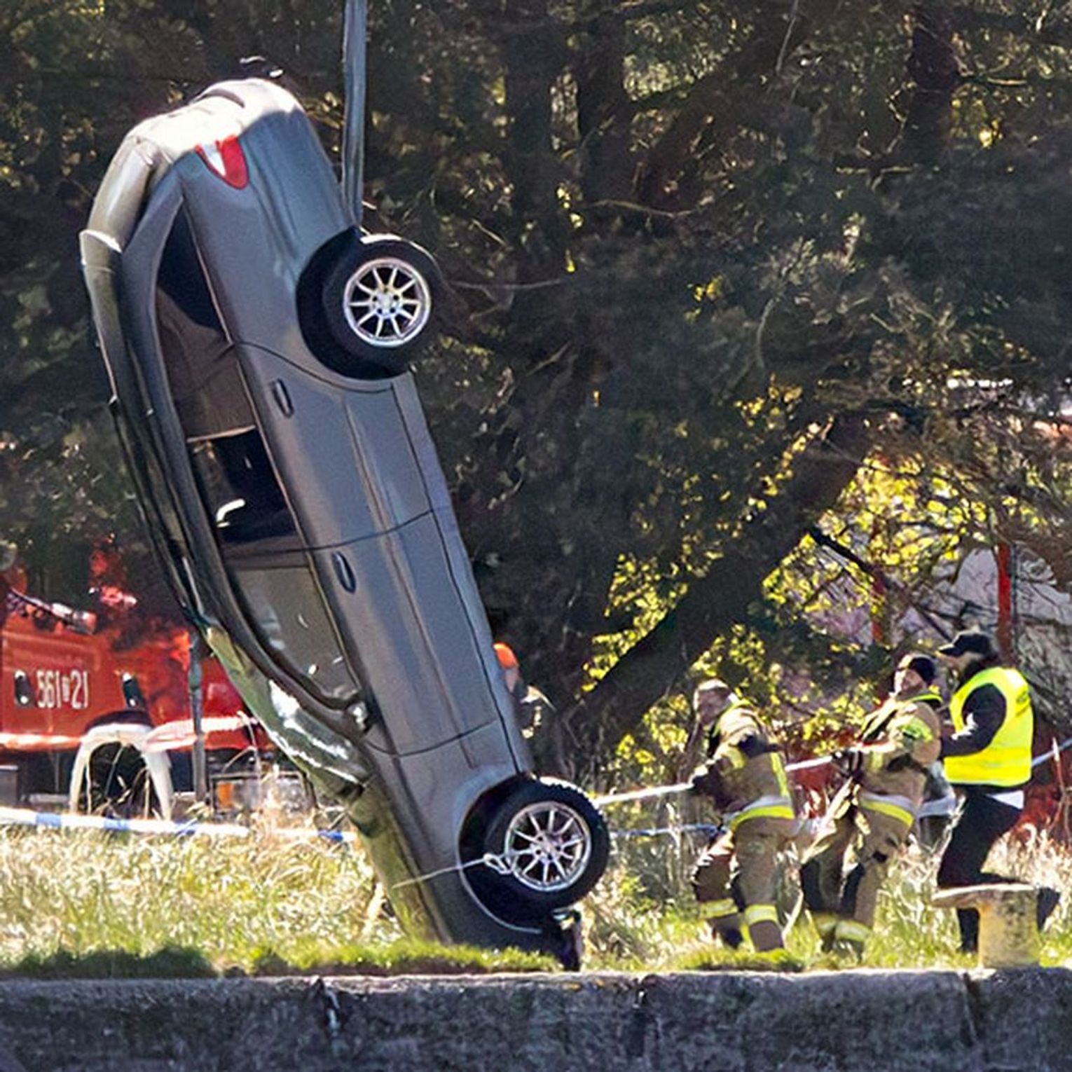Jak pisze portal iswinoujscie, pierwszym dramatycznym momentem było wydobycie ciała młodego mężczyzny z zatopionego mercedesa kombi, co nastąpiło po godzinie czternastej. Dopiero po tej czynności, z pomocą wojskowego dźwigu, wrak pojazdu został wydobyty na brzeg i ustawiony na kołach. Cała operacja zakończyła się około godziny piętnastej.