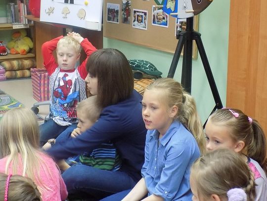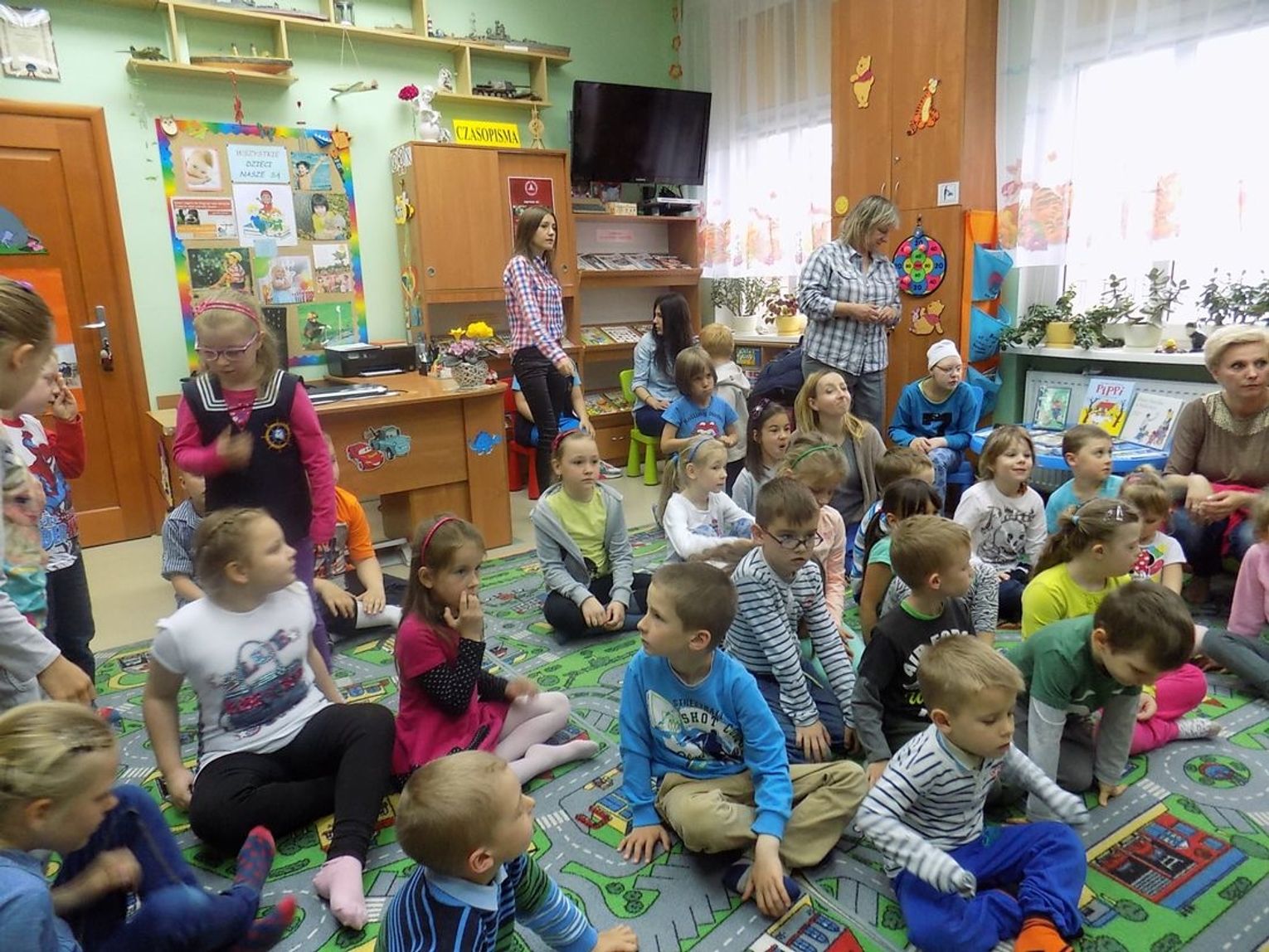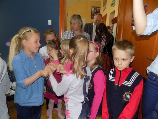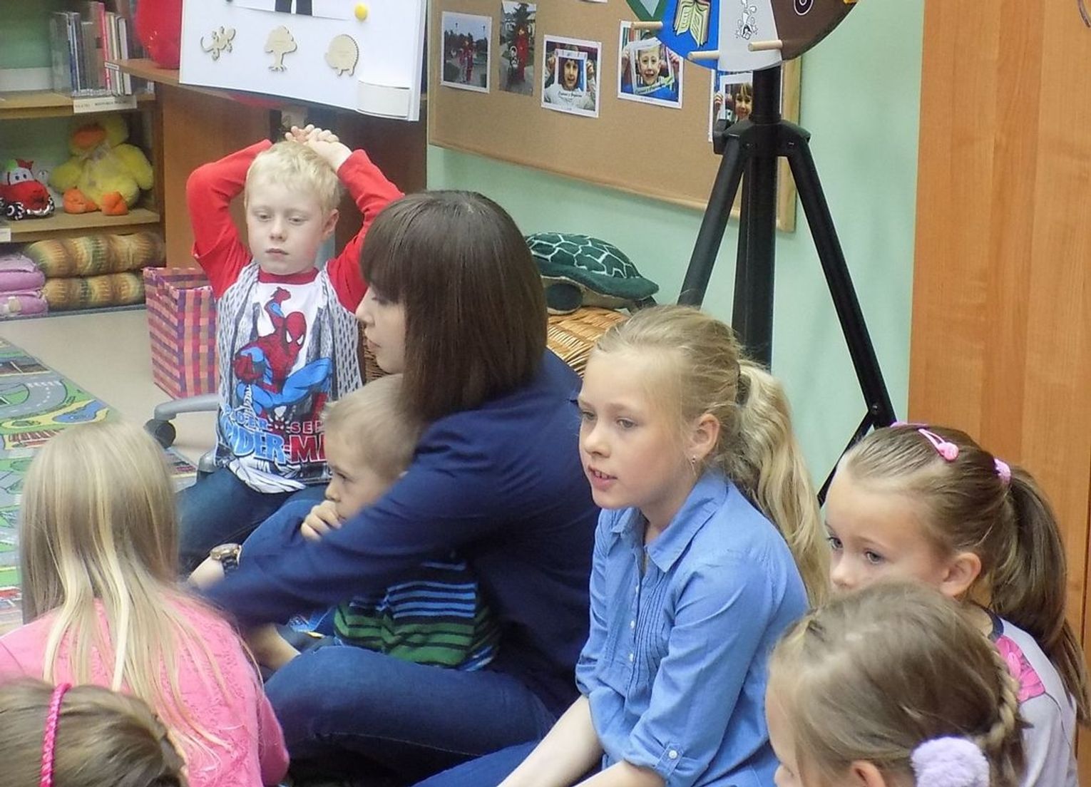 Gośćmi spotkania byli uczniowie klasy pierwszej b ze Szkoły Podstawowej nr 2 i „Zajączki” z Przedszkola nr 4 im. Pszczółki Mai w Gryfinie. Nie zabrakło również stałych bywalców ze swoimi mamami.