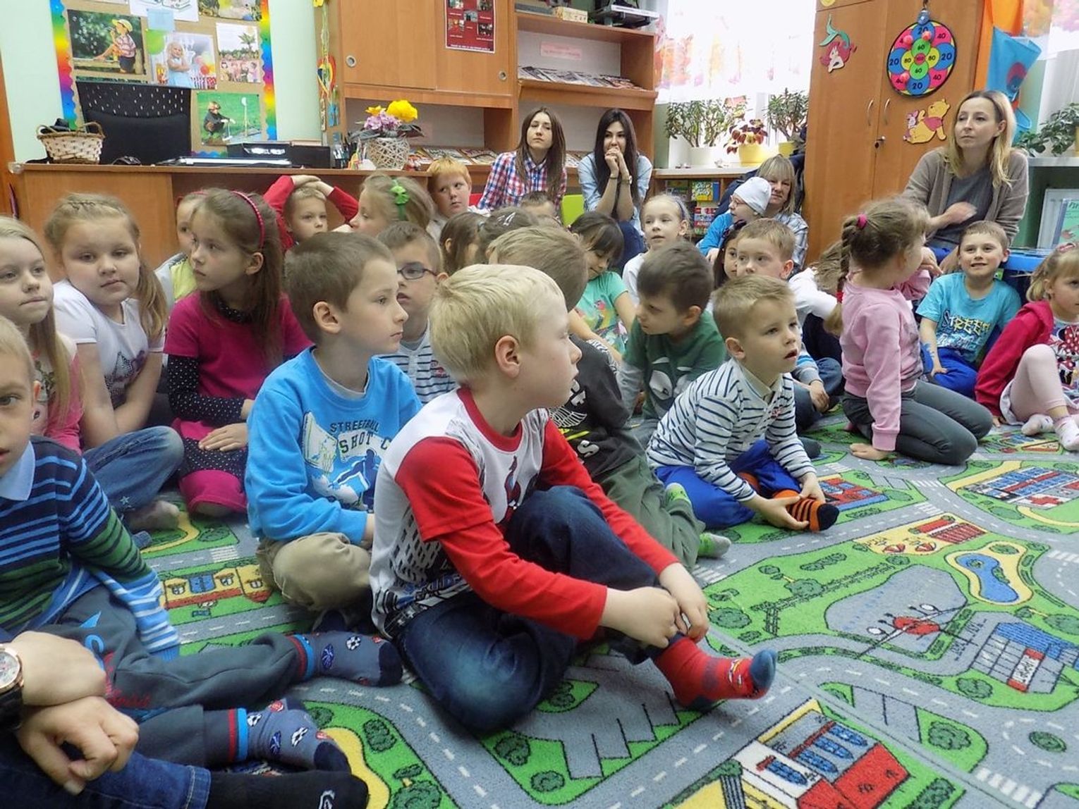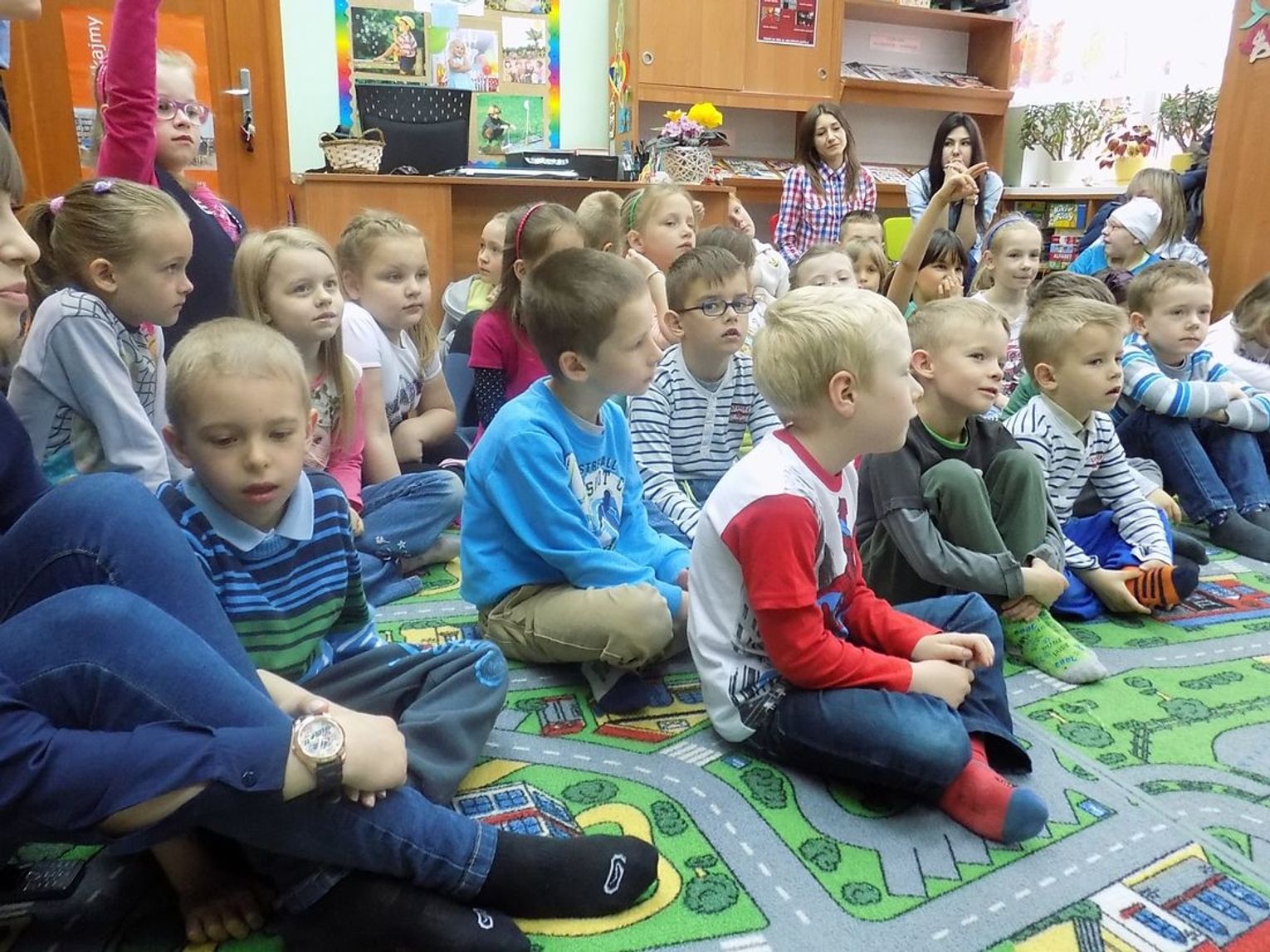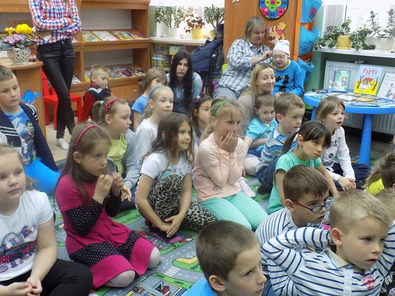 Gośćmi spotkania byli uczniowie klasy pierwszej b ze Szkoły Podstawowej nr 2 i „Zajączki” z Przedszkola nr 4 im. Pszczółki Mai w Gryfinie. Nie zabrakło również stałych bywalców ze swoimi mamami.
