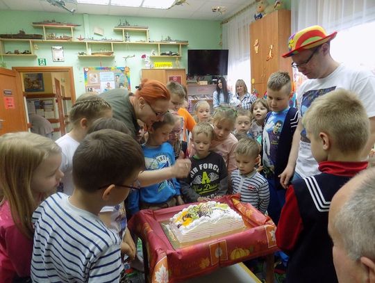 Pogaduszki trwałyby jeszcze długo, ale na małych gości czekał… zamówiony przez burmistrza tort. Tort z podwójnej okazji - Dnia Dziecka i 70 urodzin słynnej Pipi stworzonej przez Astrid Lindgren.