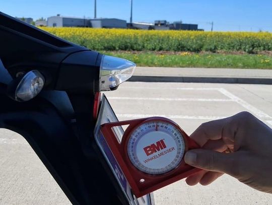 Komenda Miejska Policji w Słupsku jako pierwsza w kraju rozpoczęła pilotażowe działania mające na celu profesjonalny pomiar kąta odgięcia tablic rejestracyjnych w motocyklach – podaje policja.