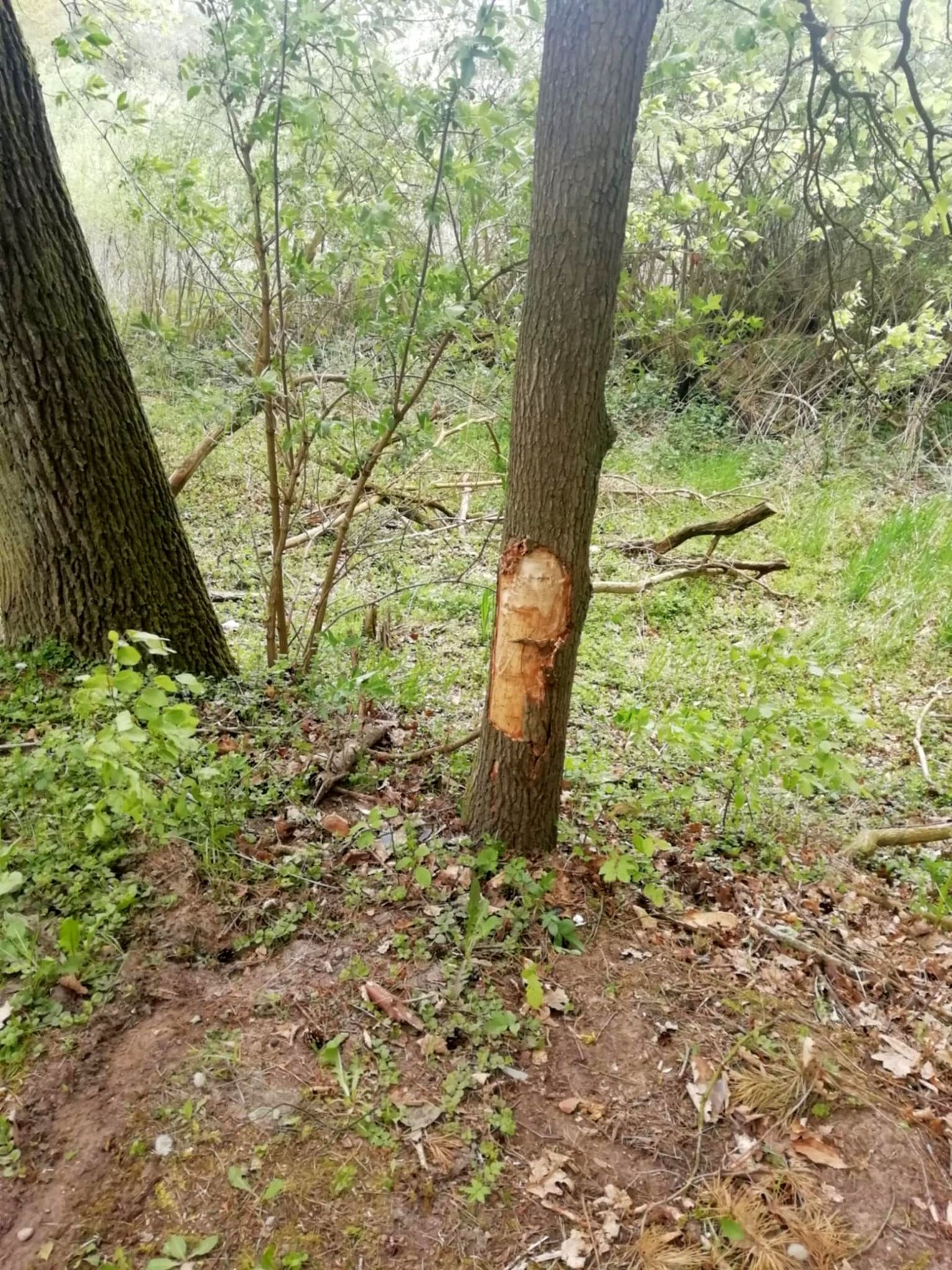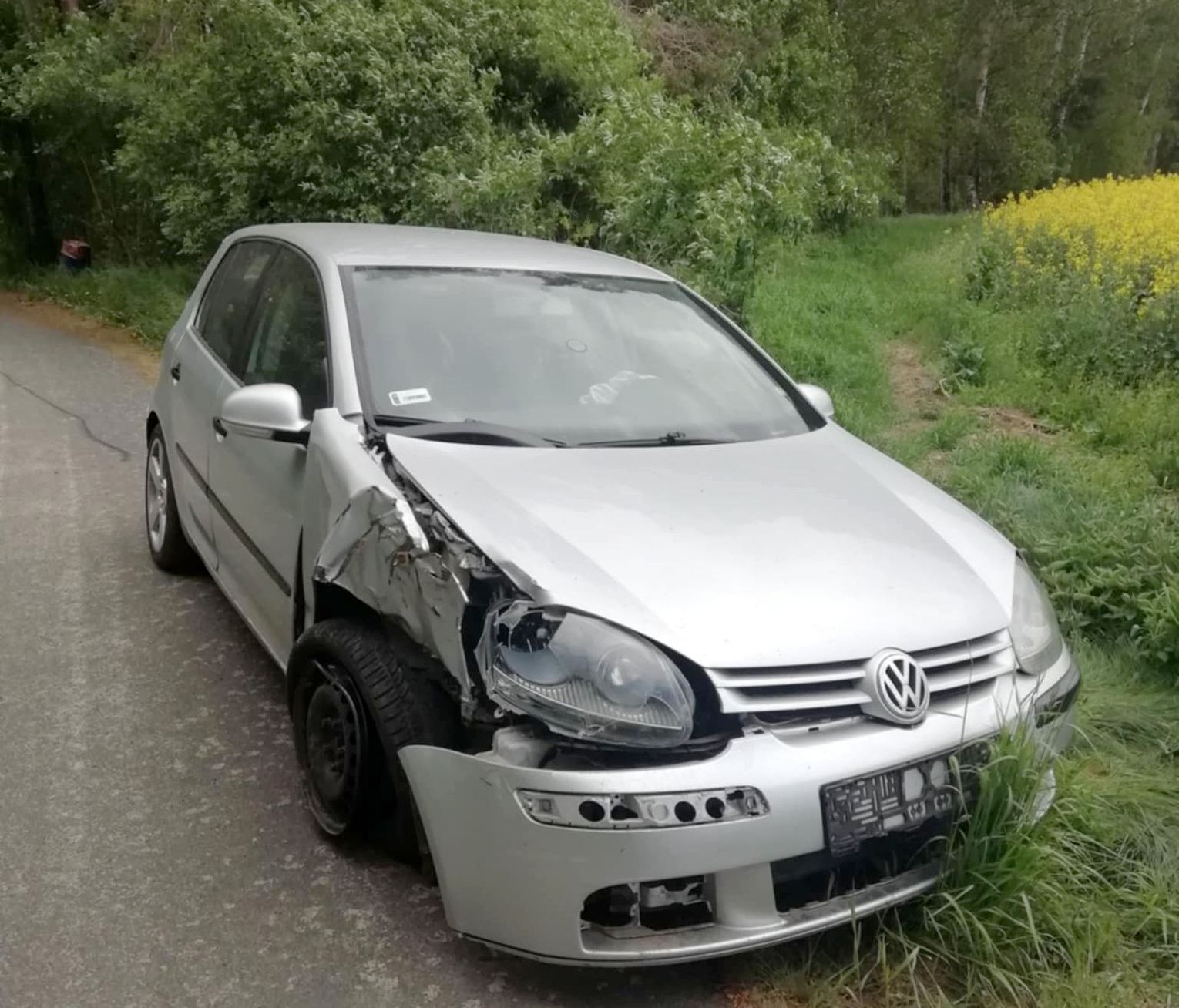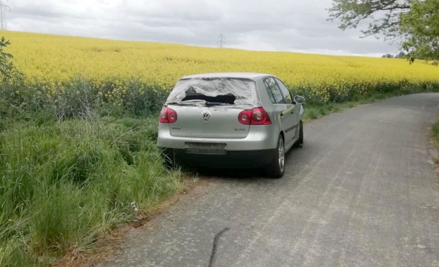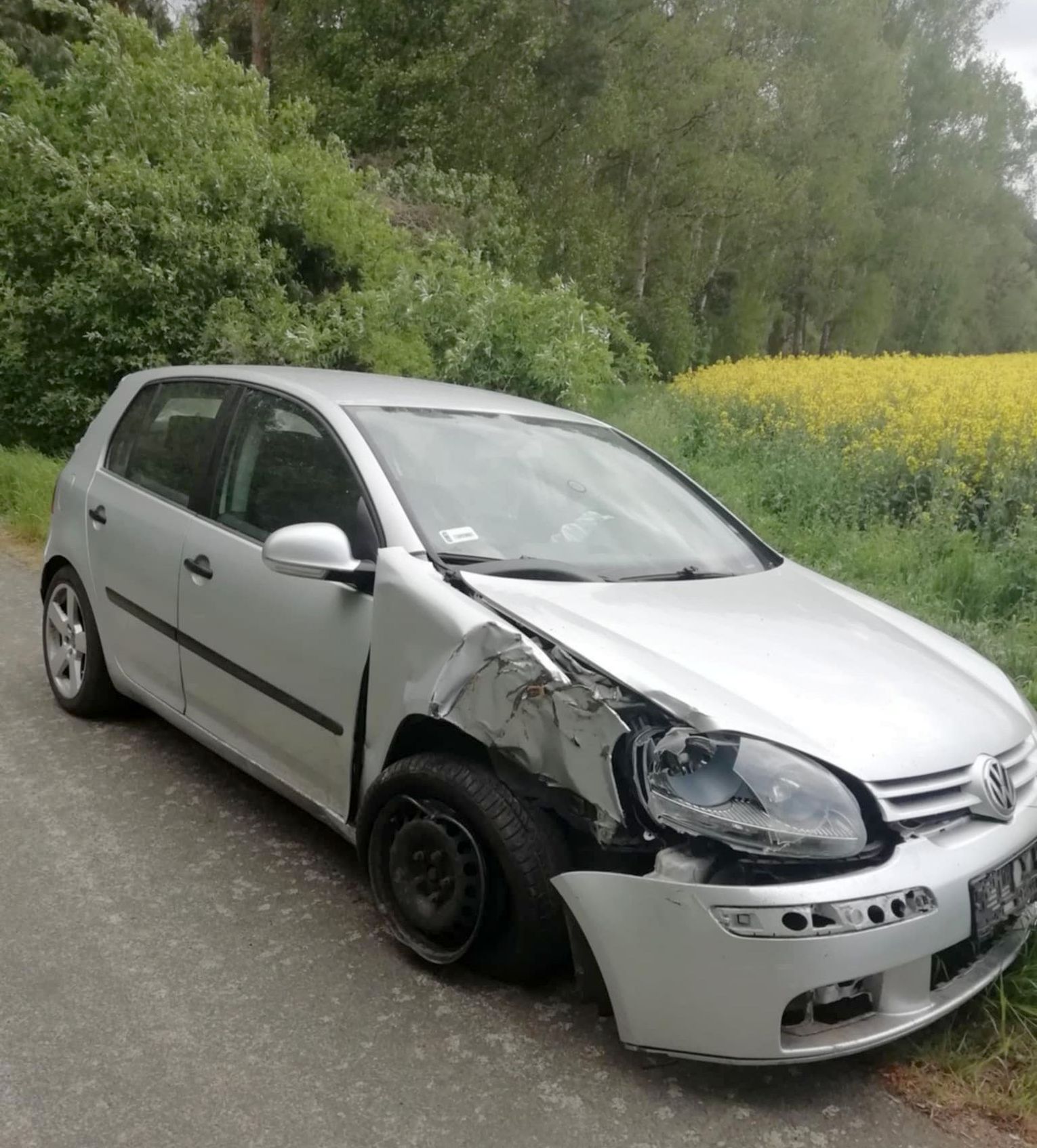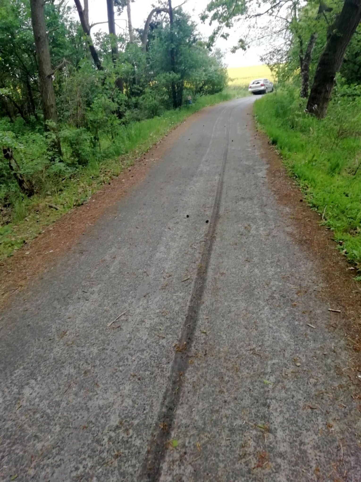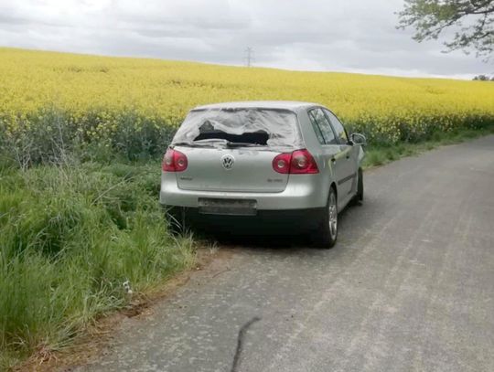 Wygląda na to, że ktoś jechał od strony Wełtynia w gm. Gryfino. Zdołał pokonać nawet betonowe przeszkody. W pewnym momencie uderzył w drzewo, na którym są widoczne ślady. Kierowca porzucił volkswagena i uciekł.
