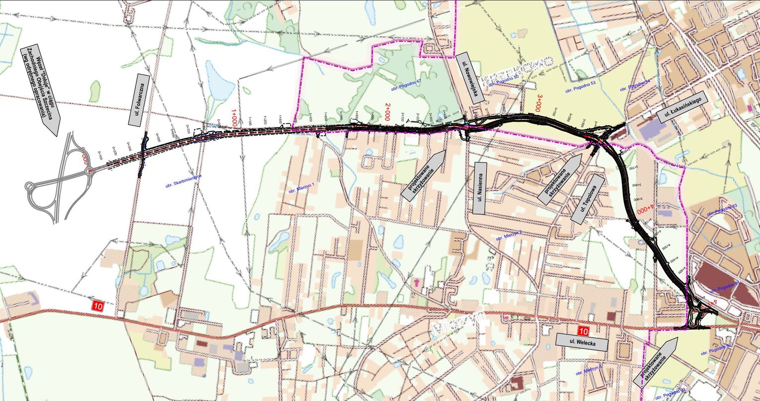 Dalej trasa będzie biegła w kierunku północnym do połączenia ulic Topolowej i Łukasińskiego. Za ten odcinek o długości ok. 1,2 km będzie odpowiedzialna GDDKiA.