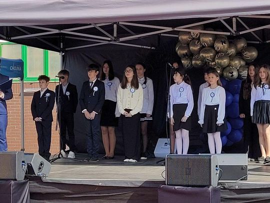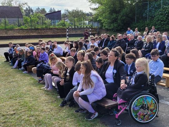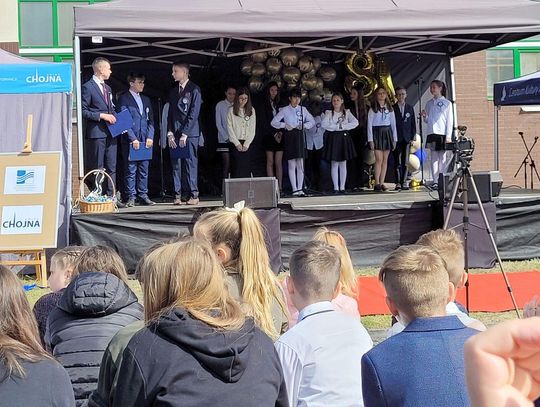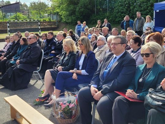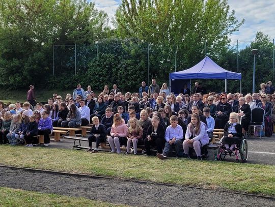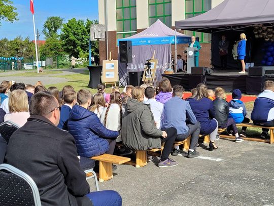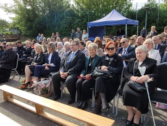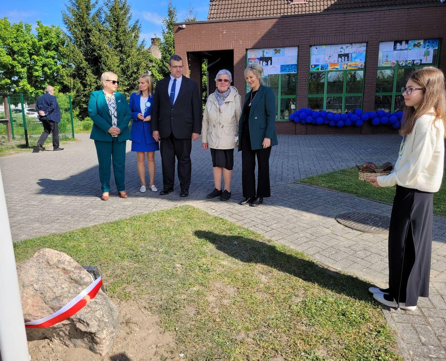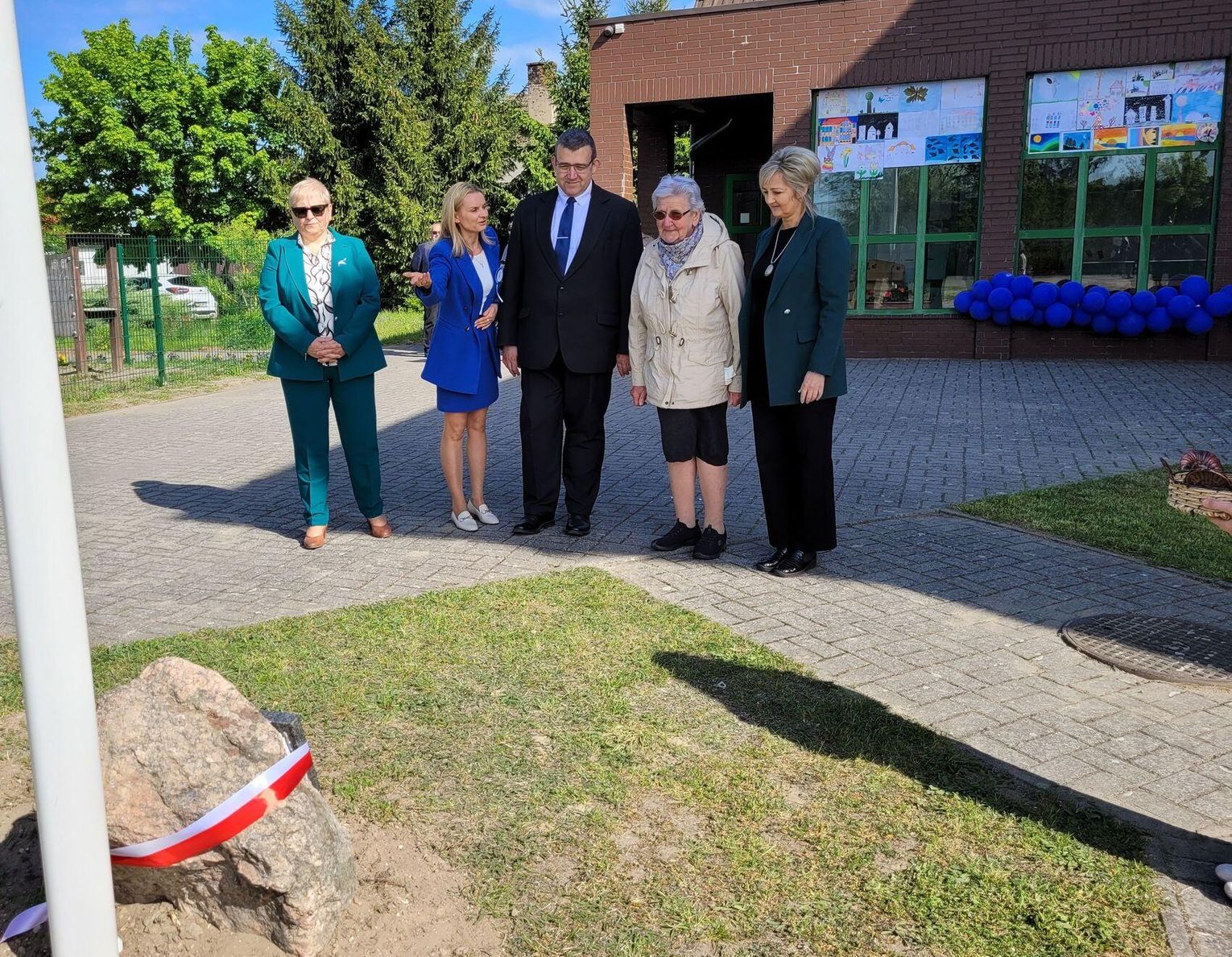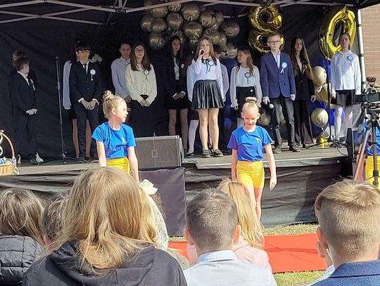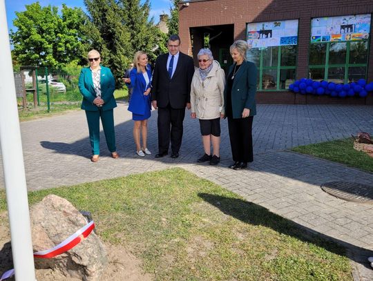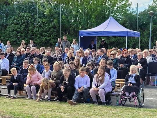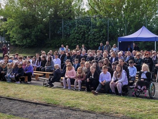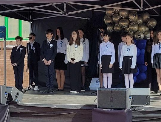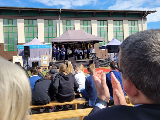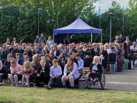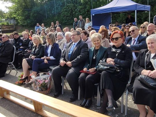 Następnie dyrektorka placówki Ewa Zatorska zaprosiła wszystkich zebranych, aby udali się przed budynek szkoły. Tam uwieczniono ten wyjątkowy dzień na pamiątkowym zdjęciu.