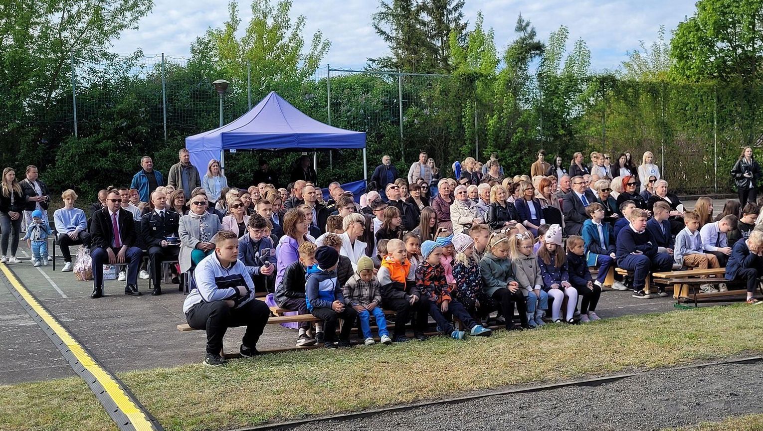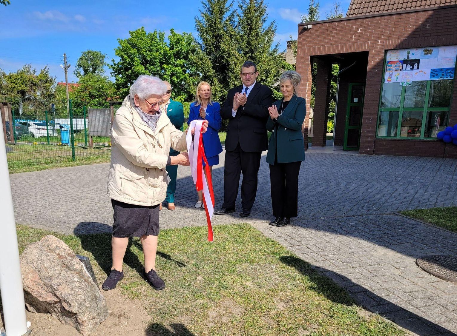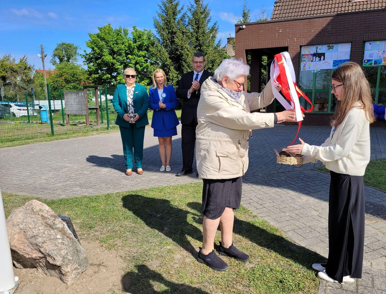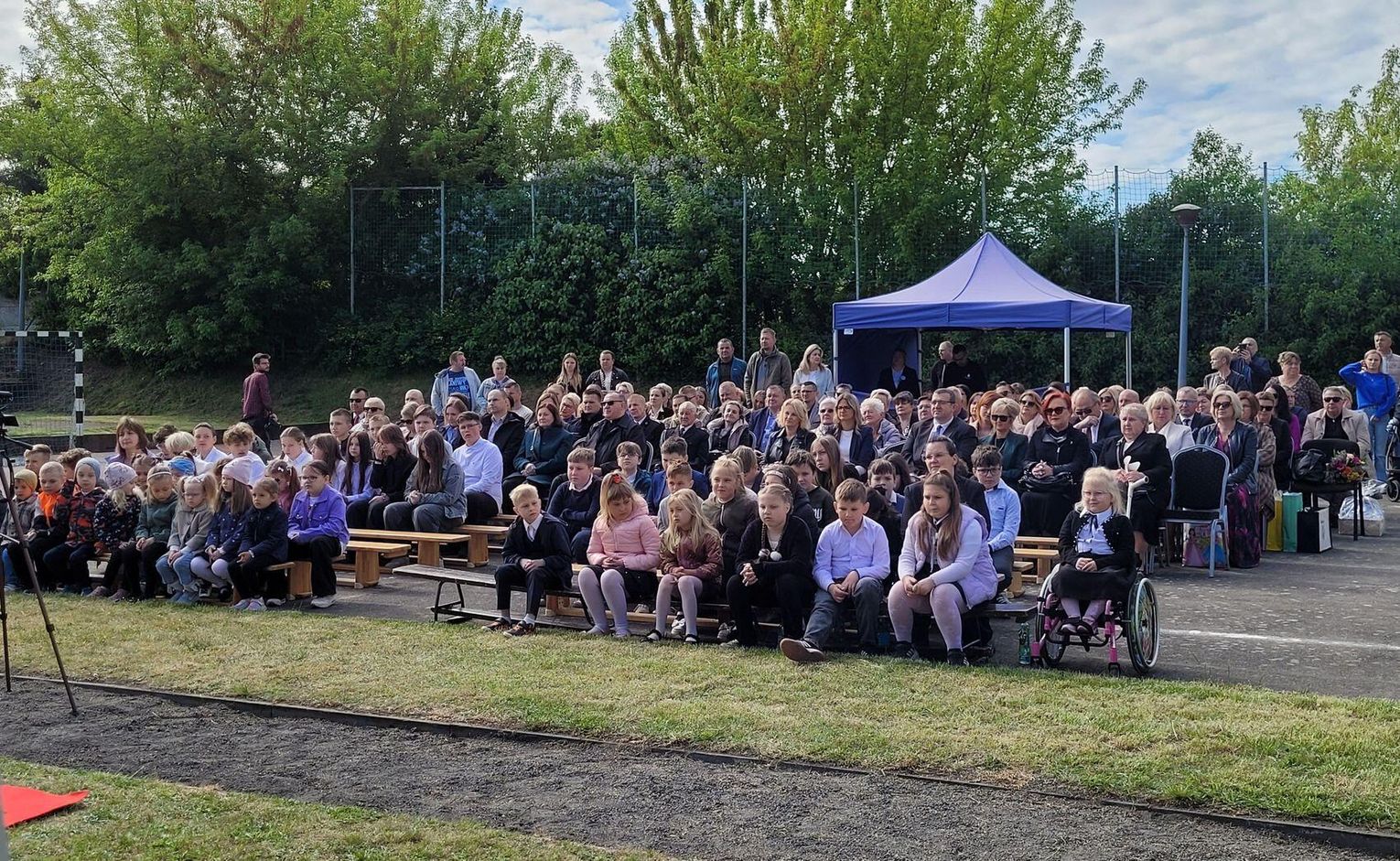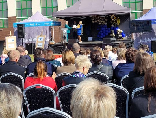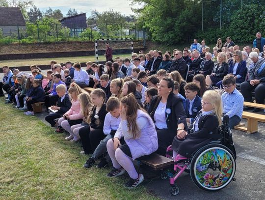 Następnie dyrektorka placówki Ewa Zatorska zaprosiła wszystkich zebranych, aby udali się przed budynek szkoły. Tam uwieczniono ten wyjątkowy dzień na pamiątkowym zdjęciu.
