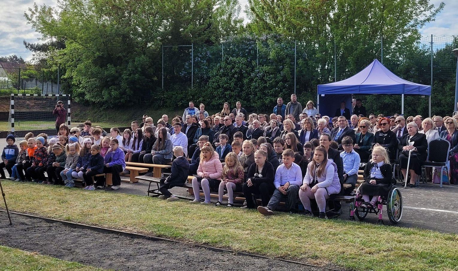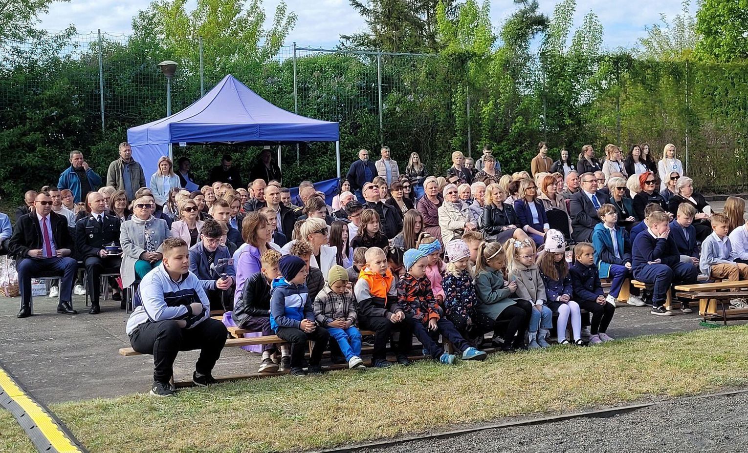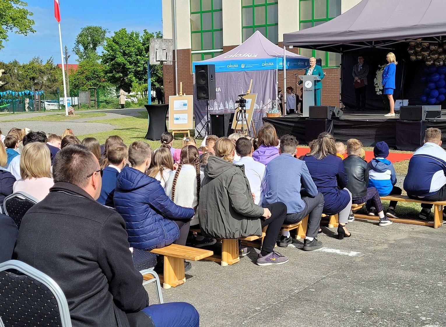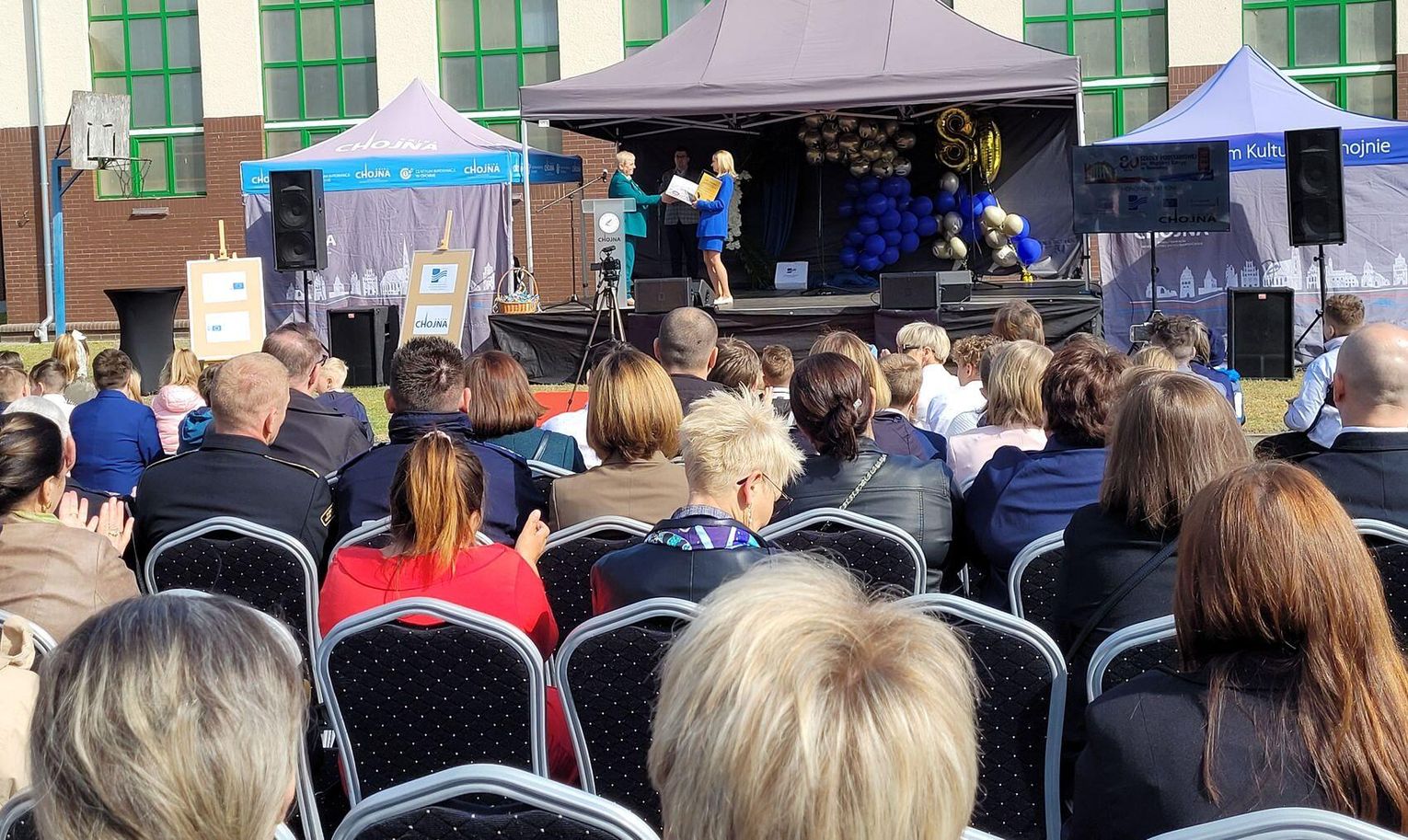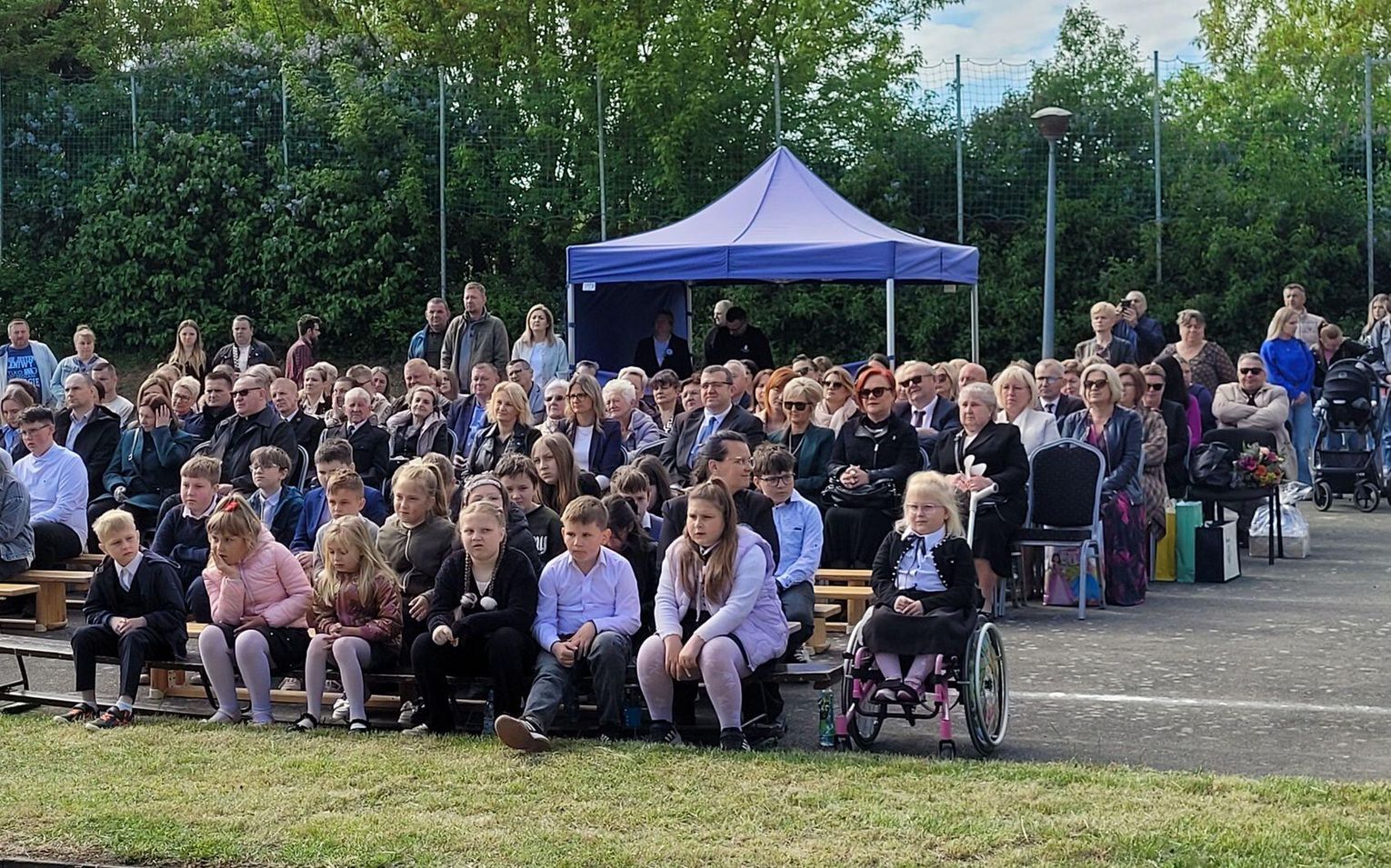 Następnie dyrektorka placówki Ewa Zatorska zaprosiła wszystkich zebranych, aby udali się przed budynek szkoły. Tam uwieczniono ten wyjątkowy dzień na pamiątkowym zdjęciu.