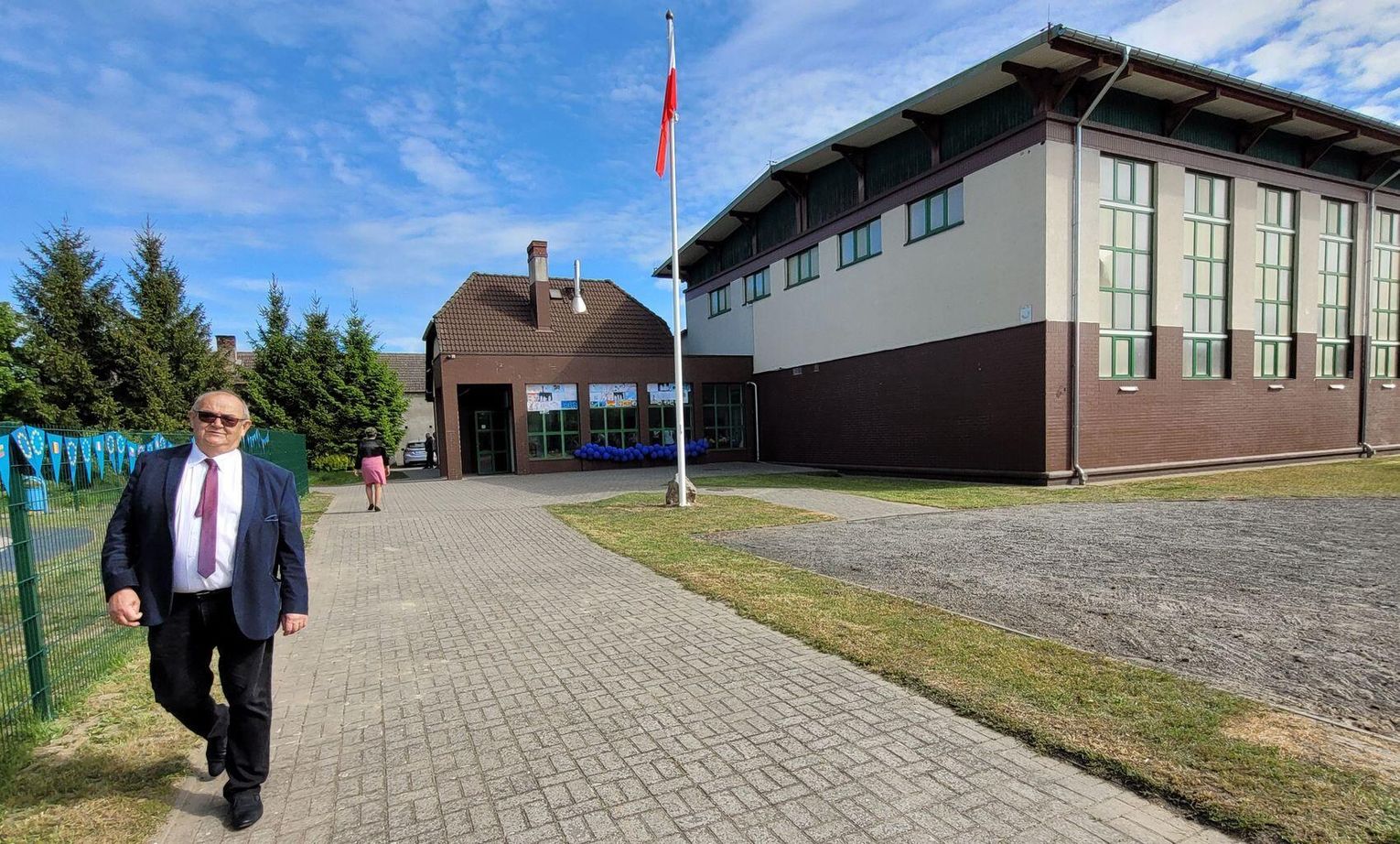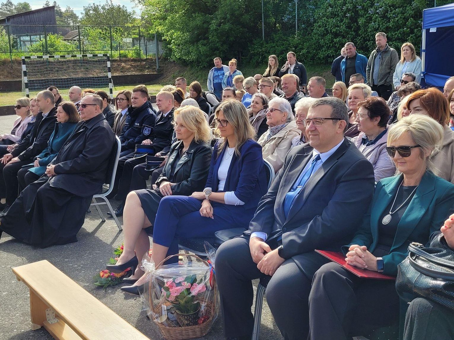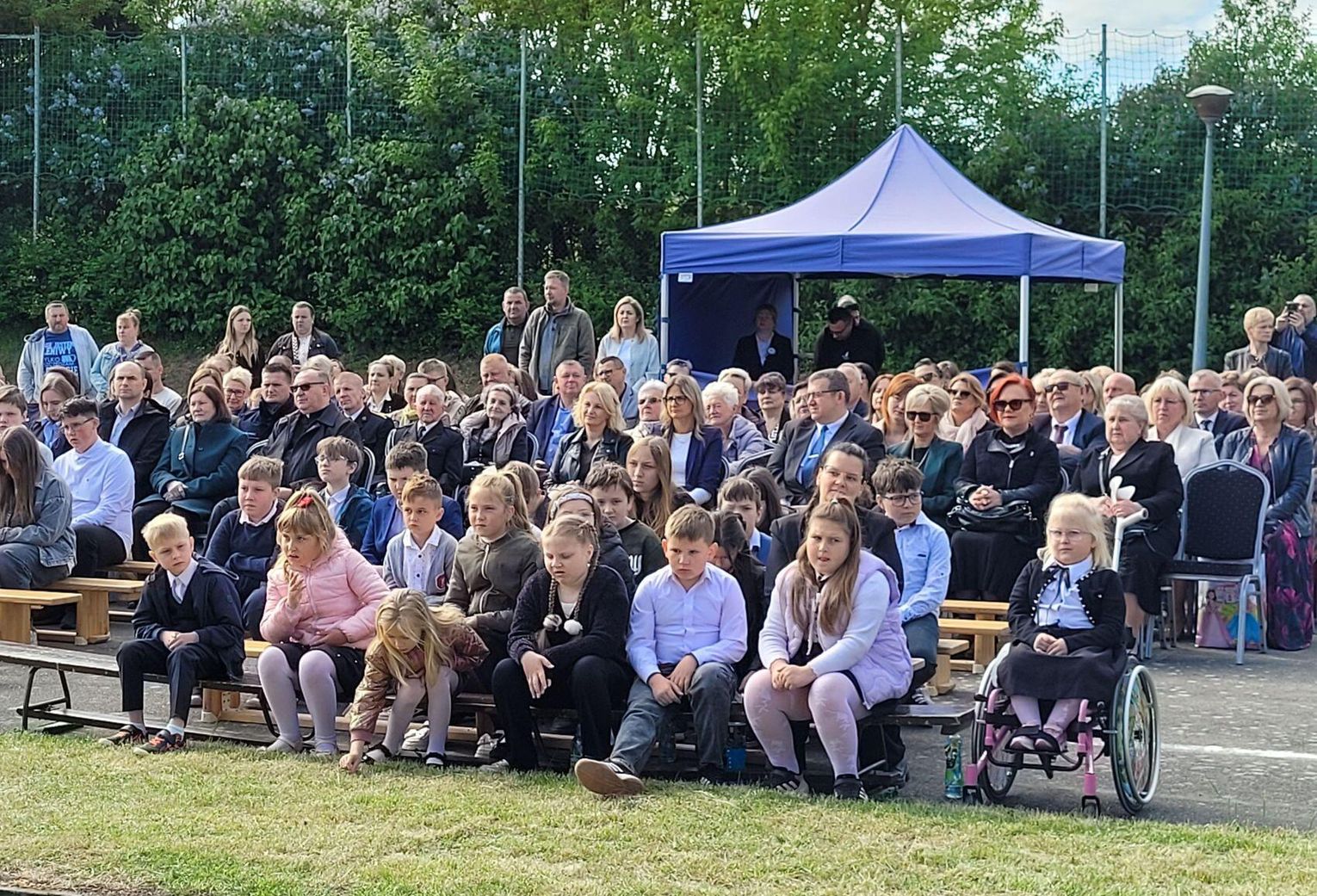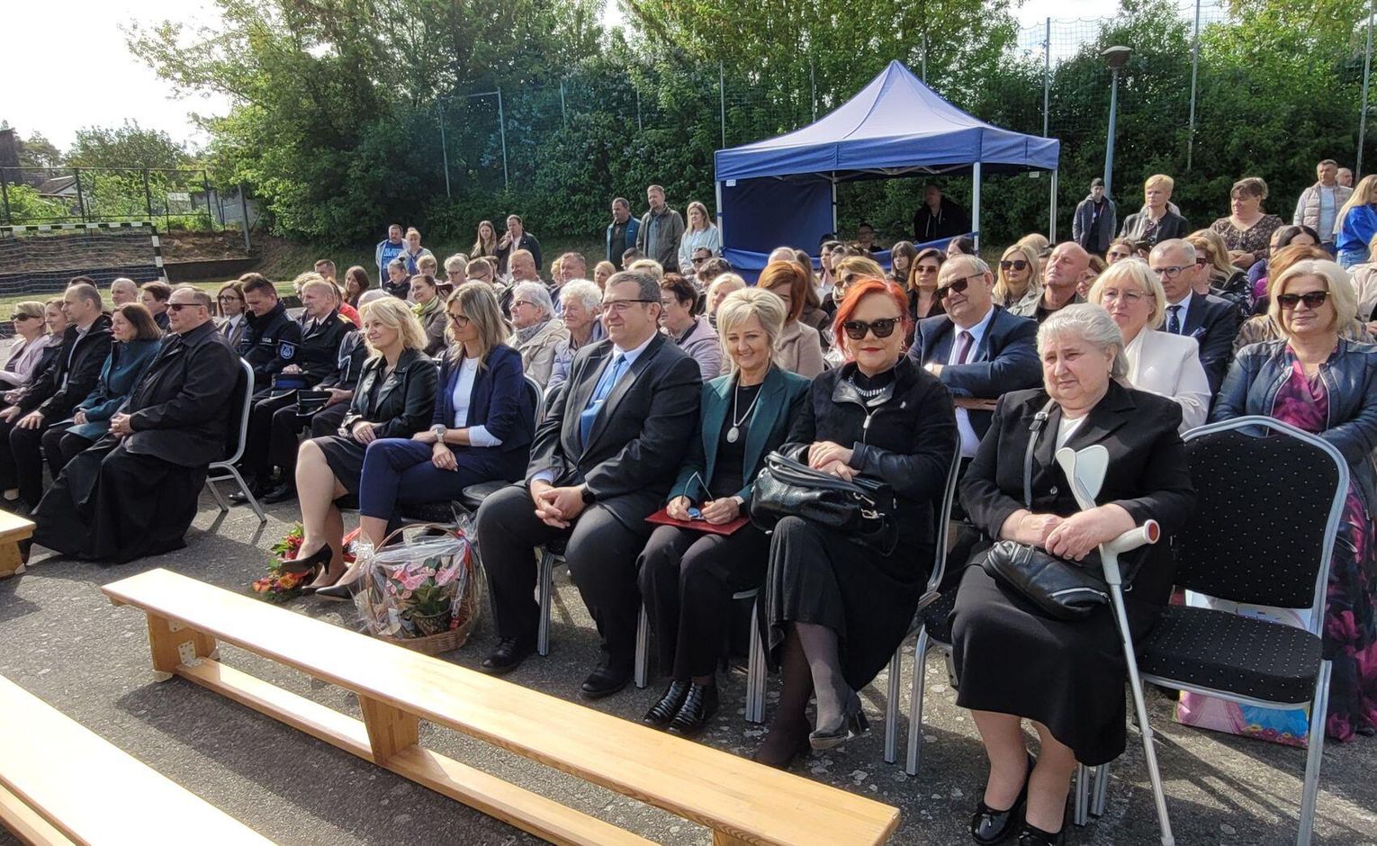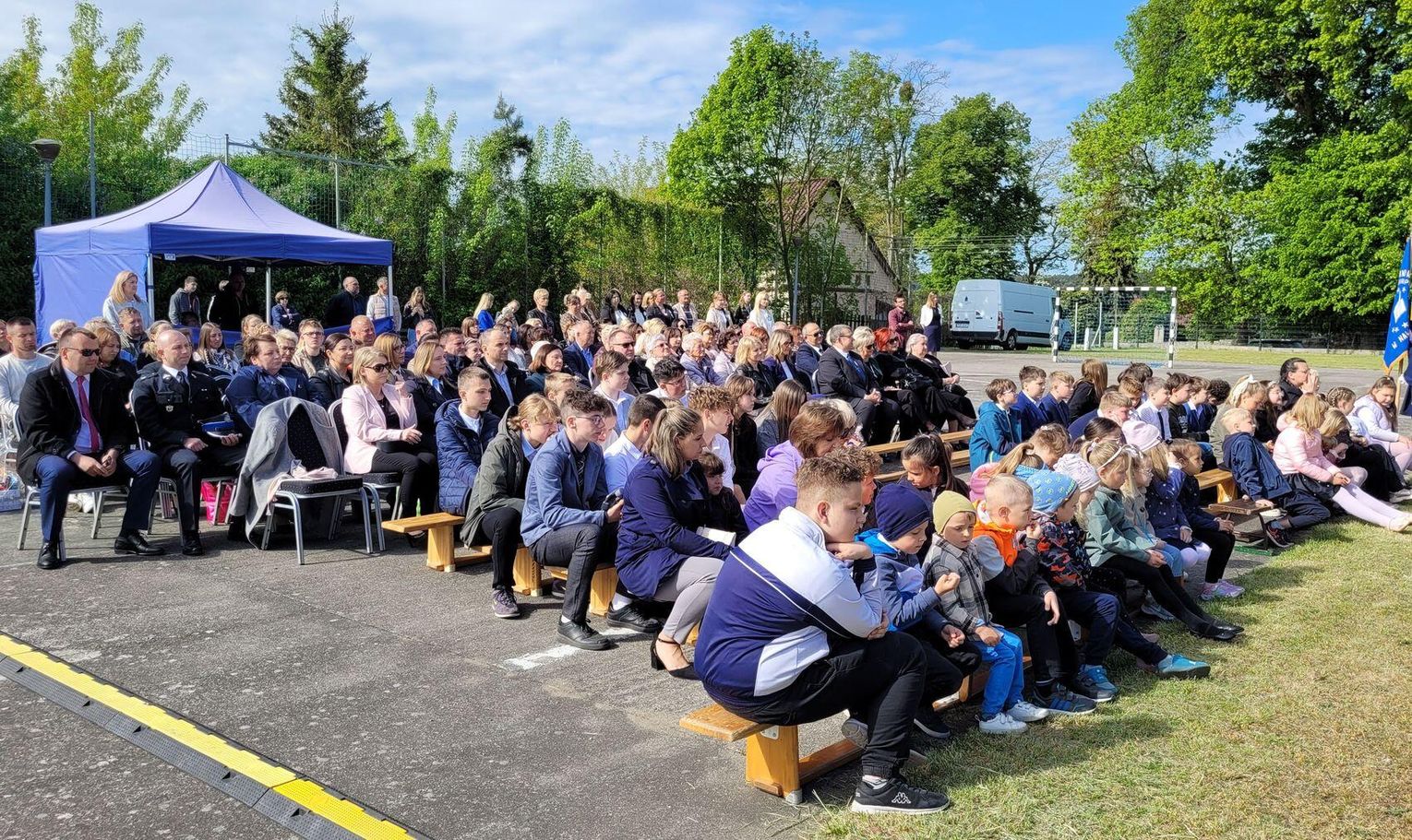 Następnie dyrektorka placówki Ewa Zatorska zaprosiła wszystkich zebranych, aby udali się przed budynek szkoły. Tam uwieczniono ten wyjątkowy dzień na pamiątkowym zdjęciu.