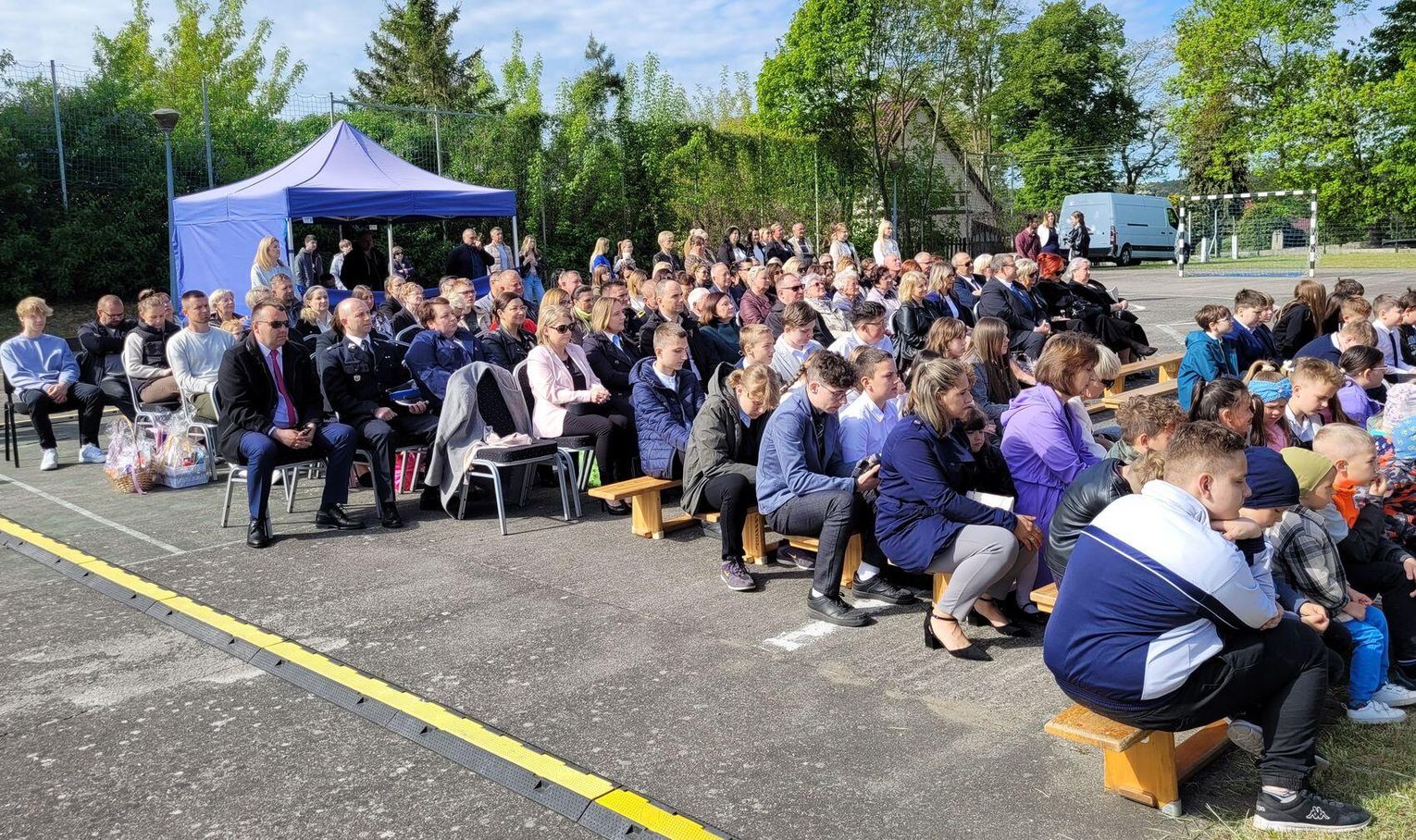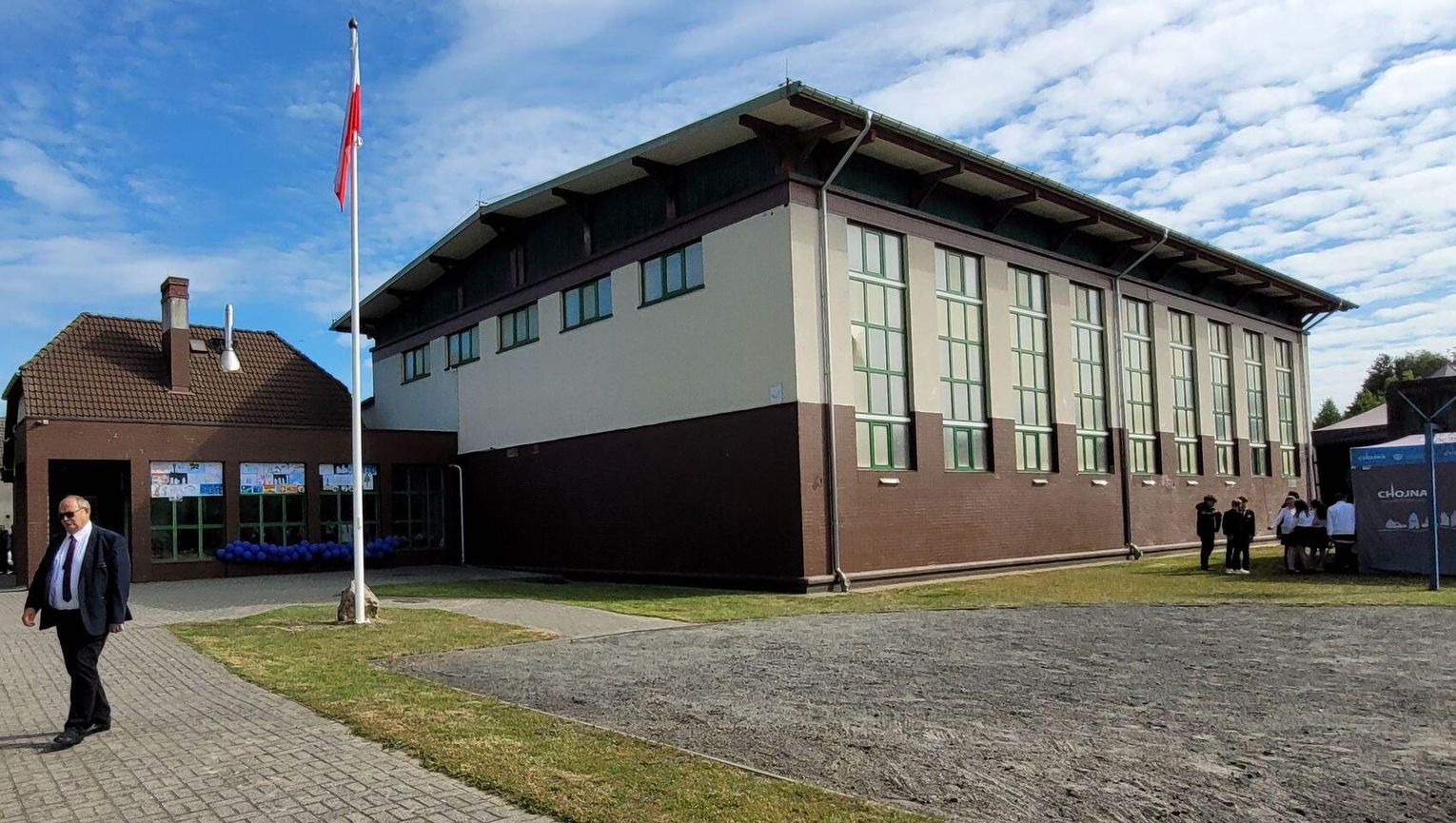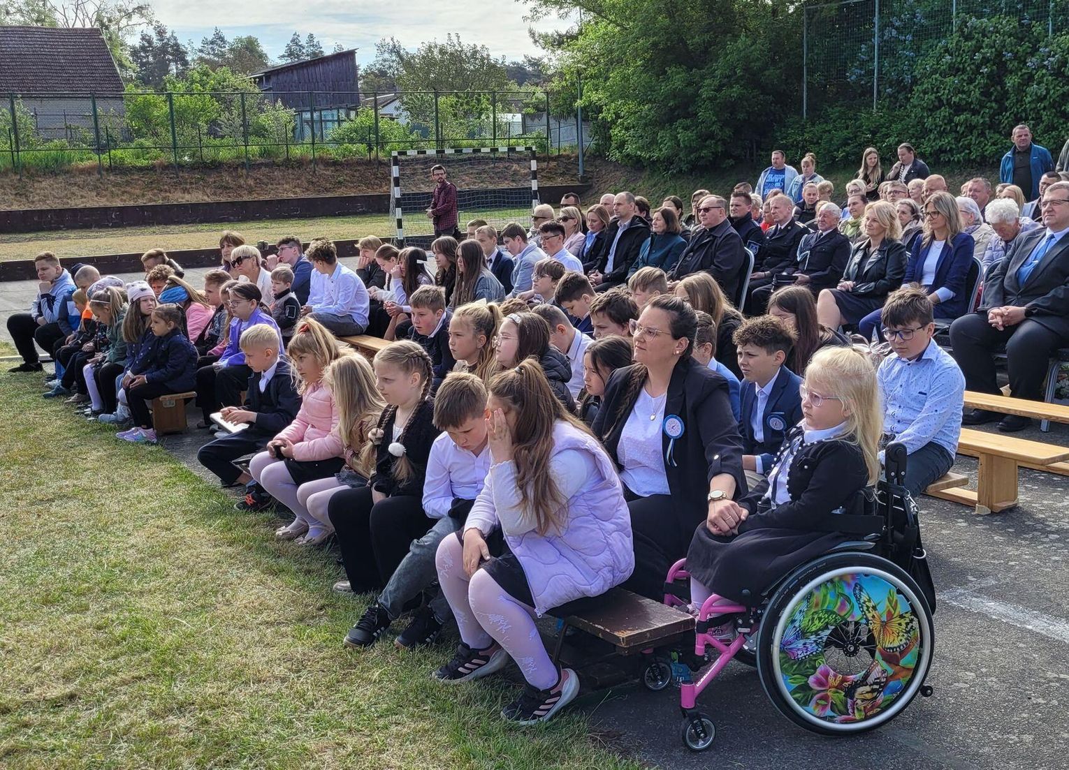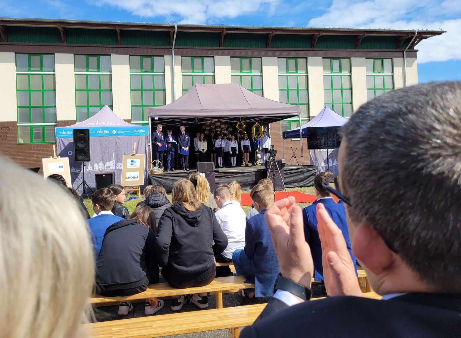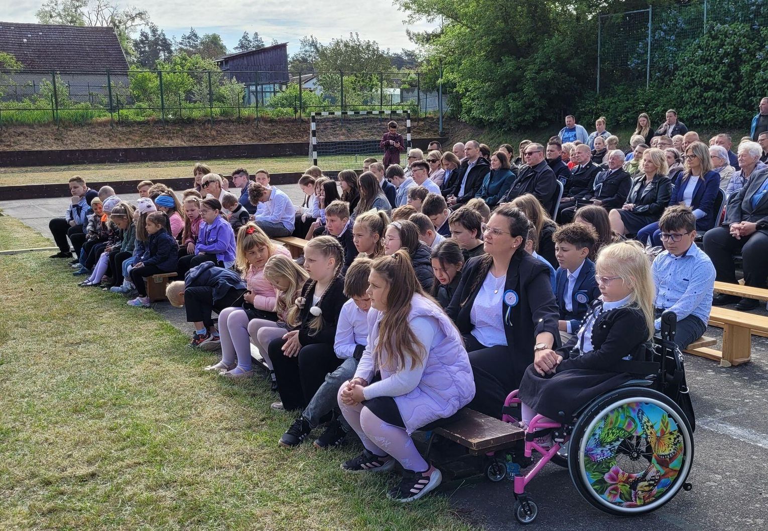 Następnie dyrektorka placówki Ewa Zatorska zaprosiła wszystkich zebranych, aby udali się przed budynek szkoły. Tam uwieczniono ten wyjątkowy dzień na pamiątkowym zdjęciu.