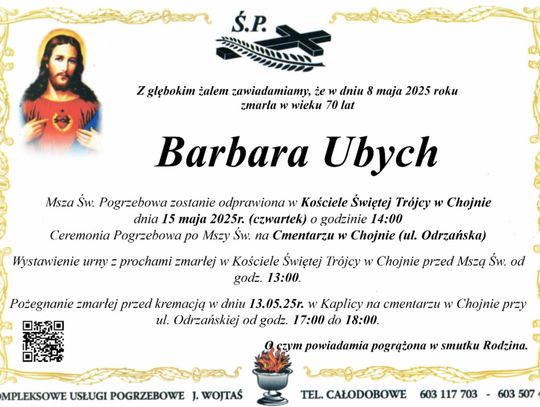 Barbara Ubych – zmarła 8 maja 2025 r. w wieku 70 lat