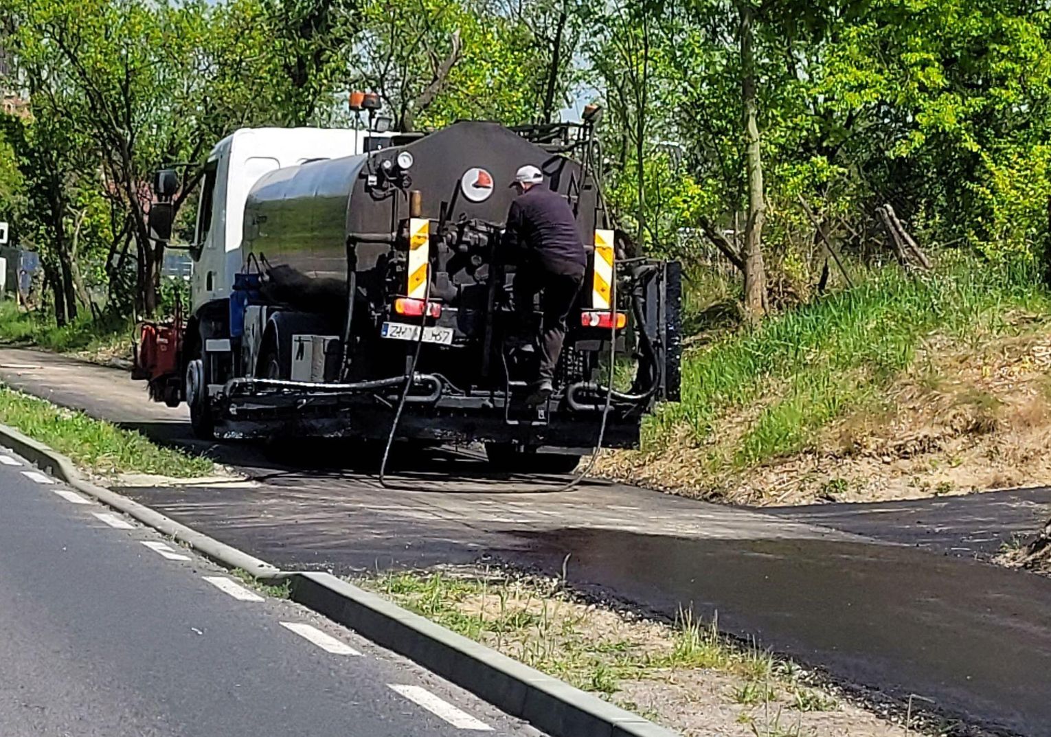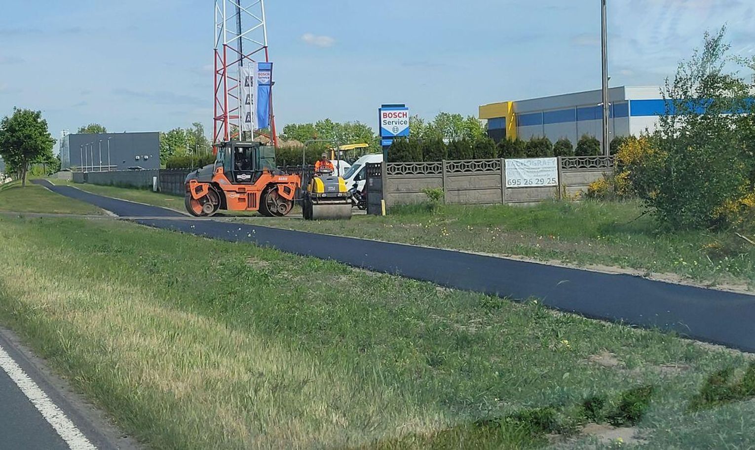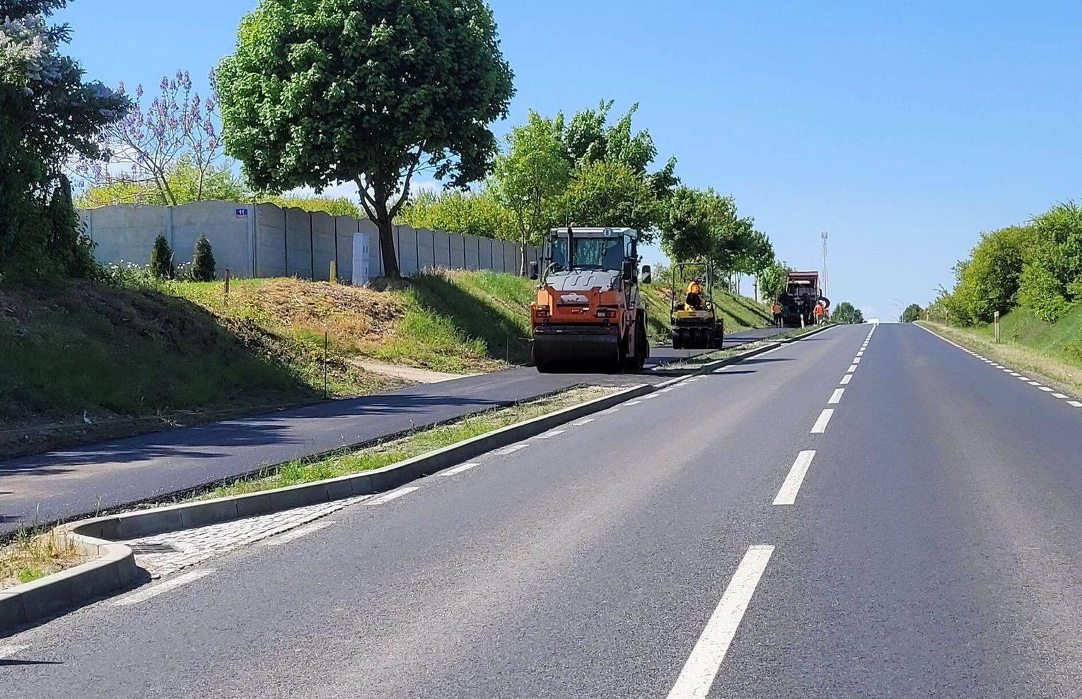 To już jeden z ostatnich etapów budowy ścieżki rowerowej przy ulicy Odrzańskiej w drodze wojewódzkiej nr 124. Inwestycja trwa już niemal od 5 lat. Odcinek od obecnego Dino pod cmentarz był już gotowy w 2021 r. Kosztował milion. Teraz kolejny milion i kolejny odcinek. Asfalt jest teraz po skrzyżowanie z drogą na tor motocrossowy.