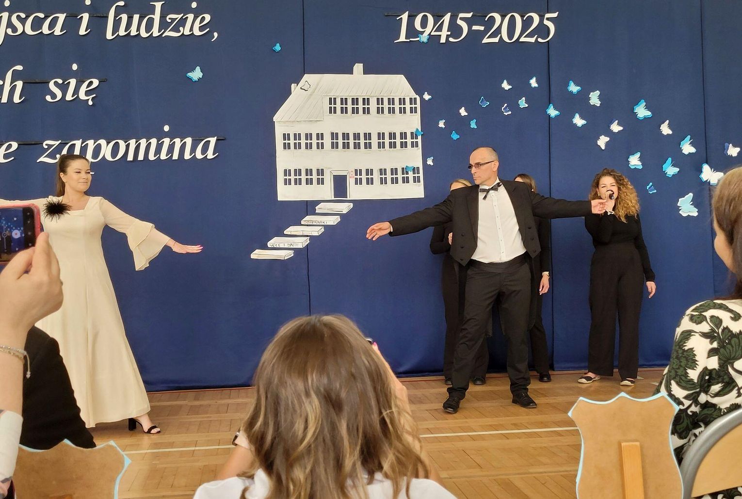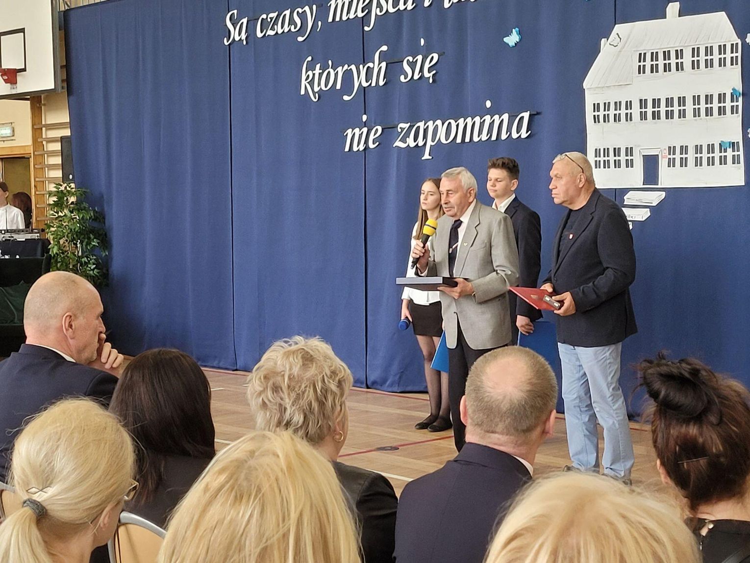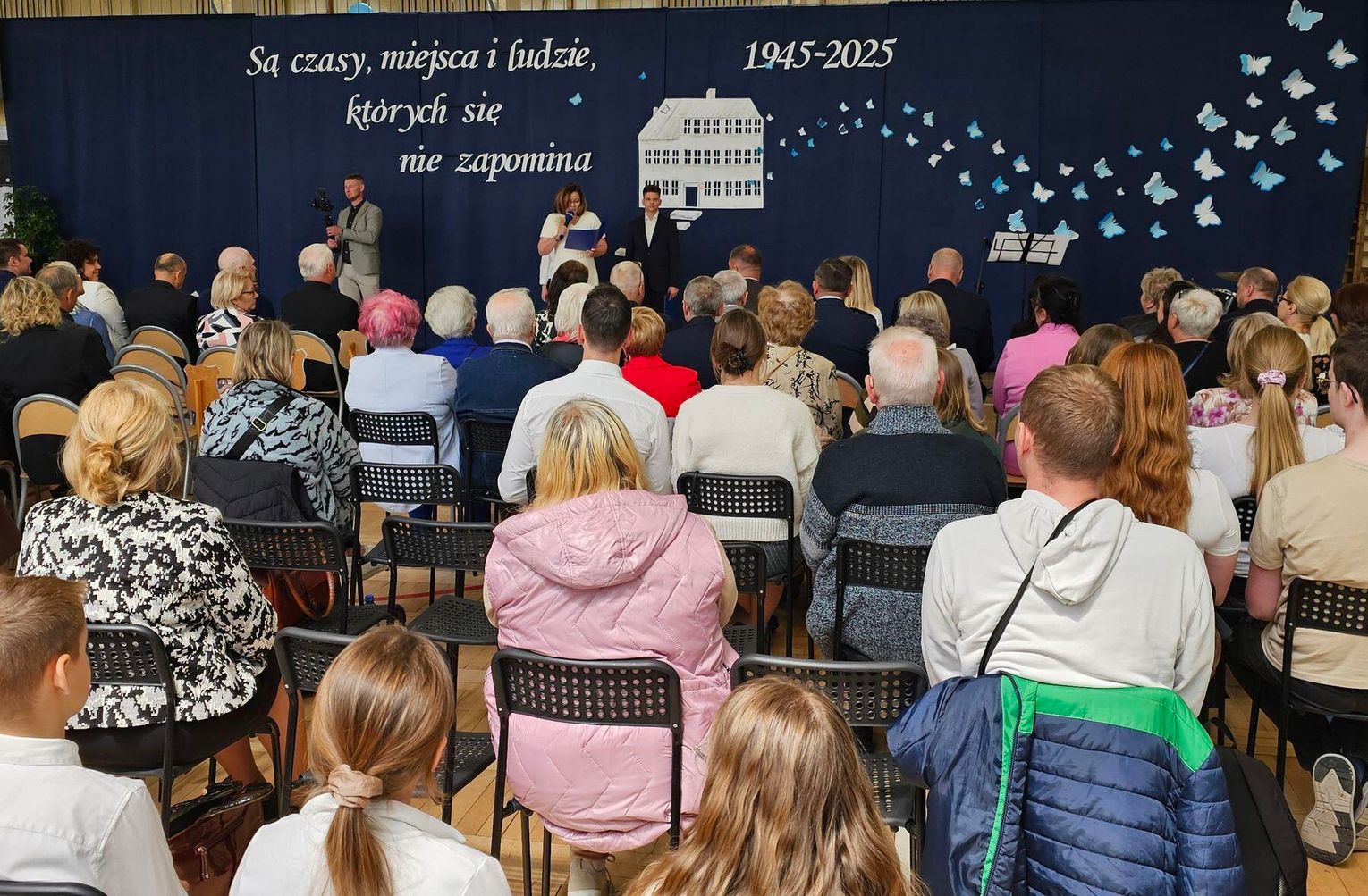 Uroczysta akademia odbyła się w sali gimnastycznej. Gości powitała i historię szkoły przedstawiła dyrektorka Marzena Jabłońska. Akademię prowadziło dwoje uczniów. Wystąpiły dwa zespoły: taneczny i muzyczno-taneczny. I na tym główna aktywność uczniów się skończyła. W rolę "szkoły" wcieliła się nauczycielka i to ona przedstawiała głównie absolwentów placówki. I to im oddawano często głos... Akcent postawiono przede wszystko na absolwentów pełniących ważne funkcje, sprawujących władzę czy pracujących w gryfińskich instytucjach.