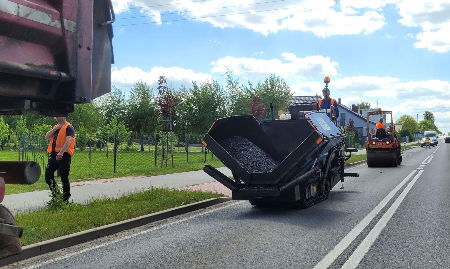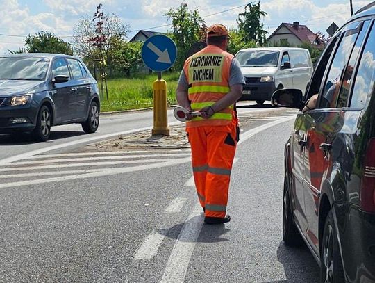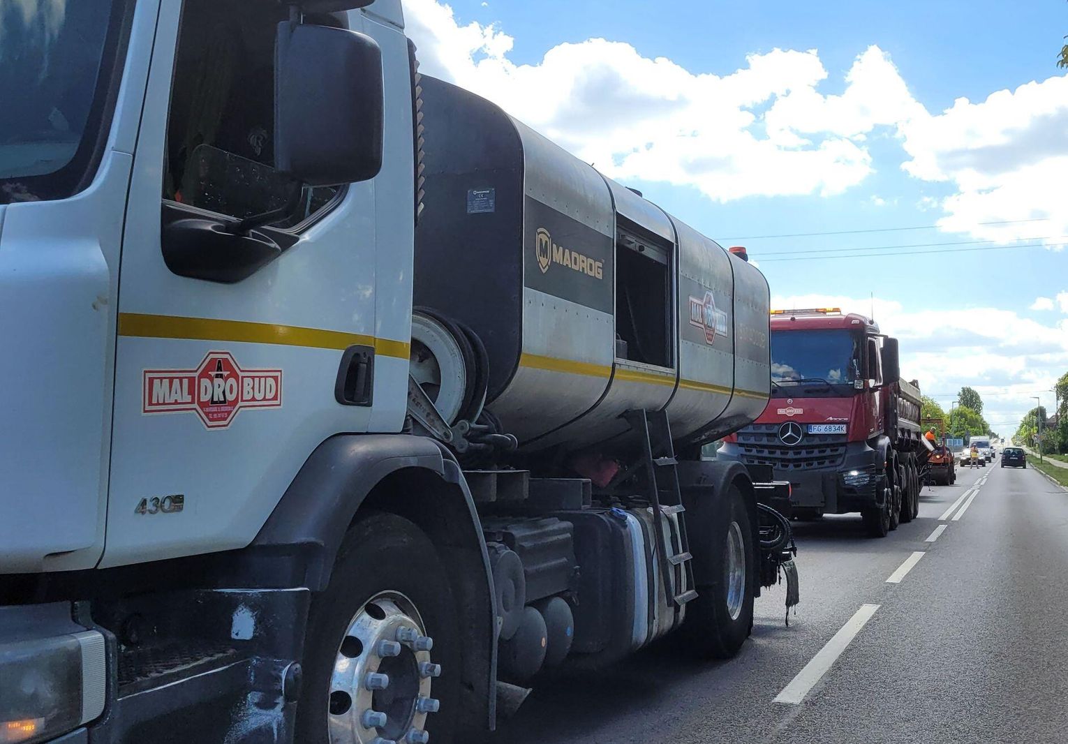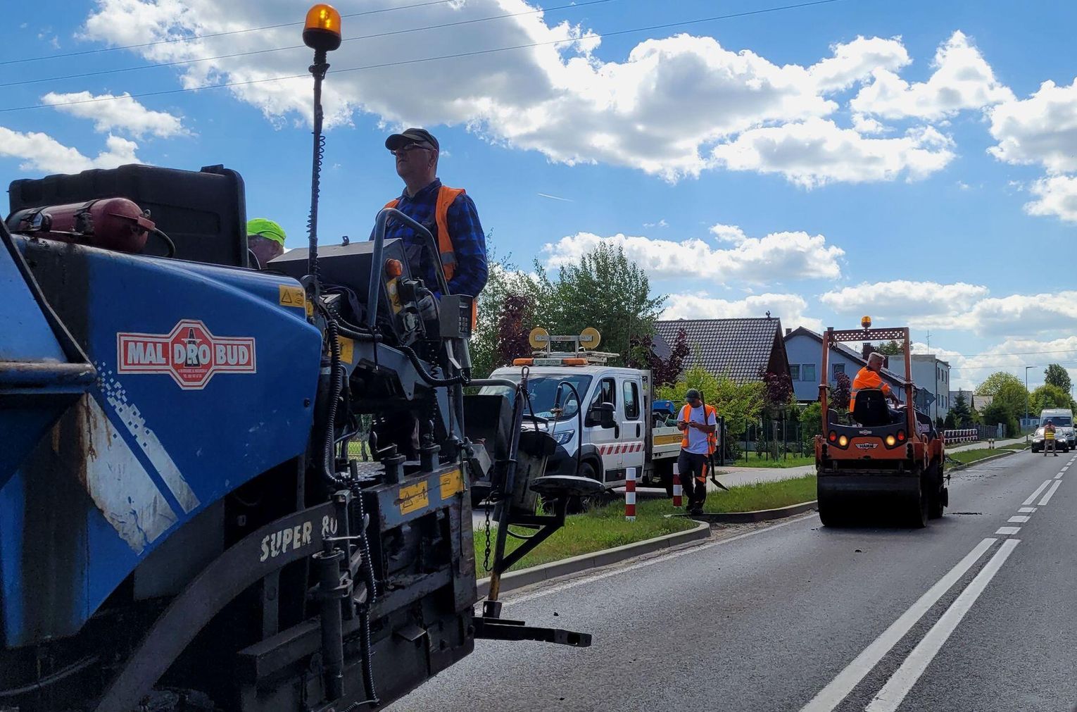 To jednak typowa sytuacja na ulicy, gdzie jest tymczasowe zawężenie jezdni, podczas prac remontu jezdni. Dziś na ulicy Odrzańskiej w Chojnie prowadzone była naprawa jezdni. Wkroczył sprzęt ciężki i stąd dodatkowe zabezpieczenia.