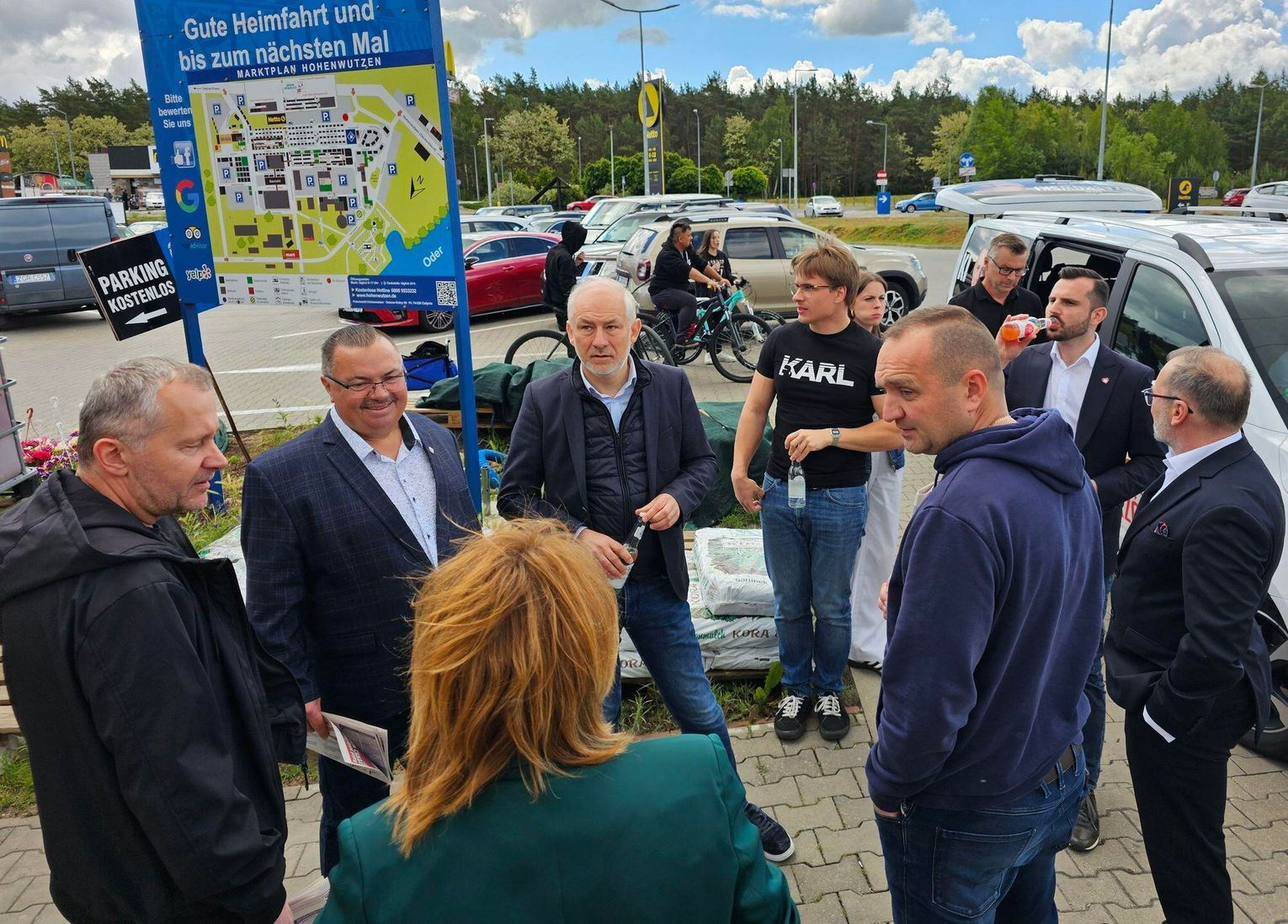 Tak naprawdę parlamentarzyści, wicewojewoda i lokalni działacze byli na targowisku. Tu podzielili się na dwie grupy. Rozmawiali z handlowcami, bo klienci to głównie goście zza Odry.