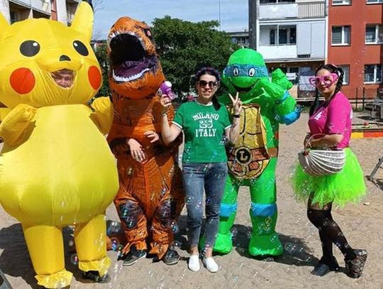 Na miejscu nie zabrakło atrakcji dla małych gości. Na placu zabaw przy bloku 41-55 pojawiły się dinozaury. Każdy mógł skosztować pysznych lizaków, wybrać ulubiony tatuaż, bawić się bańkami mydlanymi oraz potańczyć na minidyskotece. Atmosfera była wyjątkowo radosna i pełna uśmiechu.