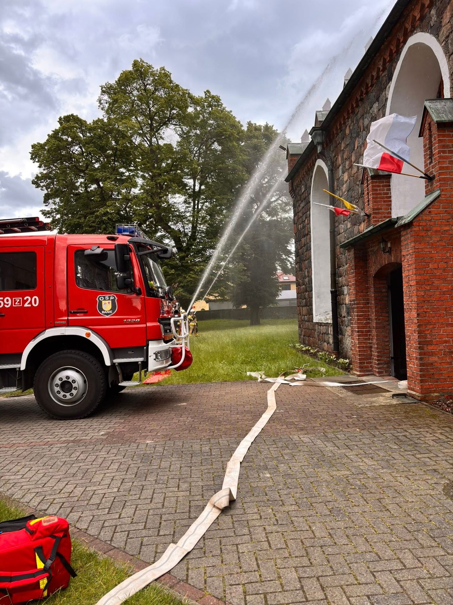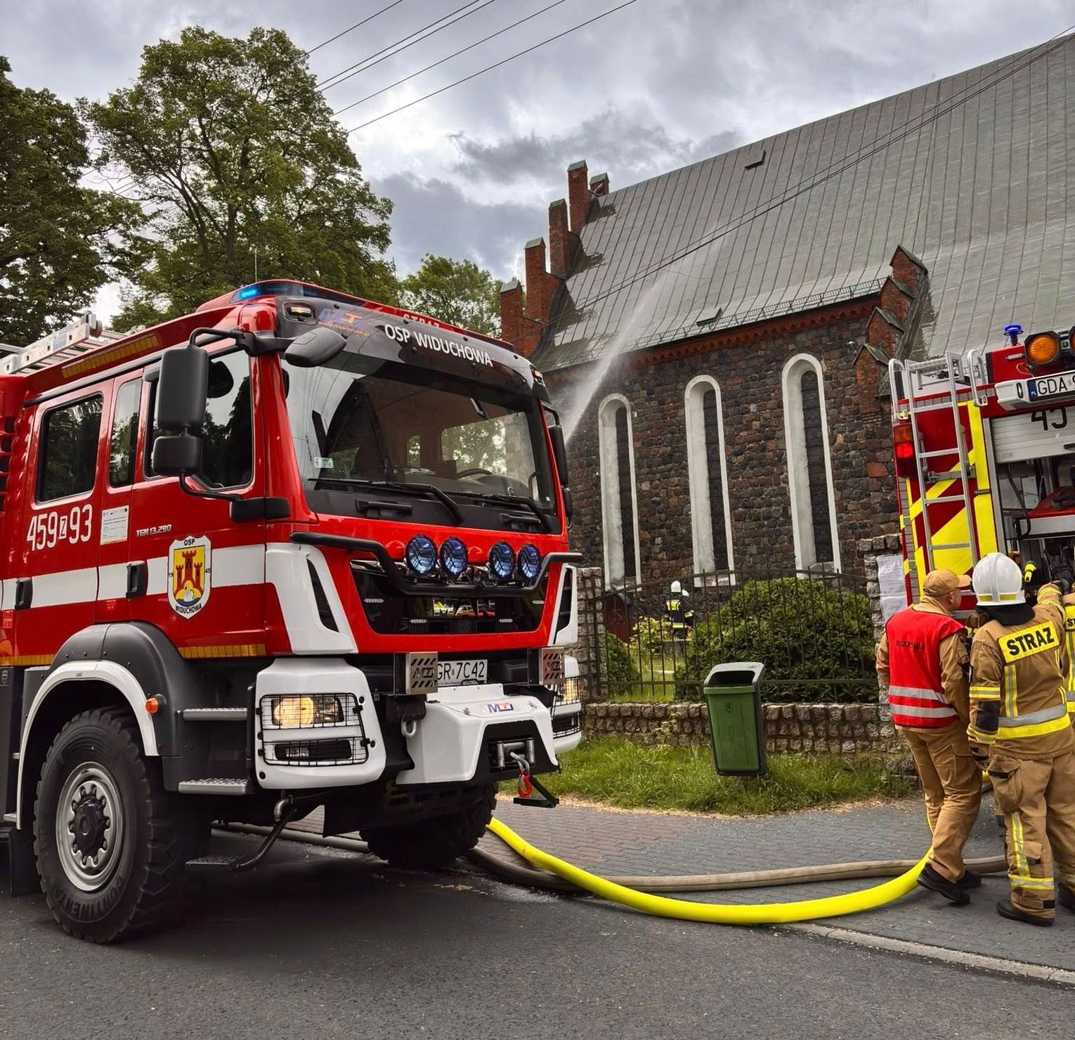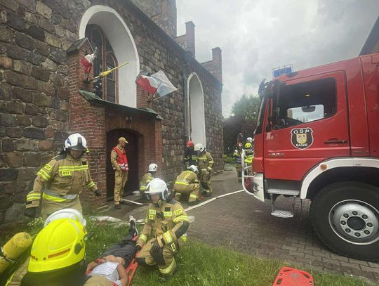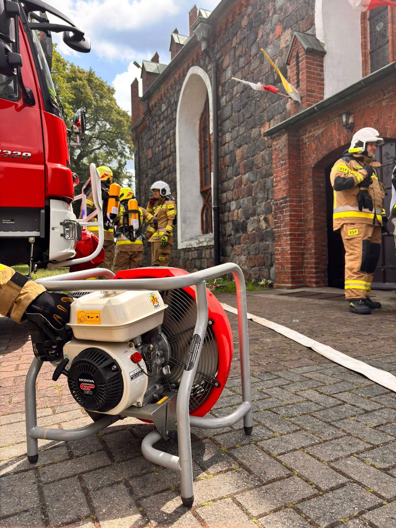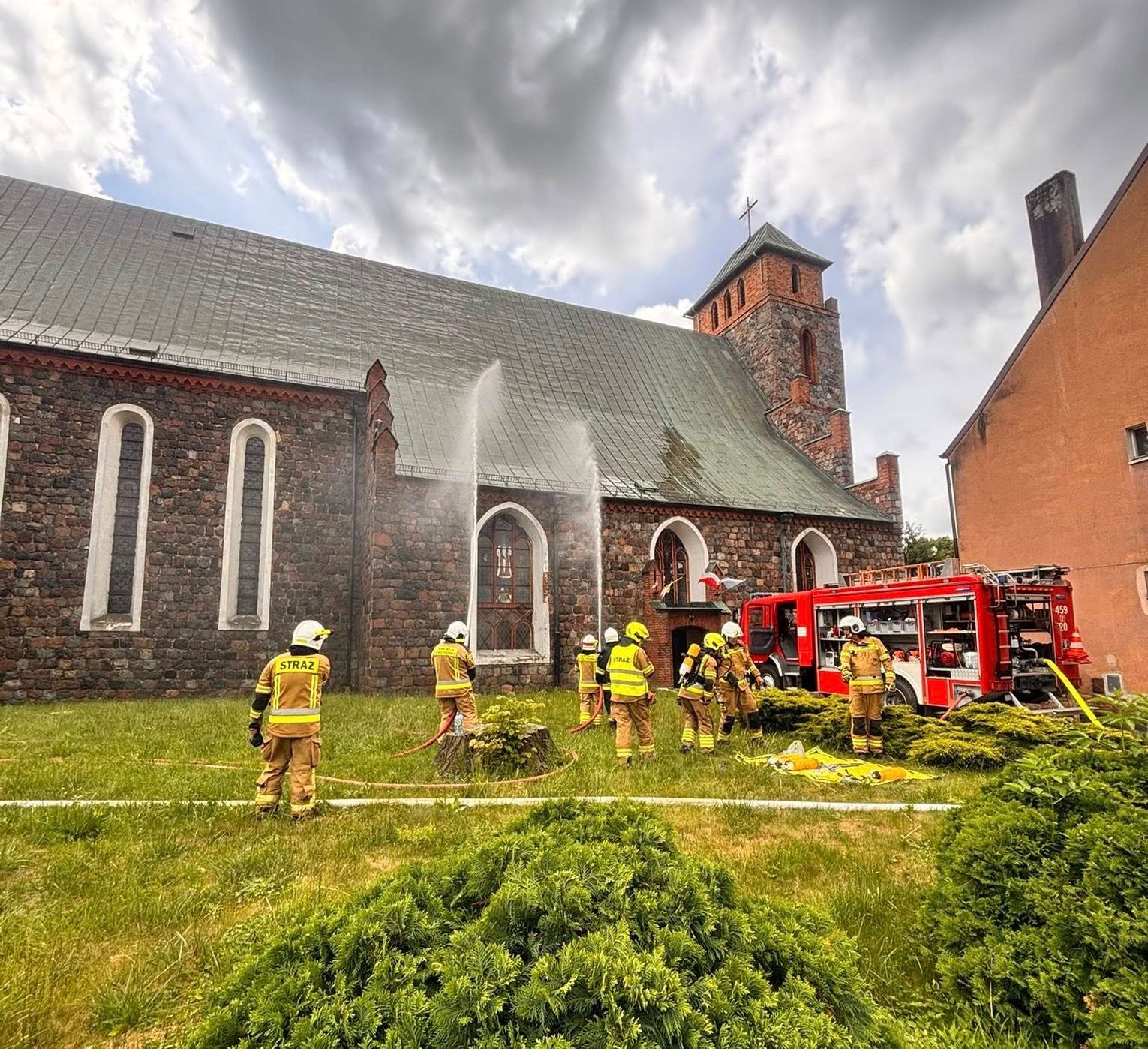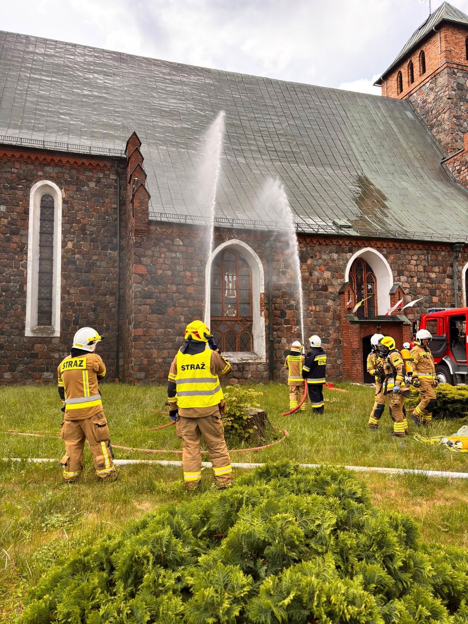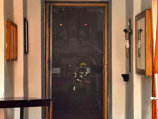 - rozprzestrzeniający się pożar wewnątrz budynku i na dachu kościoła,