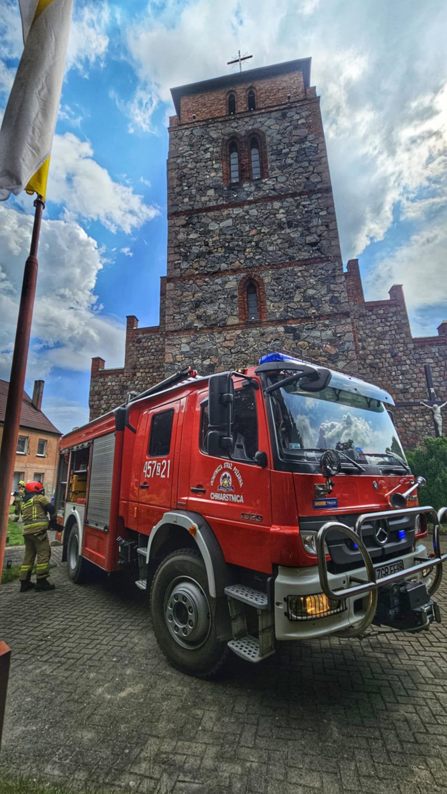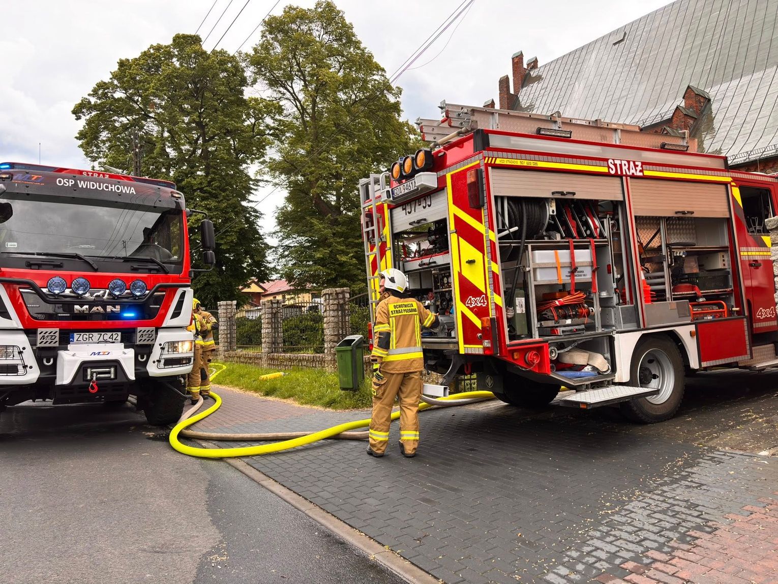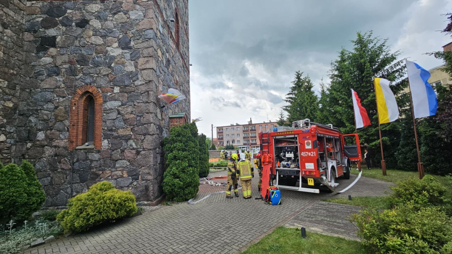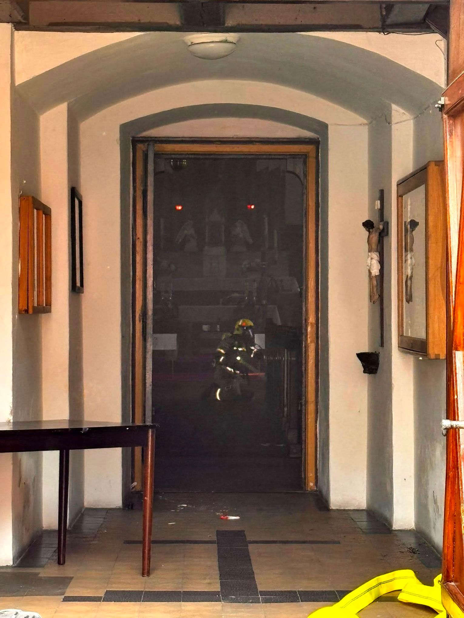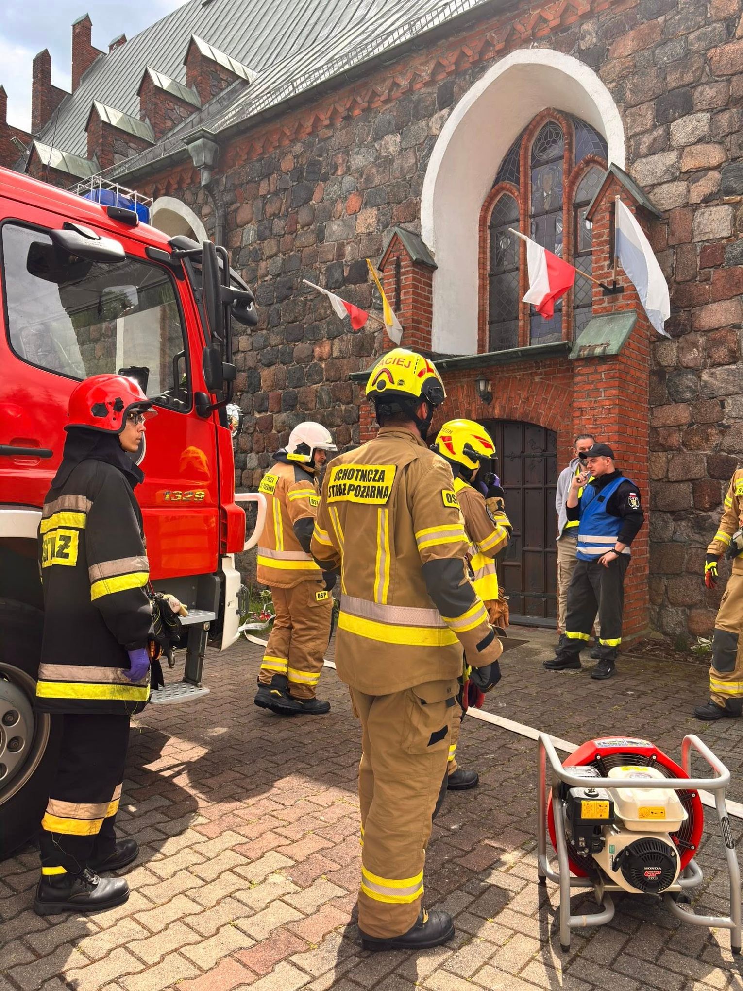 - rozprzestrzeniający się pożar wewnątrz budynku i na dachu kościoła,