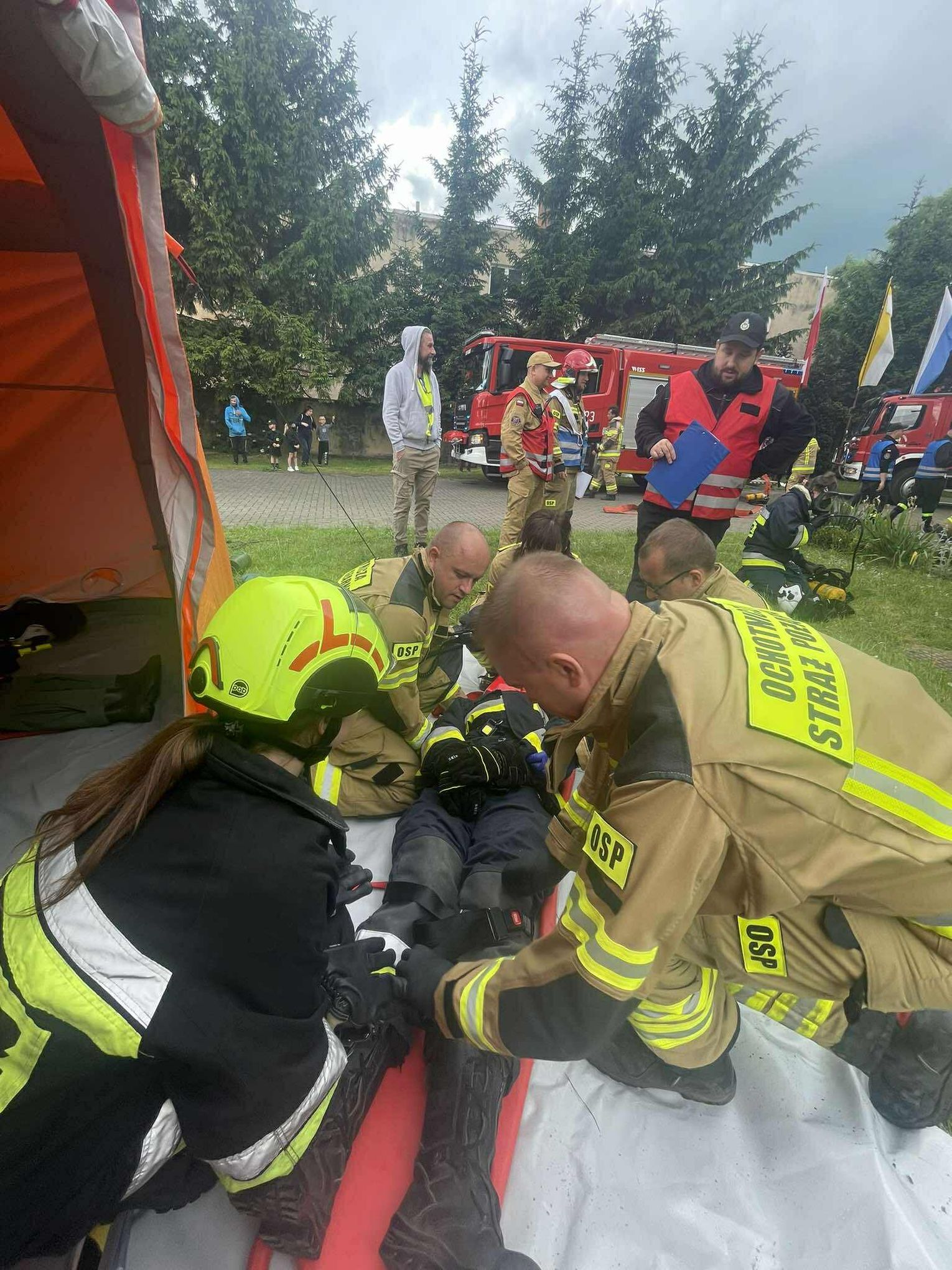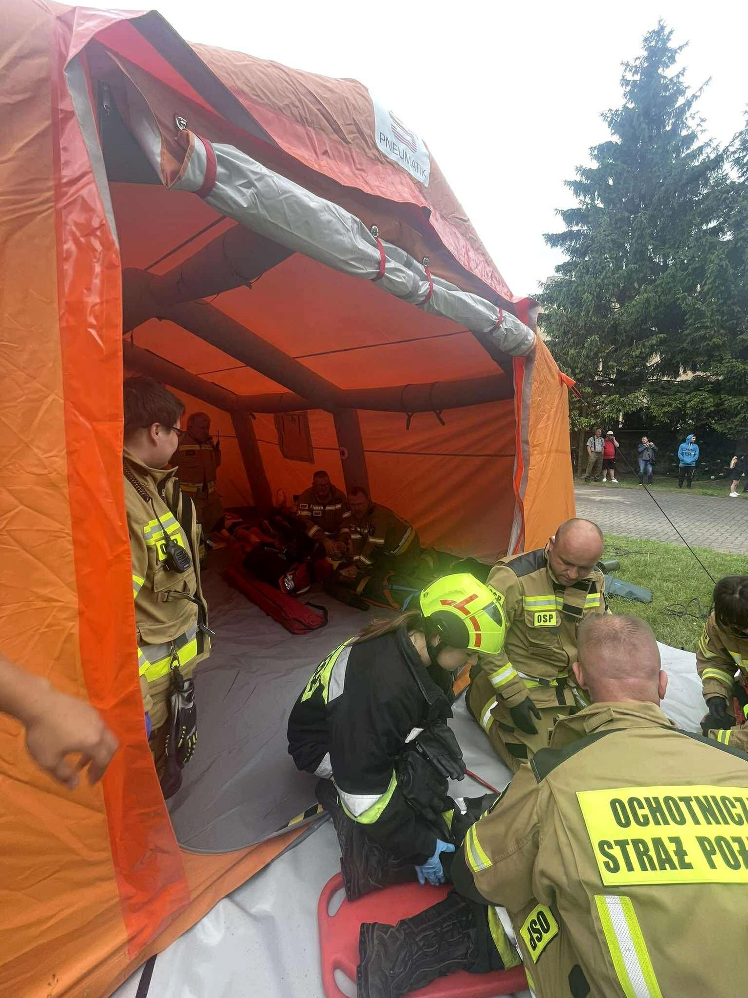 - budowę stanowiska medycznego w namiocie pneumatycznym, służącego do udzielania kwalifikowanej pierwszej pomocy osobom poszkodowanym w wyniku pożaru.