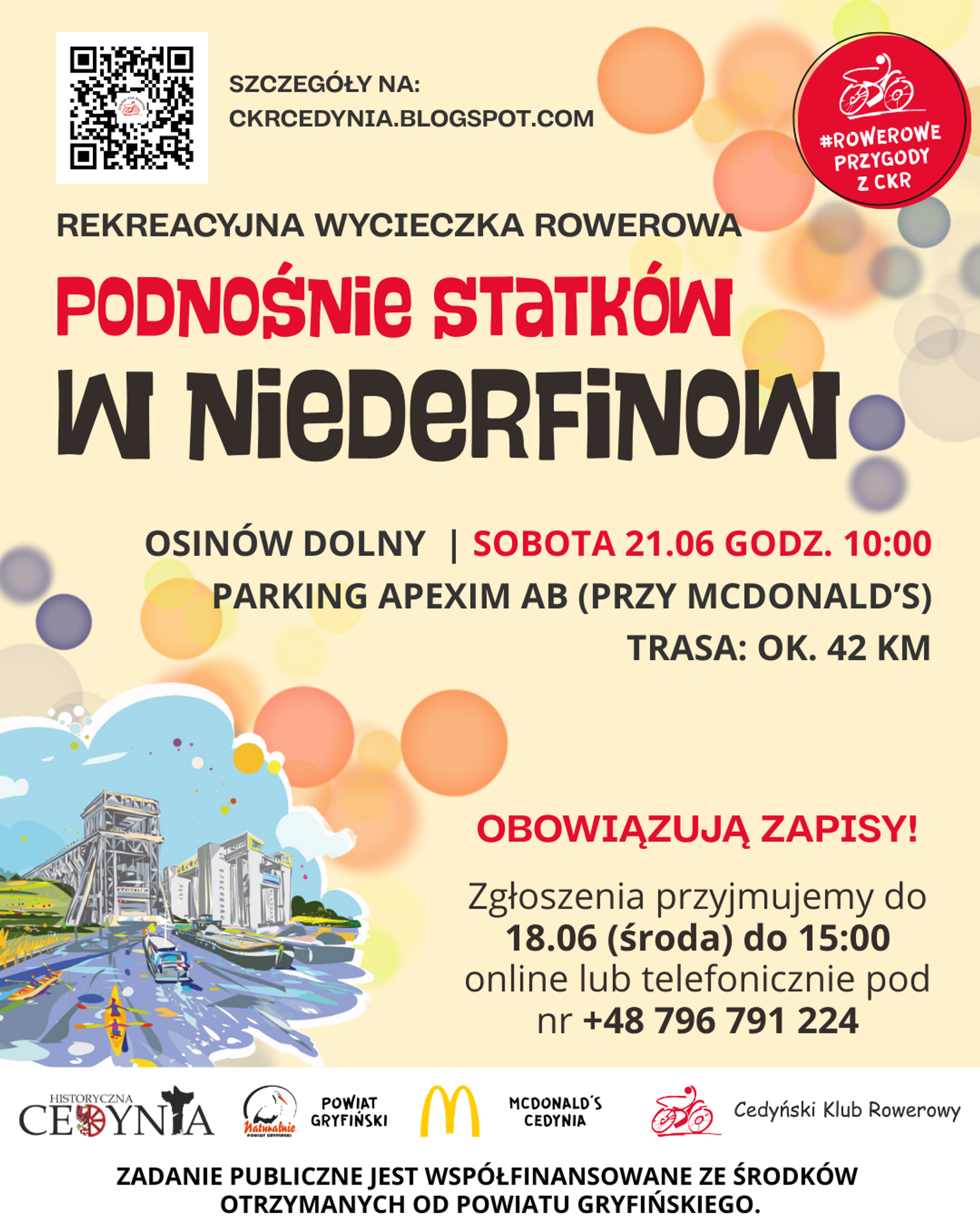 Cedyński Klub Rowerowy zaprasza na kolejną wyprawę z cyklu #RowerowePrzygodyzCKR. Już w sobotę, 21 czerwca, ruszamy w trasę o długości około 42 km. Tym razem naszym celem będzie Podnośnia Statków w Niederfinow, po drodze będzie można zwiedzić również Muzeum Żeglugi Śródlądowej w Oderbergu.