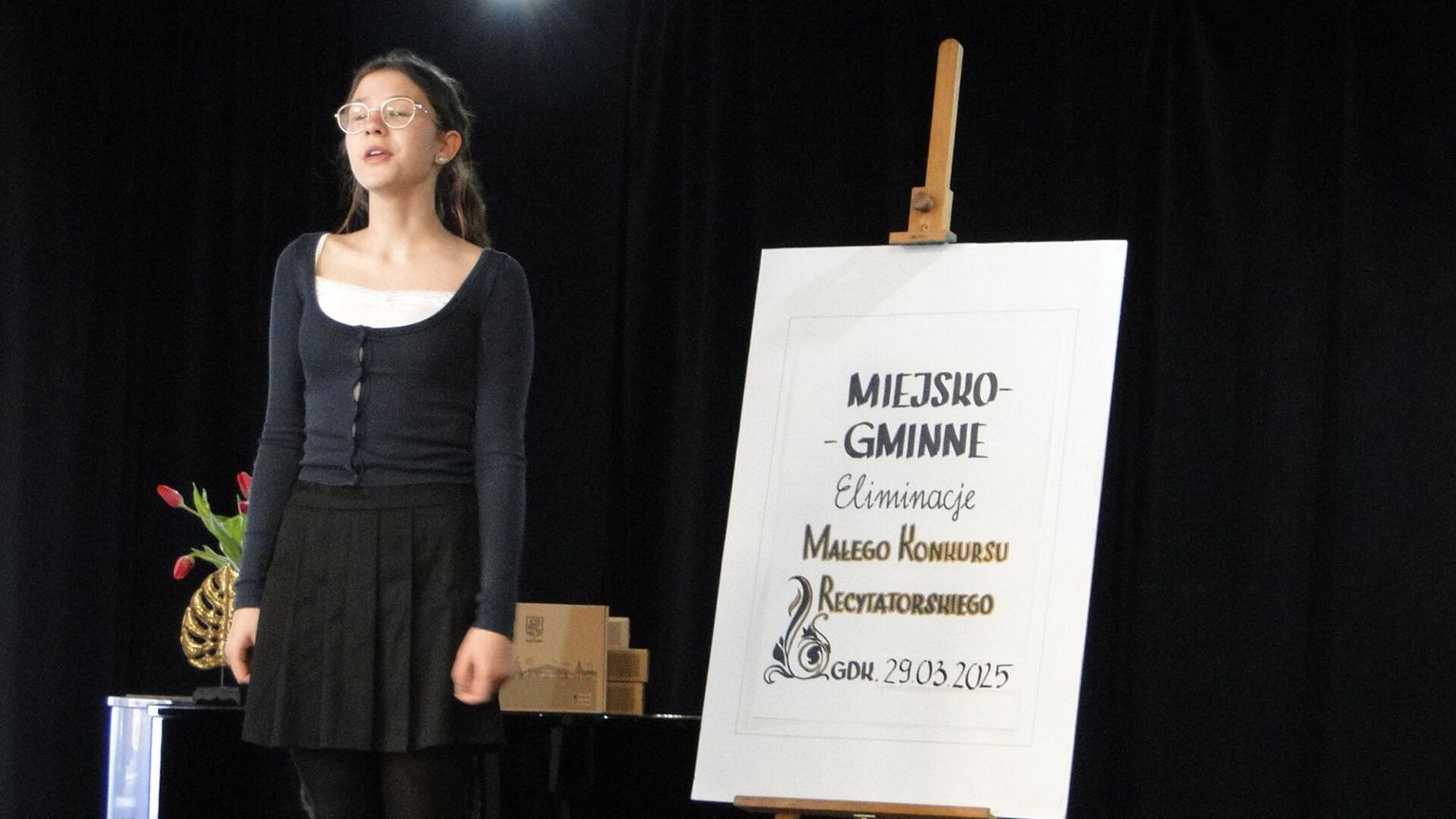 1-Nina Stankiewicz podczas miejsko-gminnych eliminacji Małego Konkursu Recytatorskiego w Gryfinie