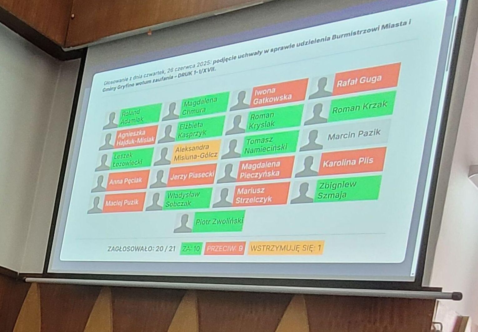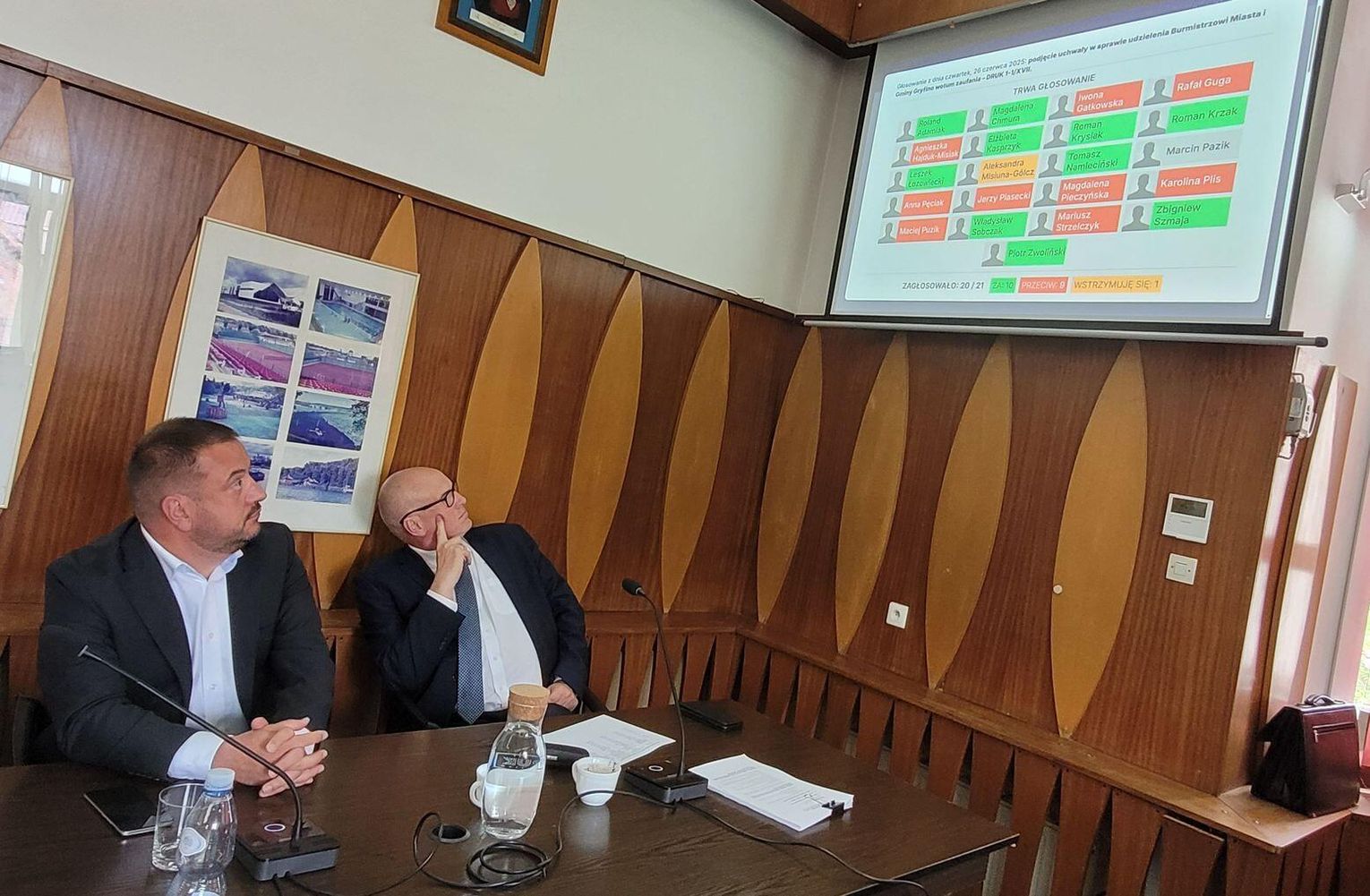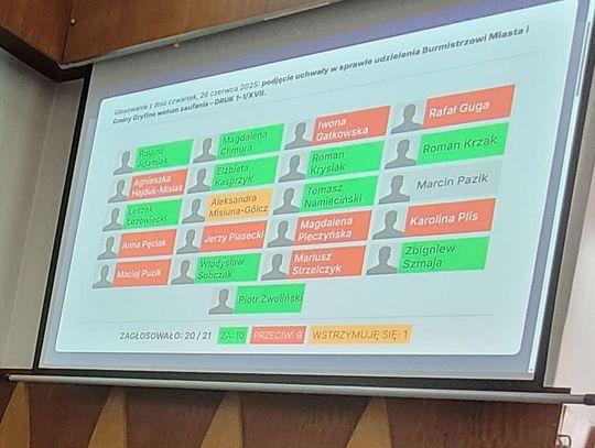 Burmistrz Mieczysław Sawaryn otrzymał wotum zaufania 11 radnych było "za", 9 "przeciw, a jedna się wstrzymała. Kto jak głosował na zdjęciu w fotogalerii.
