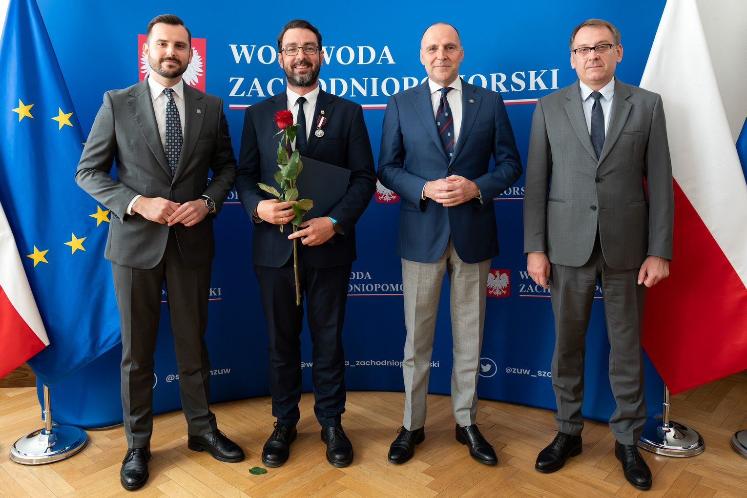 Dziś 30 czerwca 2025 r. w Zachodniopomorskim Urzędzie Wojewódzkim w Szczecinie zostali wyróżnieni Odznakami Honorowymi "Zasłużony dla Samorządu Terytorialnego":