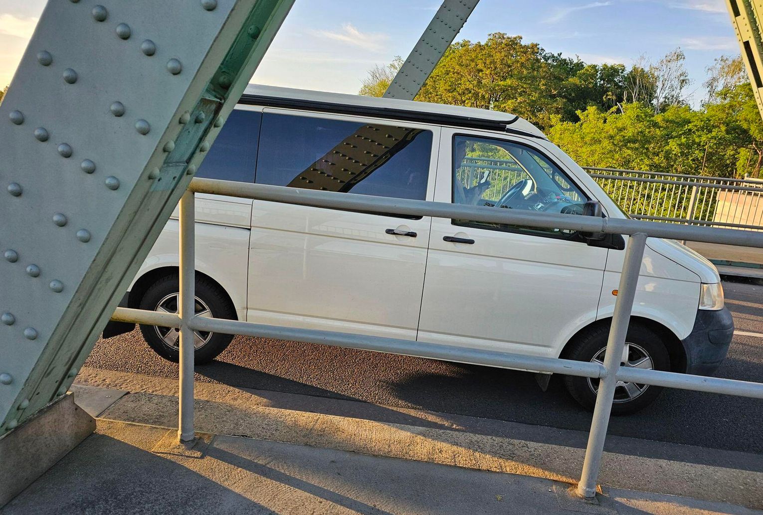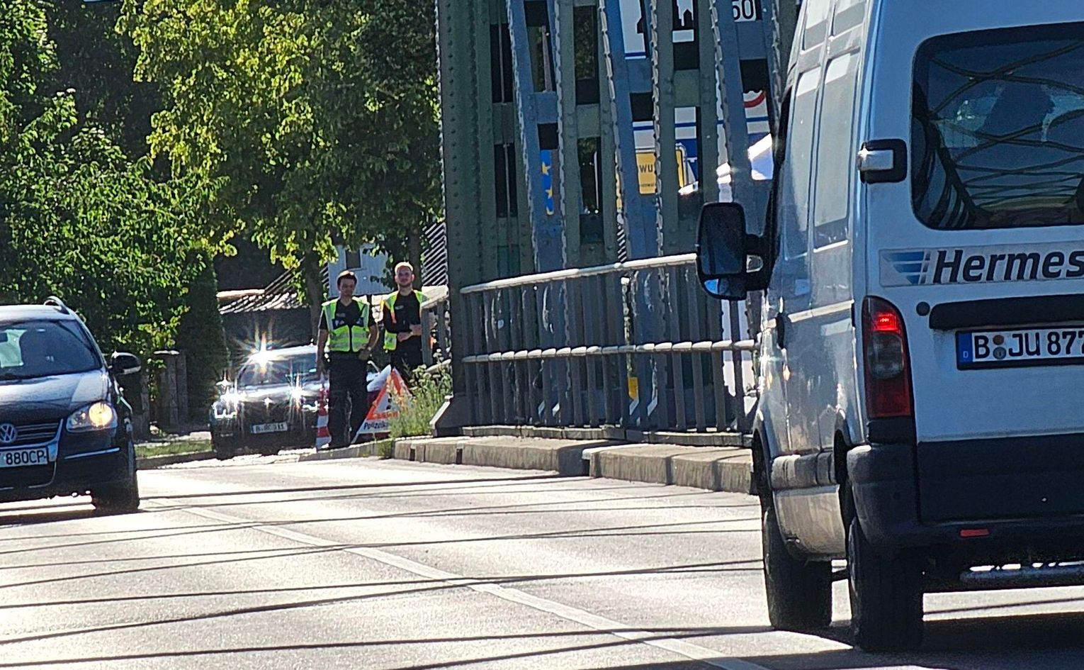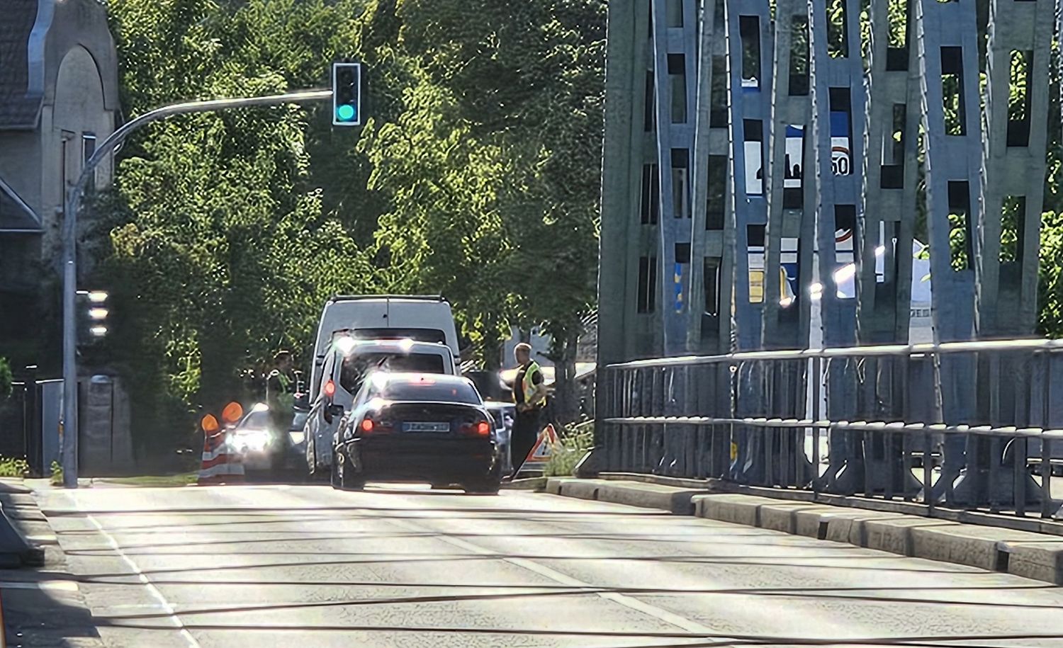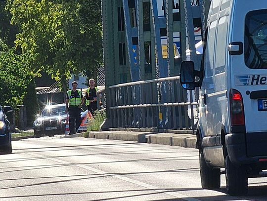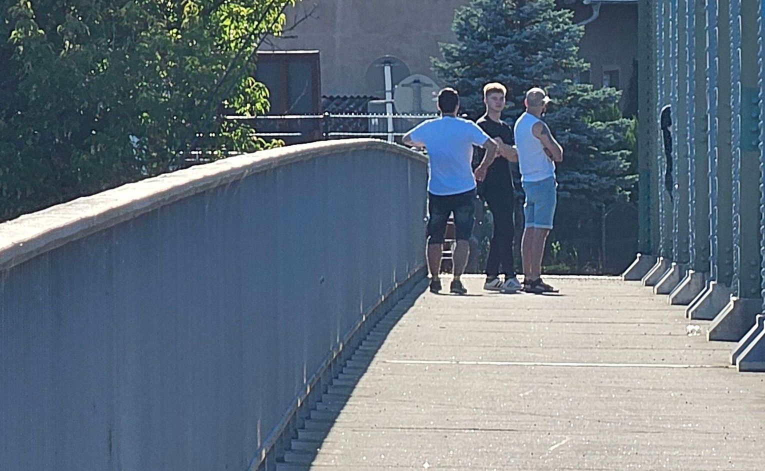 Część mężczyzn przeszła przez most, aby zobaczyć, jak wygląda kontrola prowadzona w tym czasie przez dwóch niemieckich policjantów.