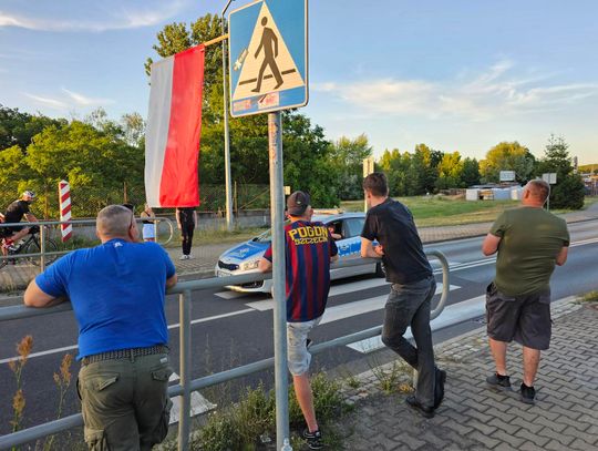 Po około 3 godzina przyjechała polska policja. Radiowóz podjechał przed odblokowane czasowo przejście dla pieszych i… odjechał. Zatrzymał się ok. 100 m dalej.