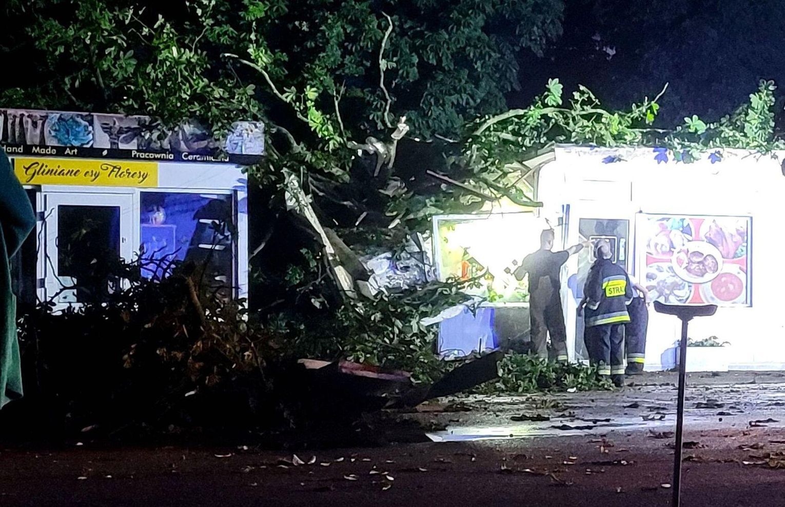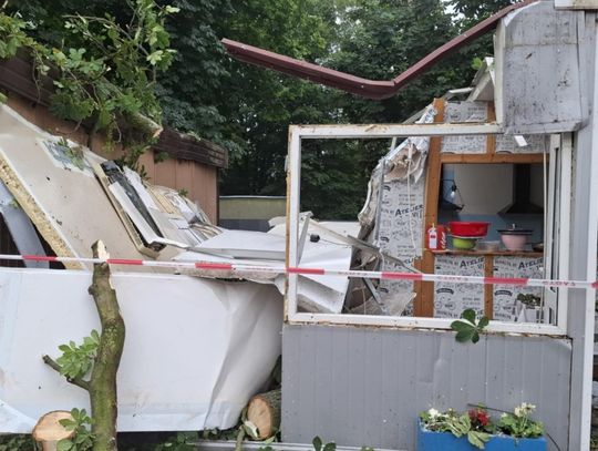 Podczas gwałtownej burzy ogromne drzewo – kasztan – runęło prosto na nasz kontener gastronomiczny. Zmiażdżyło dach i całkowicie zniszczyło bar. Nie da się go już uratować.