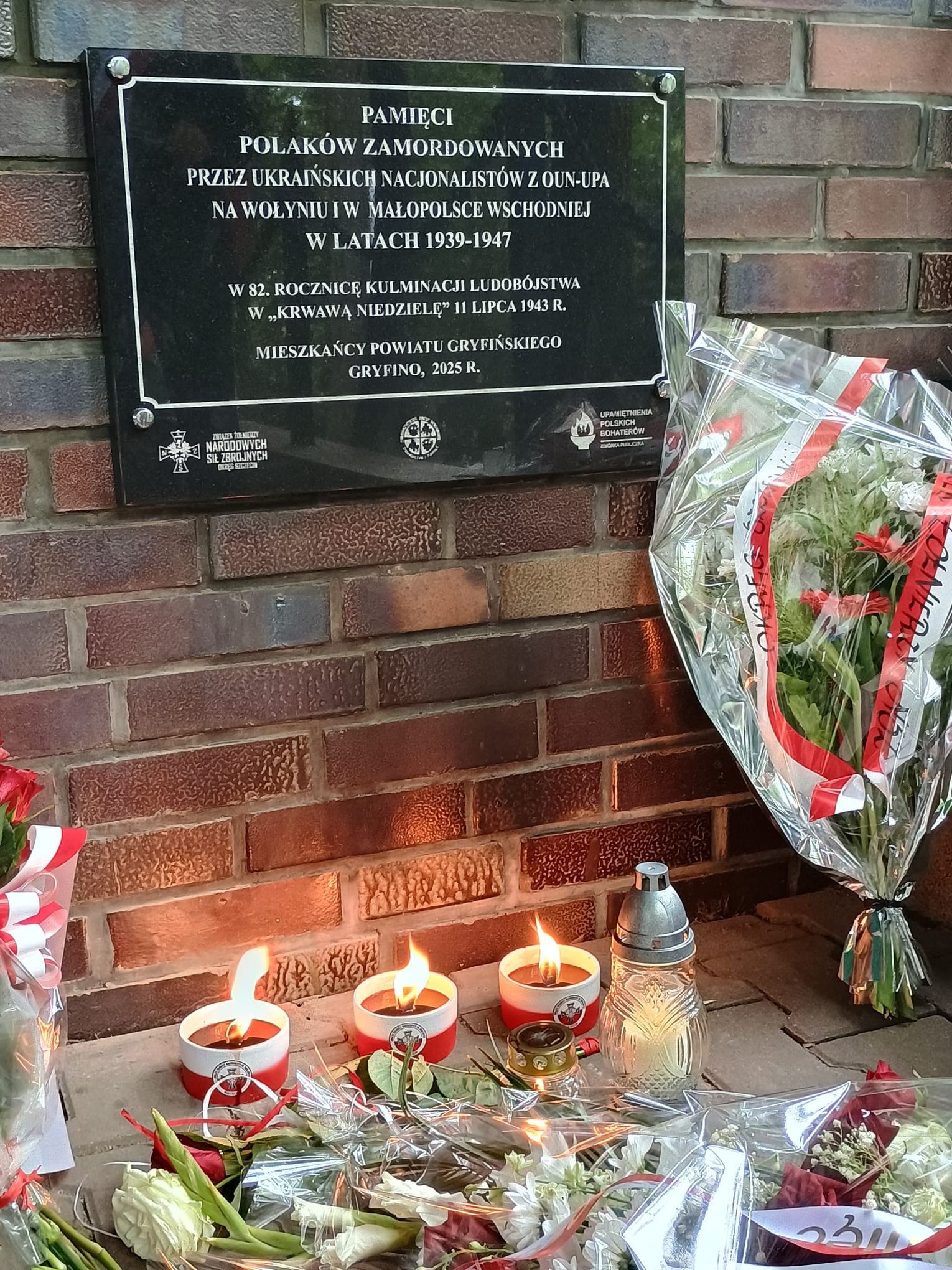 W piątek 18 lipca 2025 roku w Gryfinie odbyły się uroczystości upamiętniające 82. rocznicę ukraińskiego ludobójstwa na Polakach na Wołyniu i w Małopolsce Wschodniej. W ramach obchodów odsłonięto pamiątkową tablicę poświęconą pamięci pomordowanych Polaków, którą ufundowano dzięki działaniom lokalnych środowisk patriotycznych oraz wsparciu finansowemu ze zbiórki publicznej „Upamiętnienie Polskich Bohaterów” związanej z Okręgiem Szczecin Związku Żołnierzy Narodowych Sił Zbrojnych.