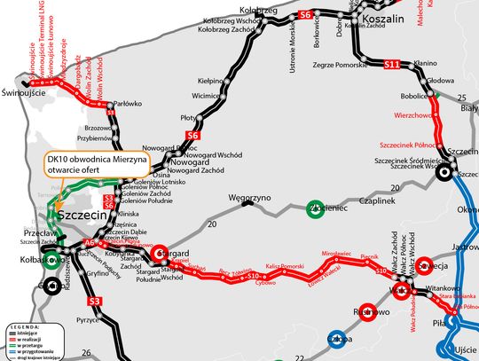 Obecnie DK10, wychodząca ze Szczecina w stronę granicy polsko-niemieckiej, przebiega przez gęsto zabudowaną miejscowość Mierzyn. Na drodze codziennie, w godzinach szczytu, tworzą się korki. Na połączeniu DK10 z ZOS powstanie węzeł Szczecin Zachód, który będzie jednym z głównych połączeń z centrum Szczecina.
