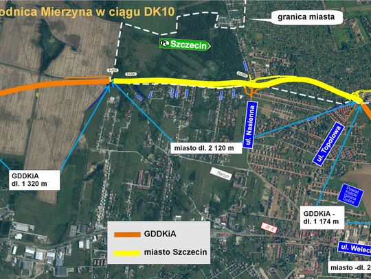 Nowa droga o długości 4,64 km w połowie będzie przebiegała na terenie Szczecina, gdzie drogami zarządza prezydent miasta Piotr Krzystek. W związku z tym inwestycja musi być prowadzona wspólnie przez GDDKiA i samorząd. W 2022 r. podpisaliśmy porozumienie dotyczące prac przygotowawczych, na podstawie których został przygotowany projekt budowlany. Dokumentacja dla drogi była gotowa w ubiegłym roku, co pozwoliło na rozpoczęcie procedury uzyskiwania decyzji o zezwoleniu na realizację inwestycji drogowej (ZRID).