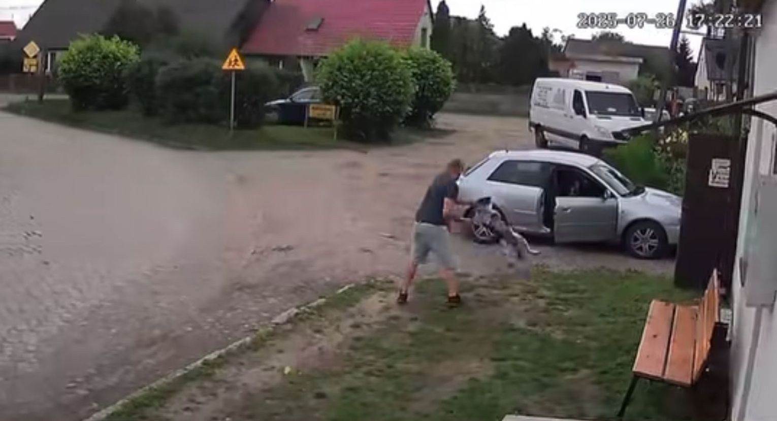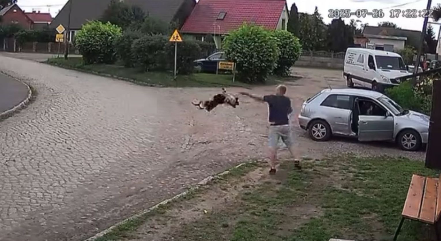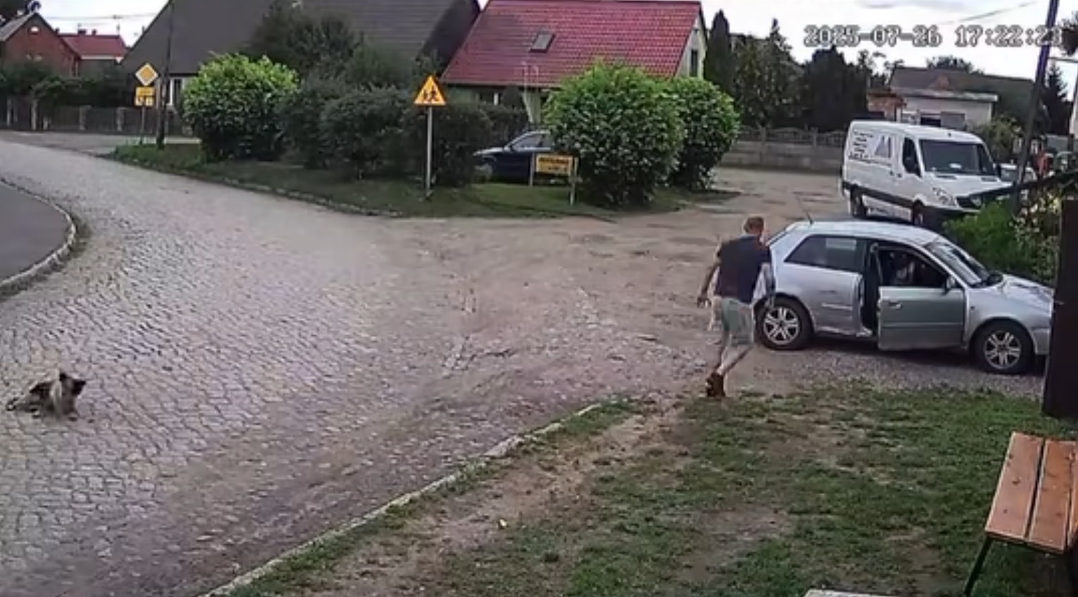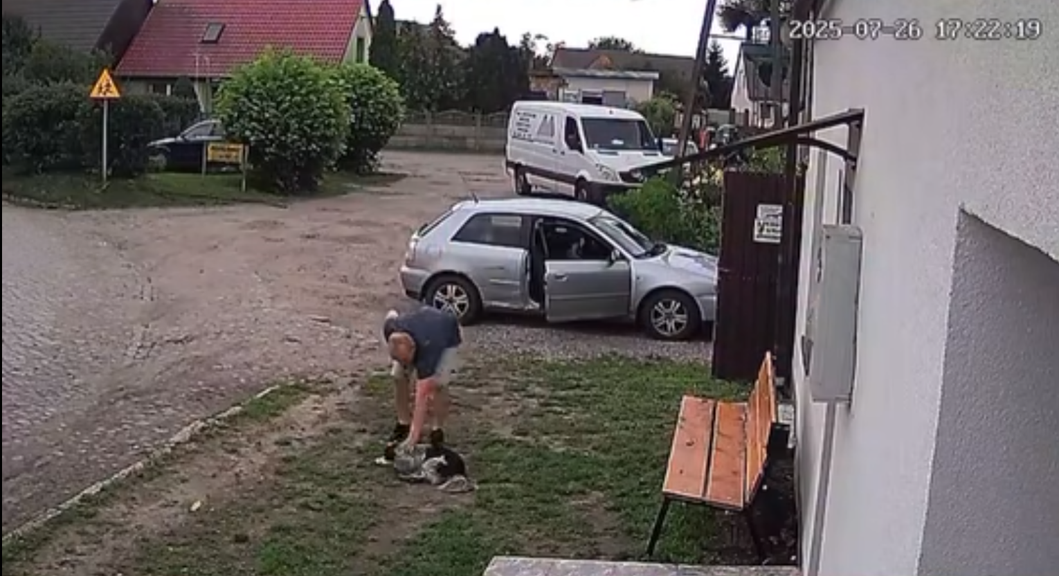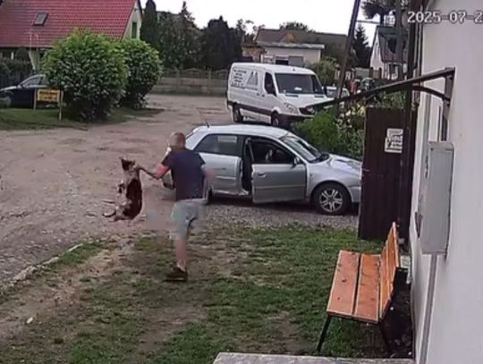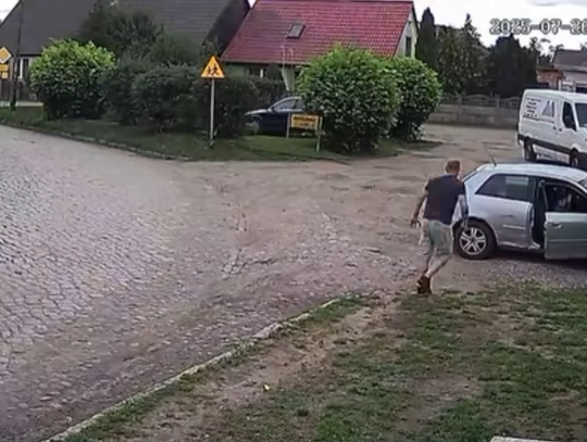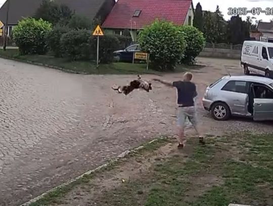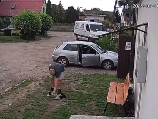 Gracjan S. przyjechał do Ognicy samochodem o numerze rejestracyjnym rozpoczynającym się od ZMY 8... Monitoring zarejestrował, jak w sobotę 26 lipca 2025 r. o godz. 17.22 mężczyzna ten podchodzi do leżącego na trawniku psa, chwyta go za kark, podnosi, robi kilka kroków w stronę ulicy. Z zimną krwią z całej siły rzuca żywym stworzeniem o brukową kostkę, którą wyłożona jest droga. Przerażony pies skowyczy z bólu. Po chwili udaje mu się wstać i odejść od oprawcy. Mężczyzna, który tak bestialsko i okrutnie potraktował czworonoga, jak gdyby nic się nie stało wsiada do auta i odjeżdża.