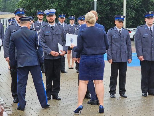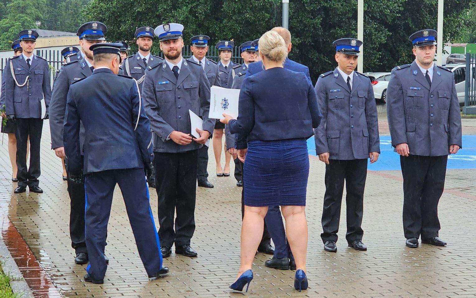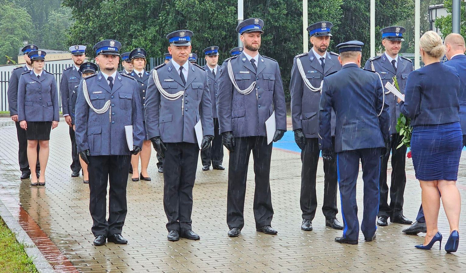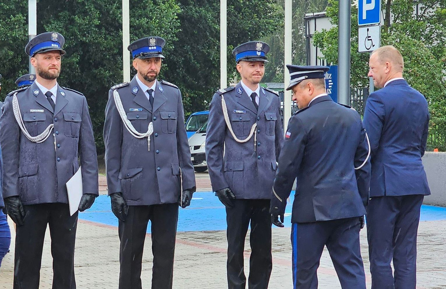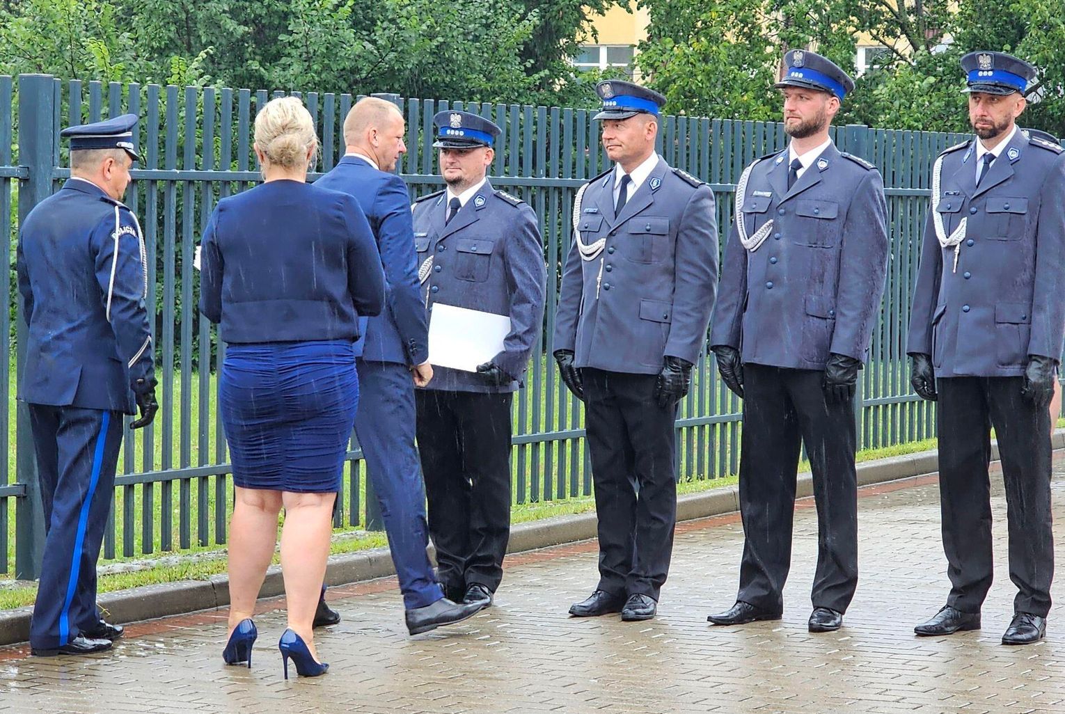 Gratulacje i medale odebrali asp. sztabowy Marcin Karpierz, asp. szt. Wojciech Derenowicz, i asp. szt. Marcin Krysiak. Krzyze zasługi odebrali asp. sztabowy Arkadiusz Betlej, Arkadiusz Brzozowski i pani Danuta Mukaj. Wszystko to podczas uroczystej zbiórka z okazji Święta Policji.