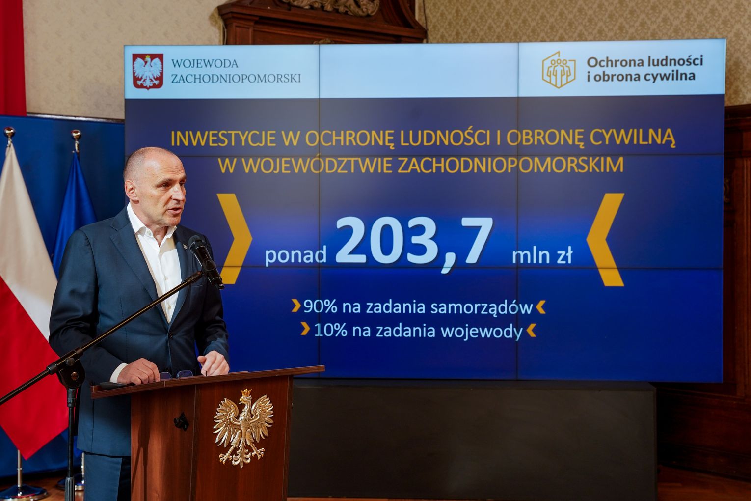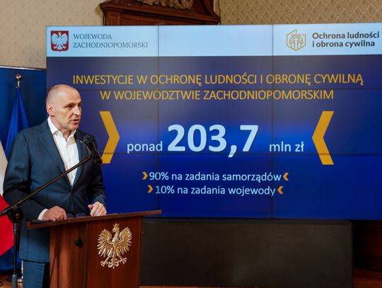 - Przechodzimy do kolejnego etapu tworzenia skutecznej obrony cywilnej i systemu ochrony ludności. Po szkoleniach dla samorządowców zbieramy wnioski o dofinansowanie zadań związanych z zapewnieniem bezpieczeństwa mieszkańcom w przypadku kryzysu lub konfliktu zbrojnego. Do dyspozycji mamy ponad 200 mln zł – powiedział wojewoda zachodniopomorski Adam Rudawski podczas konferencji prasowej w Szczecinie.