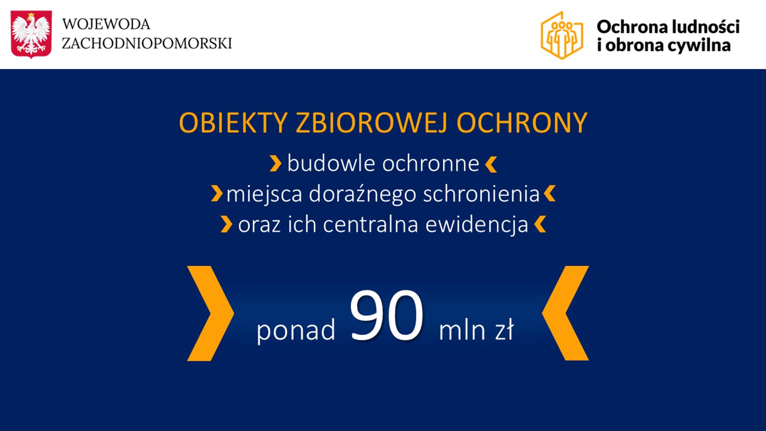 Największa kwota dotyczy finansowania obiektów zbiorowej ochrony ludności. Na budowę lub remont budowli ochronnych, miejsc doraźnego schronienia oraz ich ewidencję przeznaczono przeszło 90 mln zł. Środki pozwolą również na inwentaryzację lub wykonanie ekspertyzy technicznej schronu.