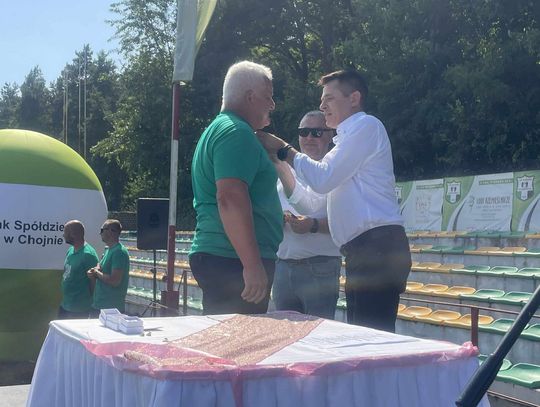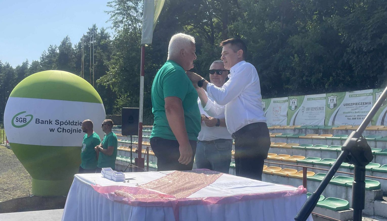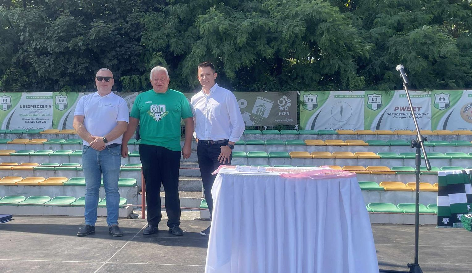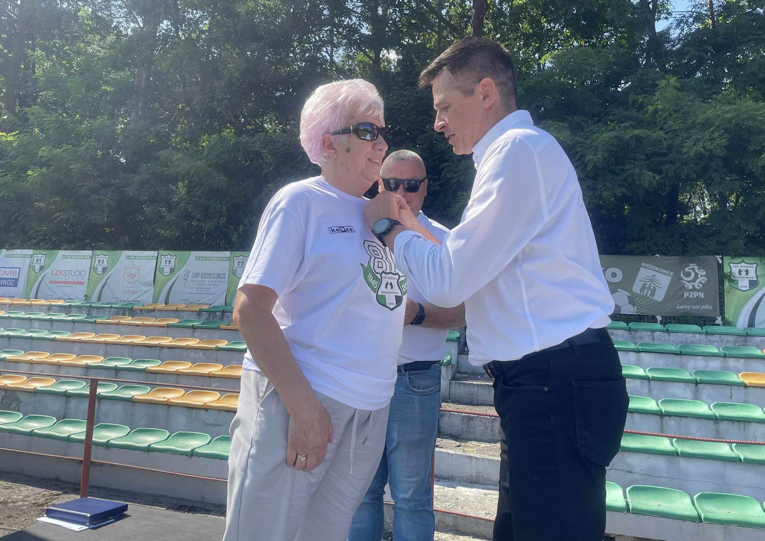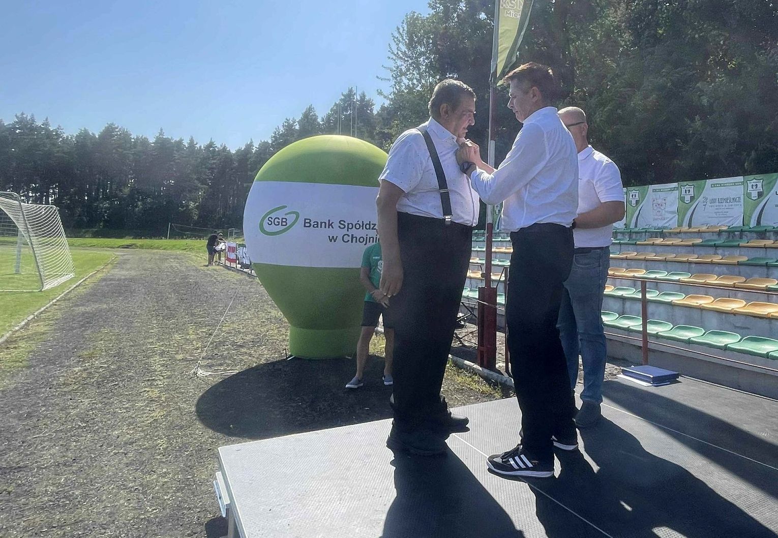 Po przemówieniach głos zabrał wiceprezes ZZPN ds. organizacyjno-finansowych Maciej Buryta, który poprosił burmistrza Krzysztofa Tkacza o wspólne wręczenie wyróżnień dla zasłużonych.