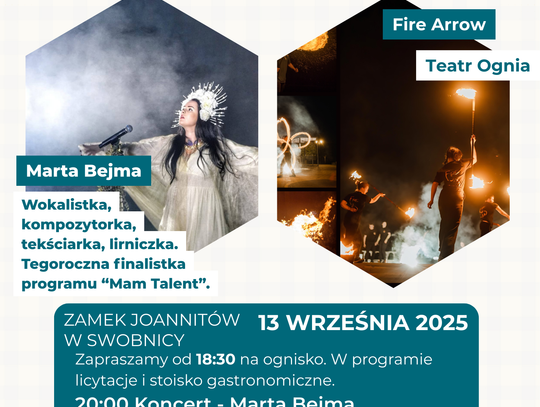 Początek atrakcji o godzinie 20. 00. To już będzie ciemno i wtedy na specjalnej scenie rozpocznie się koncert Marty Bejmy, pod tytułem "Niech się Niesie". Artystka, znana z wyjątkowego głosu i charyzmatycznej osobowości, zaprezentuje swoje najnowsze utwory, które porwą publiczność w świat emocji i artystycznych przeżyć.