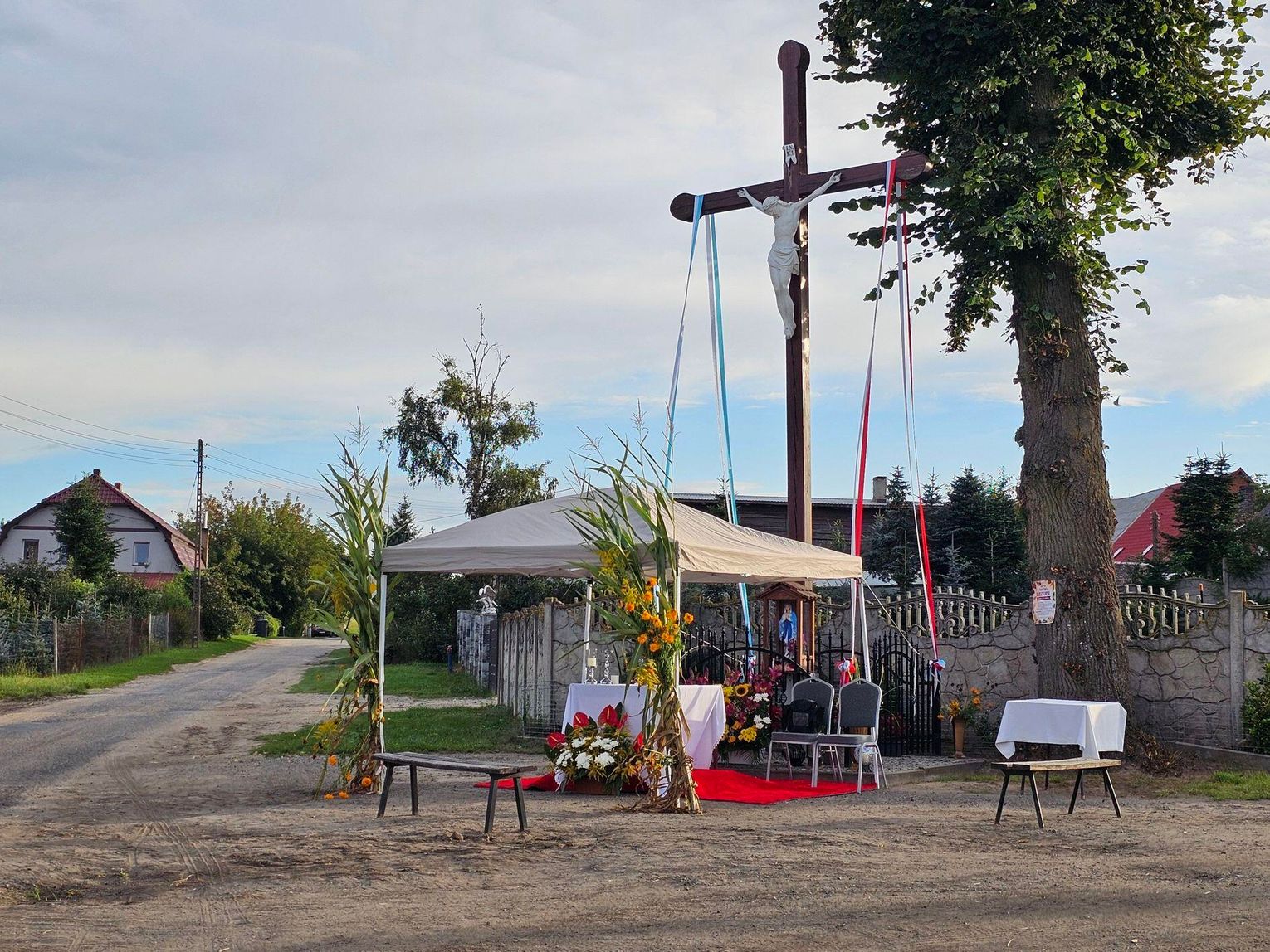 Ceremonia dożynkowa rozpoczęła się uroczystą mszą świętą o godzinie 12:00 przy krzyżu. Niezwykła atmosfera nabożeństwa stanowiła doskonałe wprowadzenie w dzień pełen radości i obfitości.
