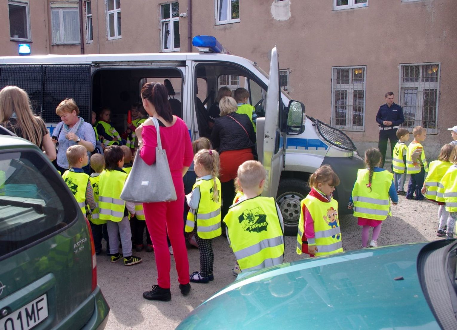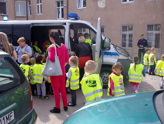 Dzieci wysłuchały informacji na temat codziennych zadań funkcjonariuszy. Następnie zwiedziły stanowisko kierowania, pomieszczenie dla osób zatrzymanych. Mieli też możliwość obejrzeć monitoring oraz posłuchać jak drogą radiową wywołuje się patrole policyjne. Przedszkolaki miały okazję dotknąć, wypróbować, a także przymierzyć akcesoria, które na co dzień wykorzystują policjanci. na podst. KPP w Gryfinie