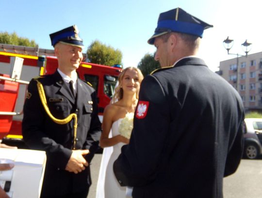 Jednym z najbardziej emocjonujących punktów uroczystości była "przejażdżka" strażackim podnośnikiem, który uniósł Karolinę i Bartosza niemal do nieba, symbolizując ich drogę ku wspólnemu życiu i nowym wyzwaniom.