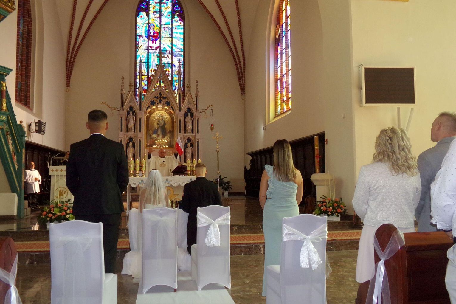 Ceremonia zaślubin Karoliny i Bartosza przyciągnęła uwagę nie tylko bliskich, ale również przechodniów, którzy mogli być świadkami tego pięknego wydarzenia. W kościele panowała podniosła atmosfera, a po ceremonii nowożeńcy przeszli przez szpaler utworzony przez druhów w mundurach. Wzruszenie i radość połączyły wszystkie serca zebranych gości, którzy czekali na moment, aby złożyć państwu młodym serdeczne życzenia oraz obdarować ich bukietami kwiatów.