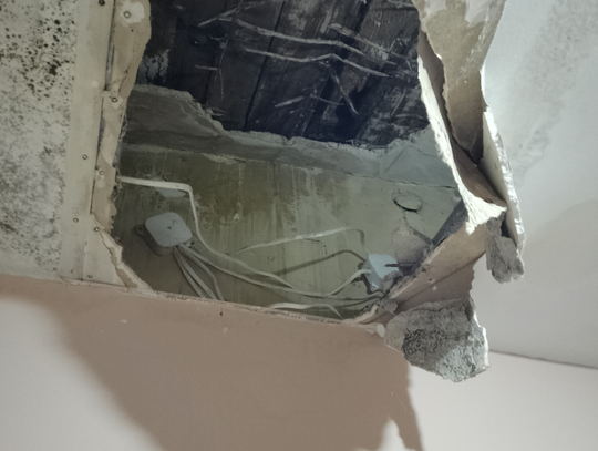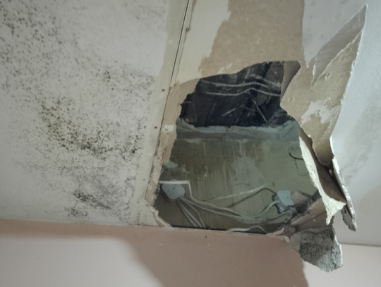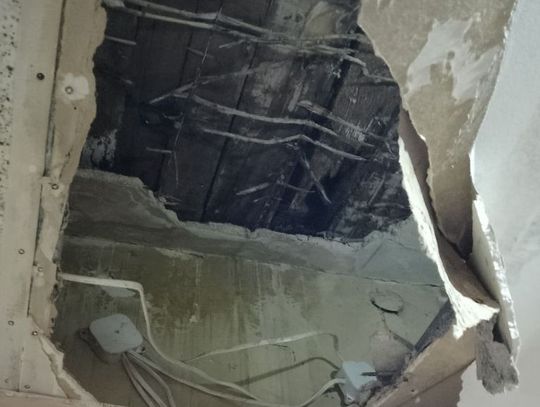 Przejdźmy teraz do głównego budynku Gryfińskiego Domu Kultury przy ul Szczecińskiej 17, gdzie po stromych schodach są też biura, gdzie dzięki burmistrzowi "wygospodarowano" nowe, dobrze płatne stanowisko dla radnej z jego klubu, gdzie niepełnosprawni mają problemy z dotarciem do kina Gryf, czy gdzie uczestnicy zajęć muszą z niepokojem spoglądać w górę. Dlaczego. Bo może spaść coś na głowę. I spadło!