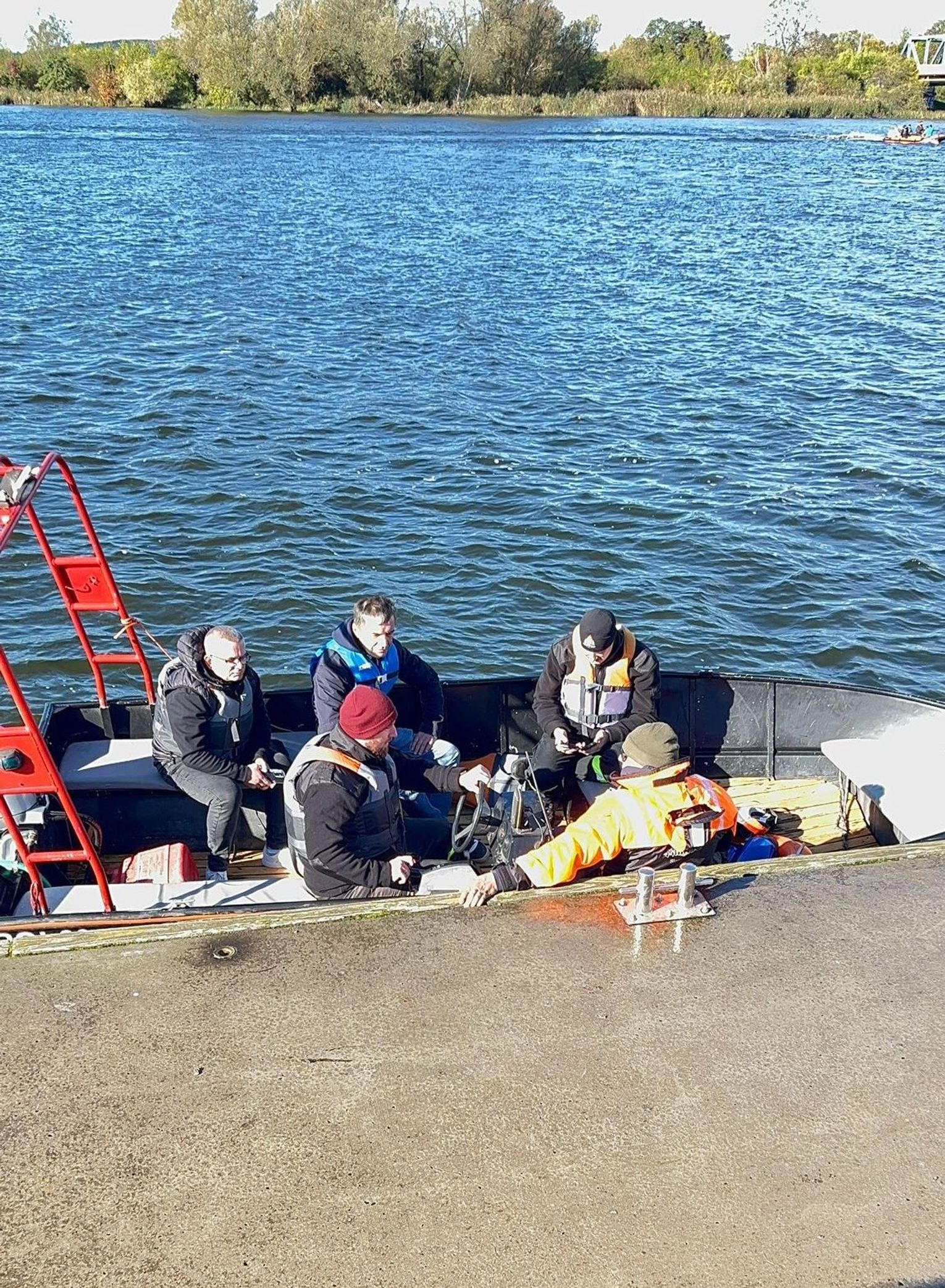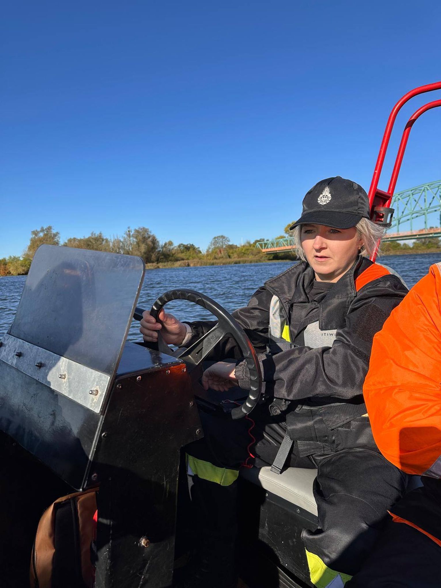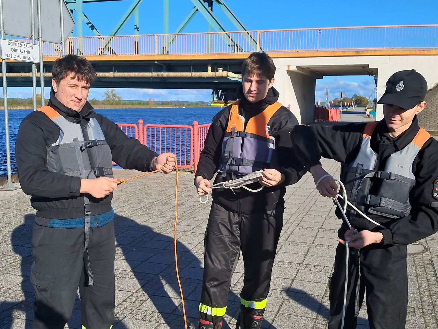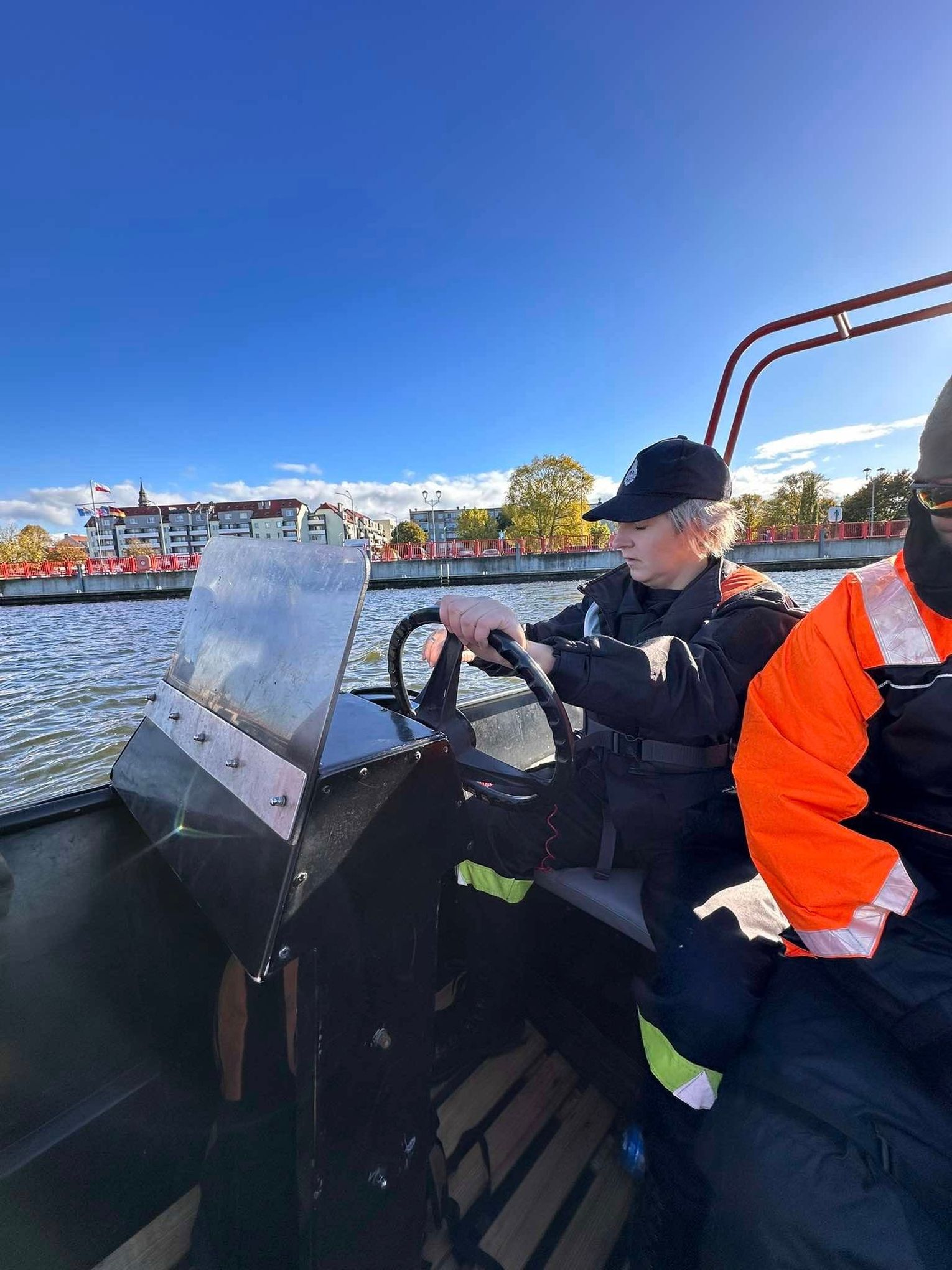 - Część praktyczna: Odbywała się na gryfińskim nabrzeżu. Pod okiem doświadczonych instruktorów kursanci doskonalili manewrowanie łodzią motorową, cumowanie oraz techniki niezbędne podczas prowadzenia działań w wodzie.