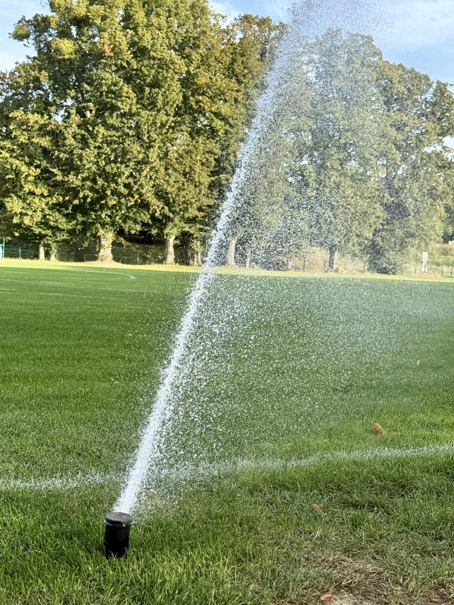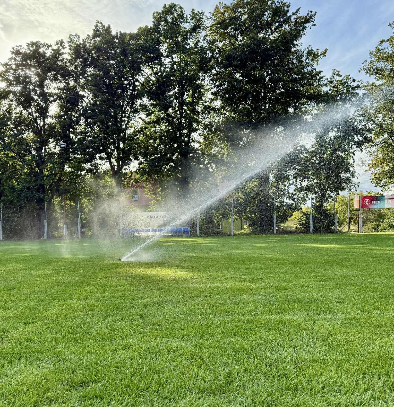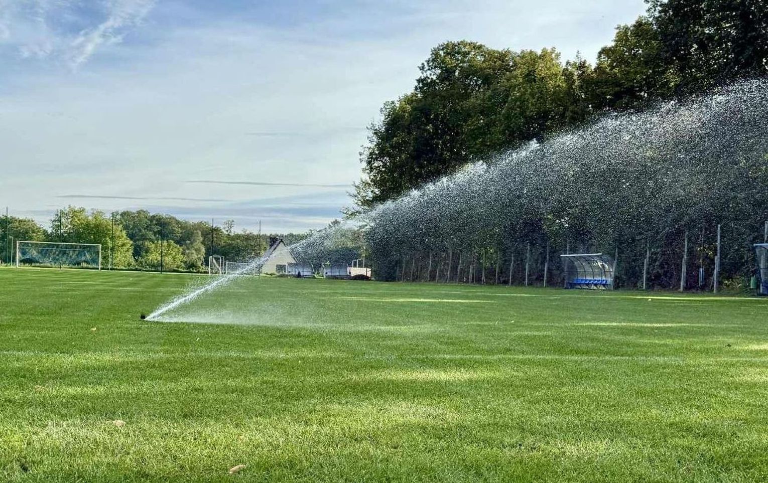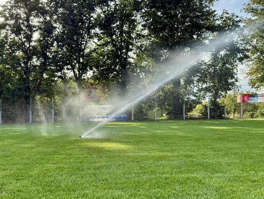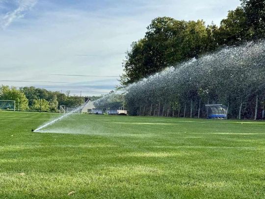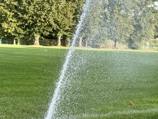 - Profesjonalne zraszacze: Zamontowano łącznie 28 zraszaczy w obrębie głównego boiska i poza liniami oraz dodatkowe 4 sztuki na boisku treningowym.