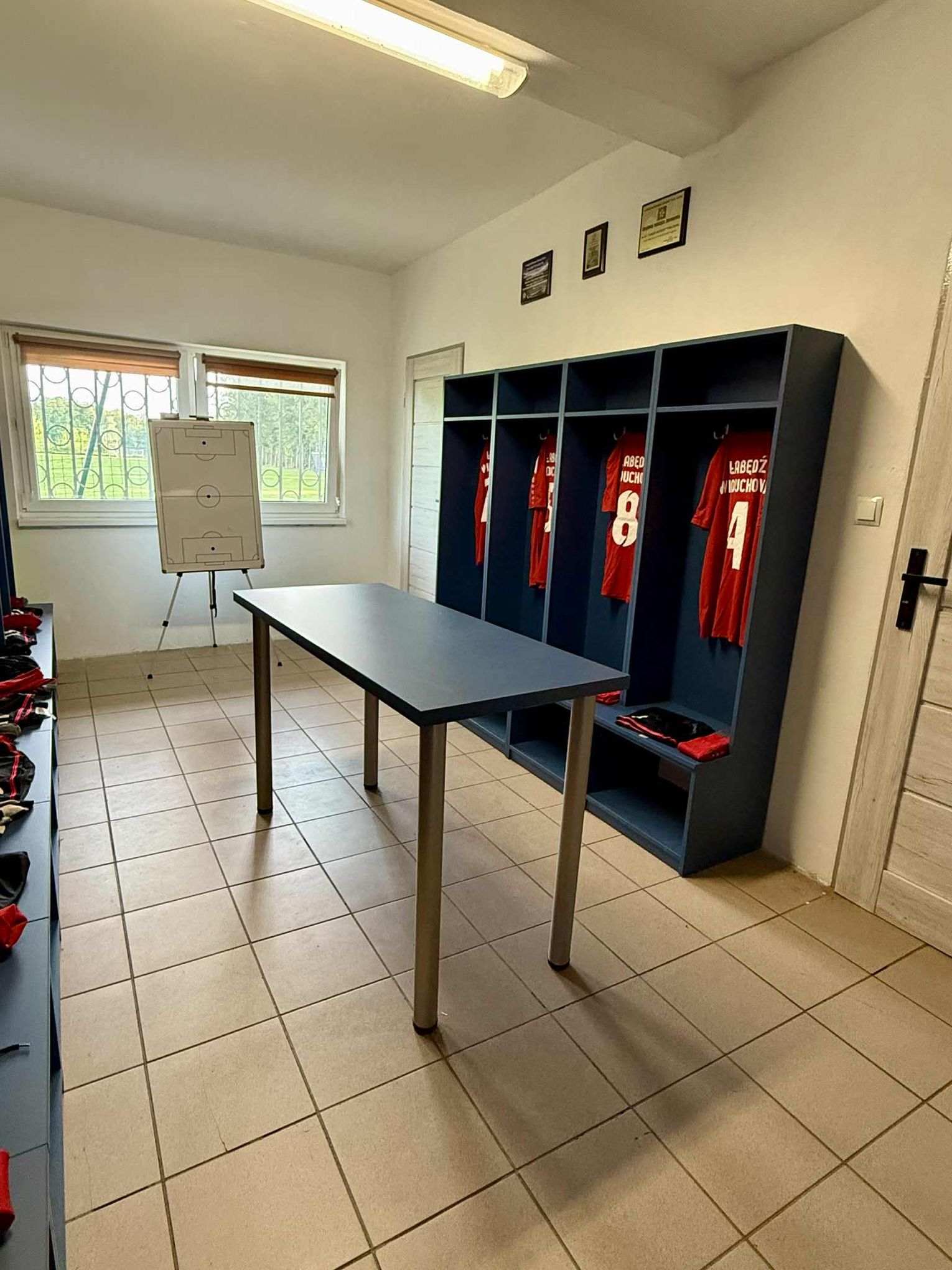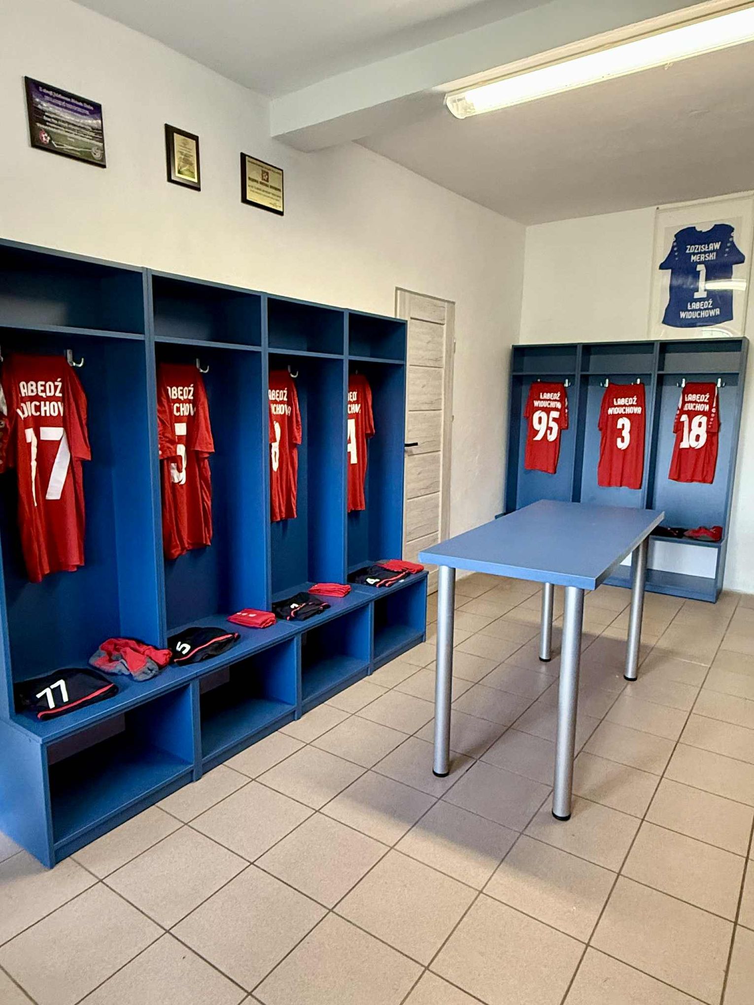 Z myślą o komforcie sportowców, zakupiono i zamontowano szafki dla zawodników wykonane z 17 osobnych modułów. Dodatkowo w szatni stanął nowy stół z blatem o grubości 36 mm i metalowymi nogami. Nowe wyposażenie znacząco poprawi funkcjonalność obiektu i warunki dla trenujących drużyn.